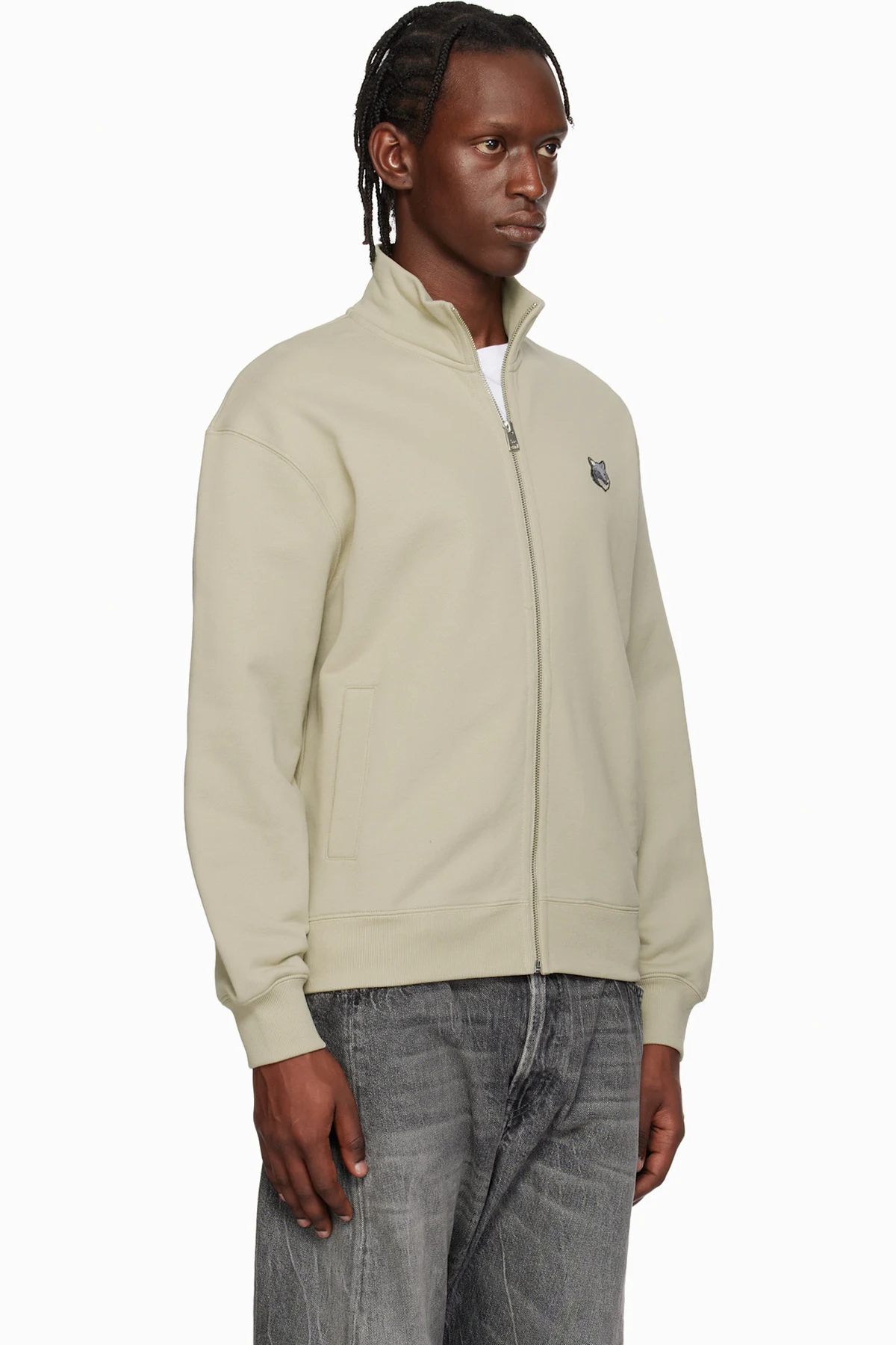 Beige Fox Head Zipped Comfort Sweatshirt
