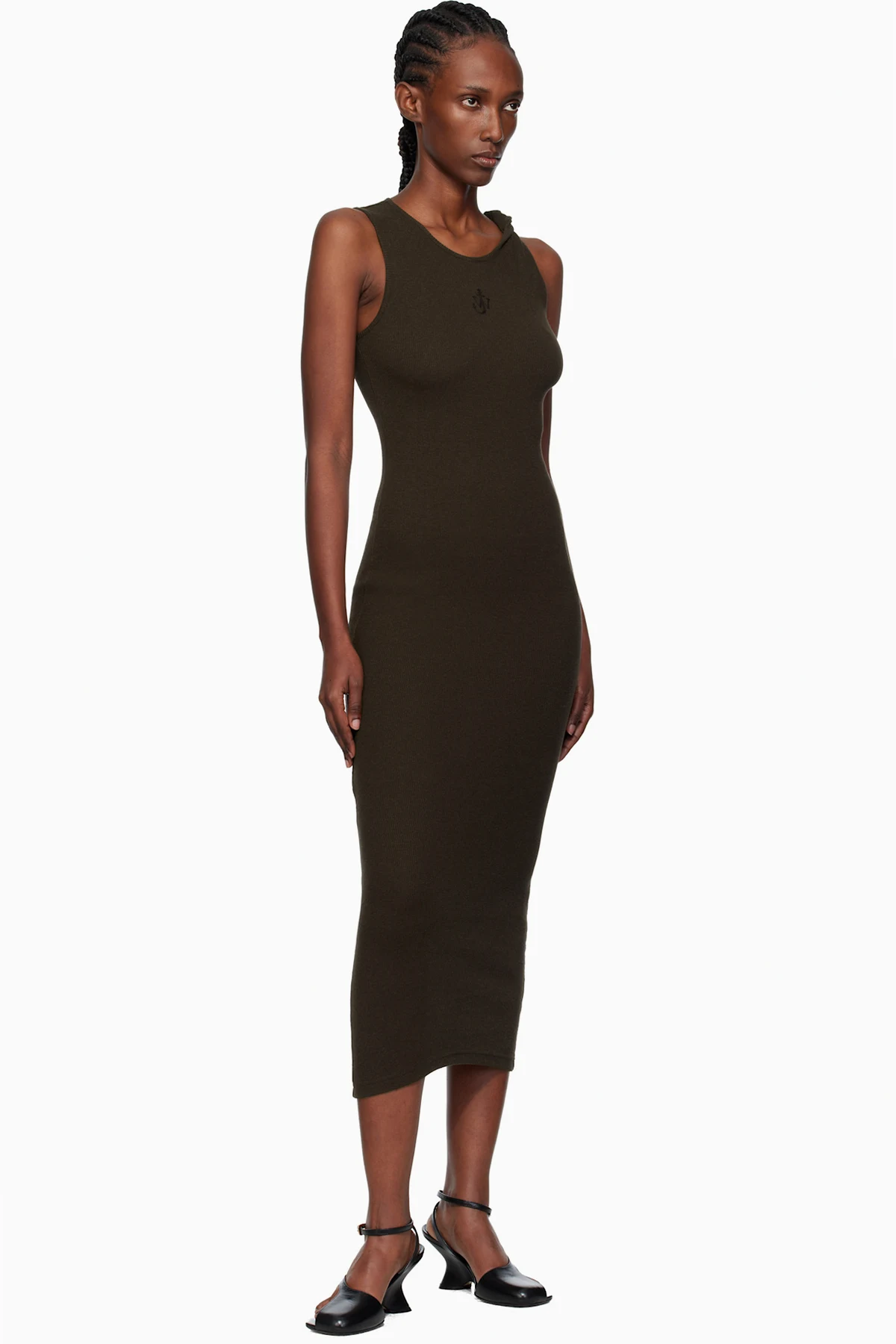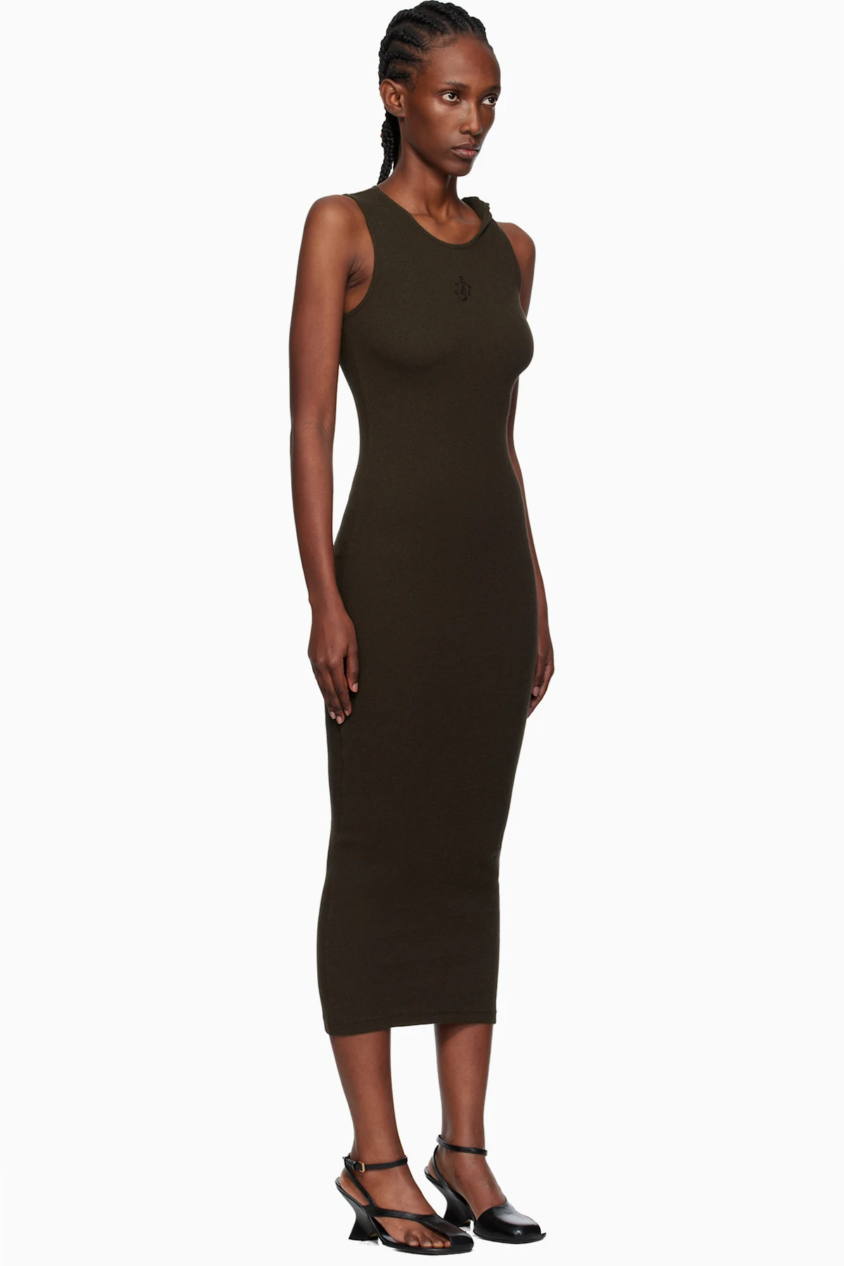 Brown Anchor Embroidery Twisted Strap Maxi Dress