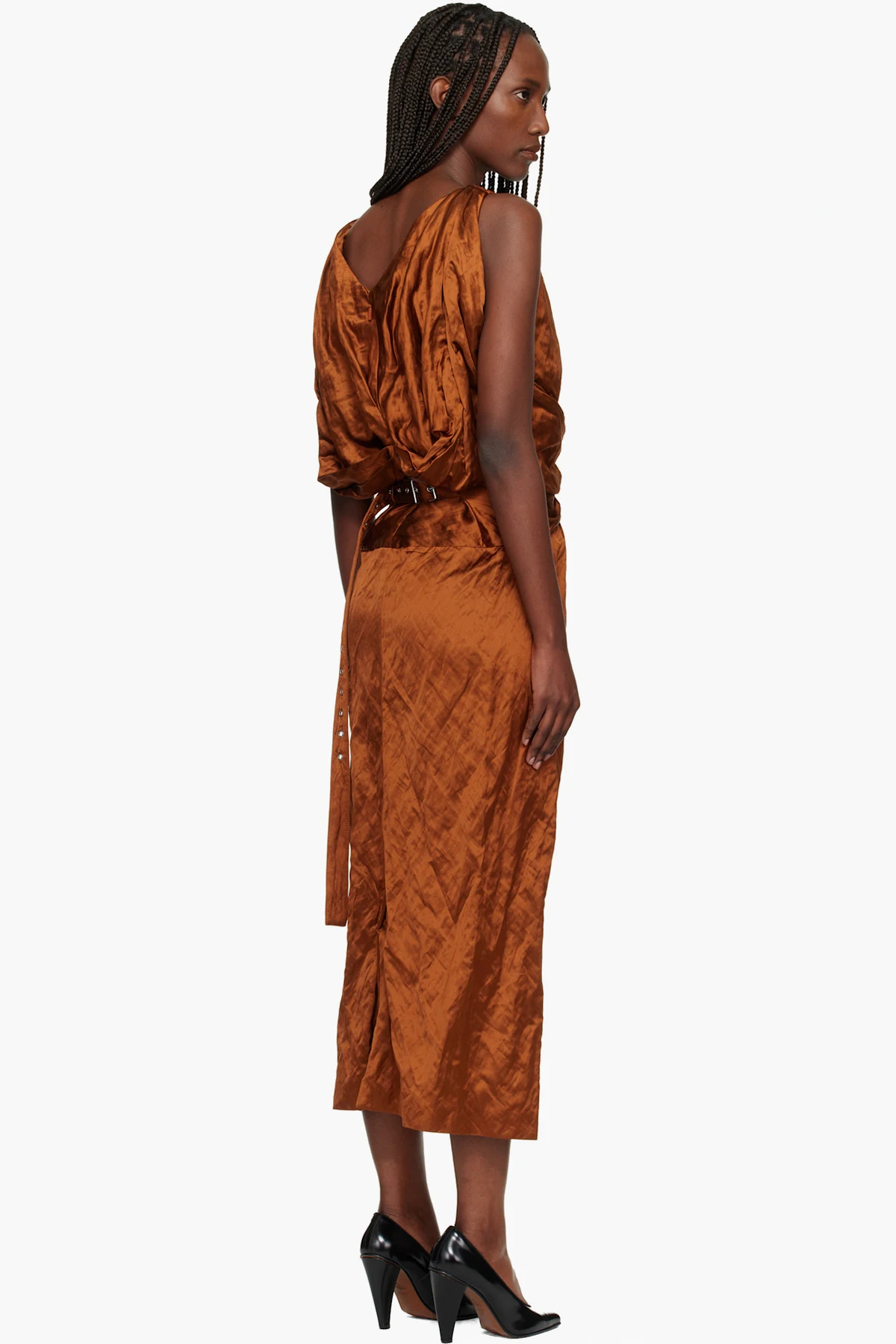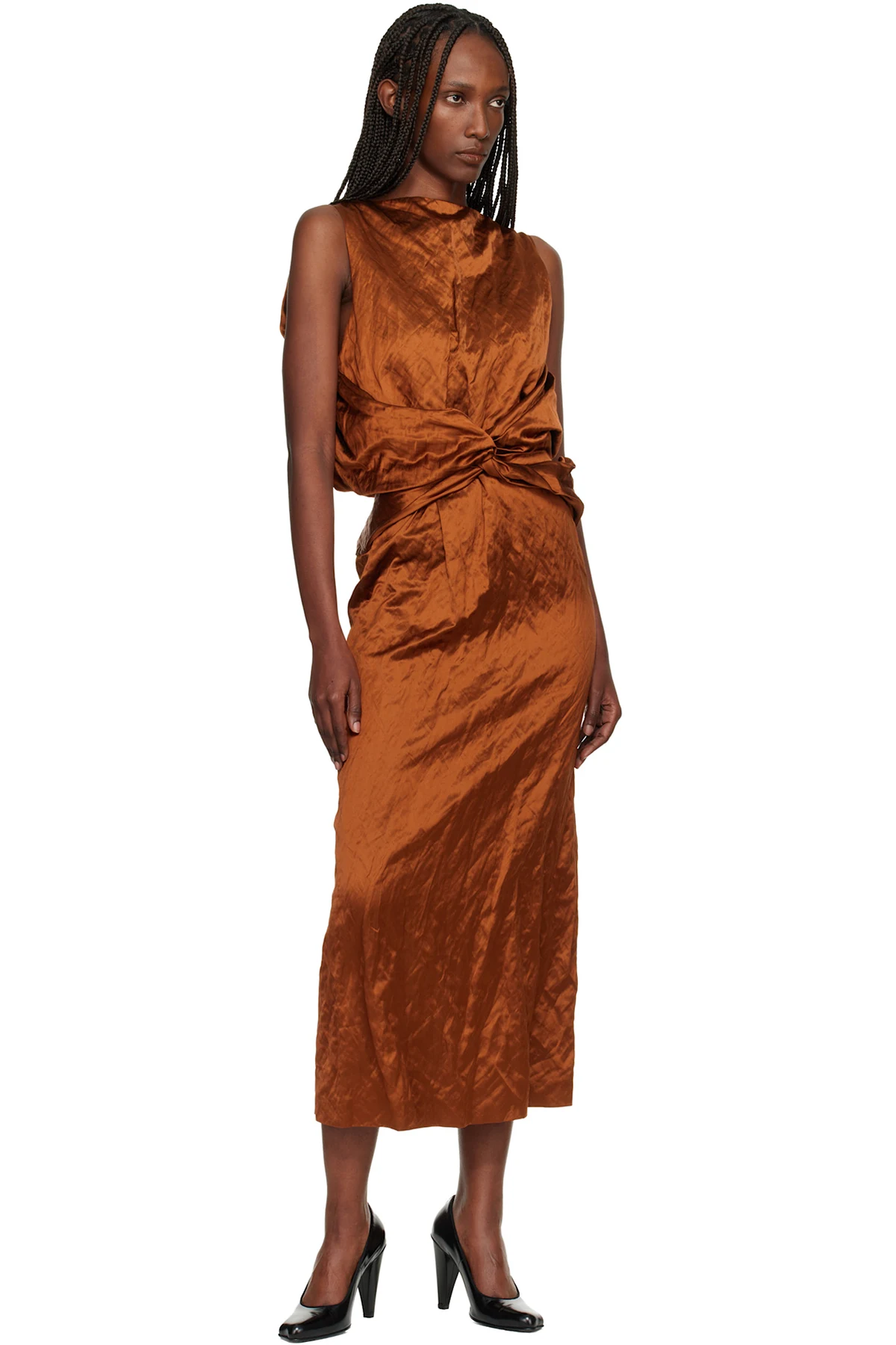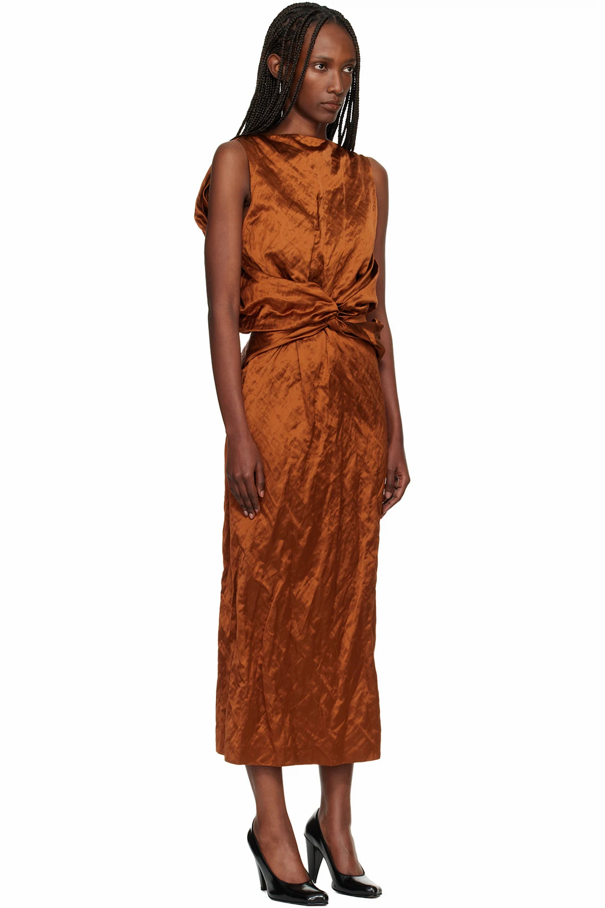 · Draping and twisted detailing at waist