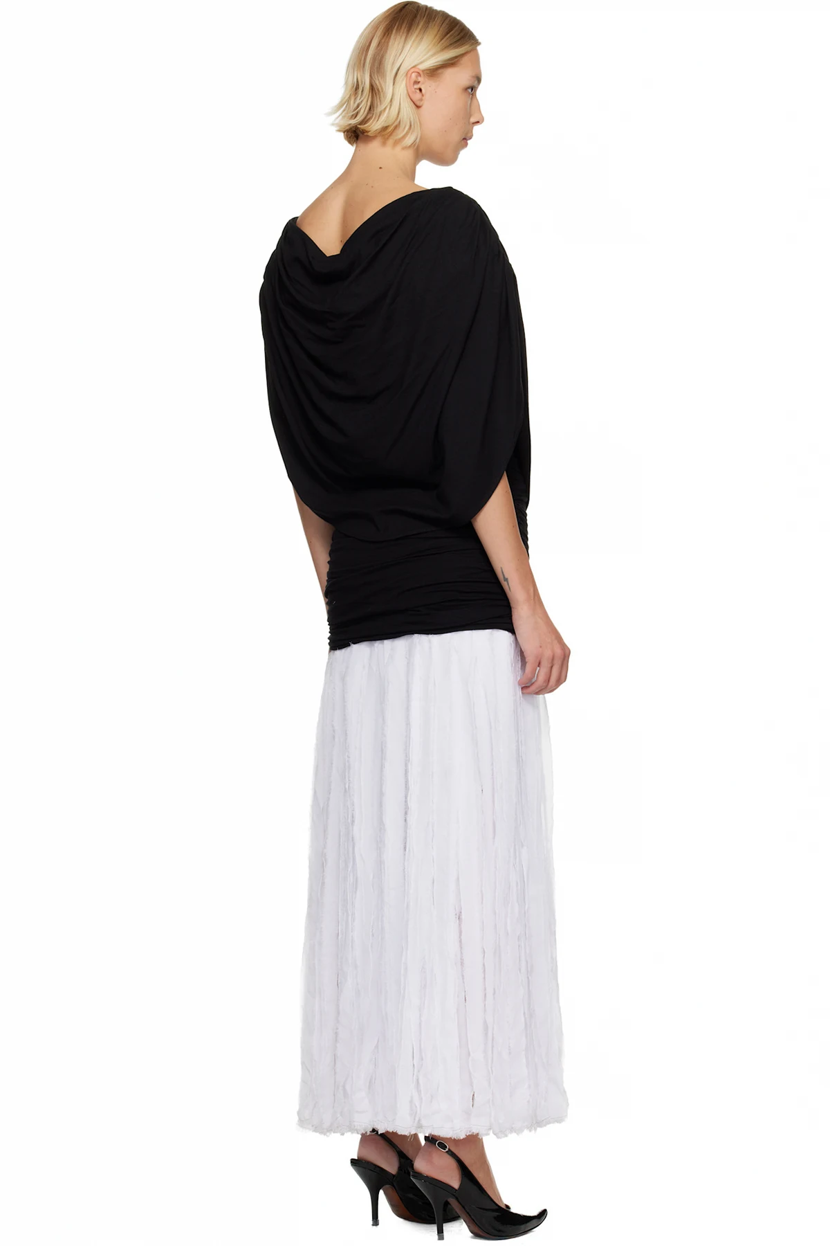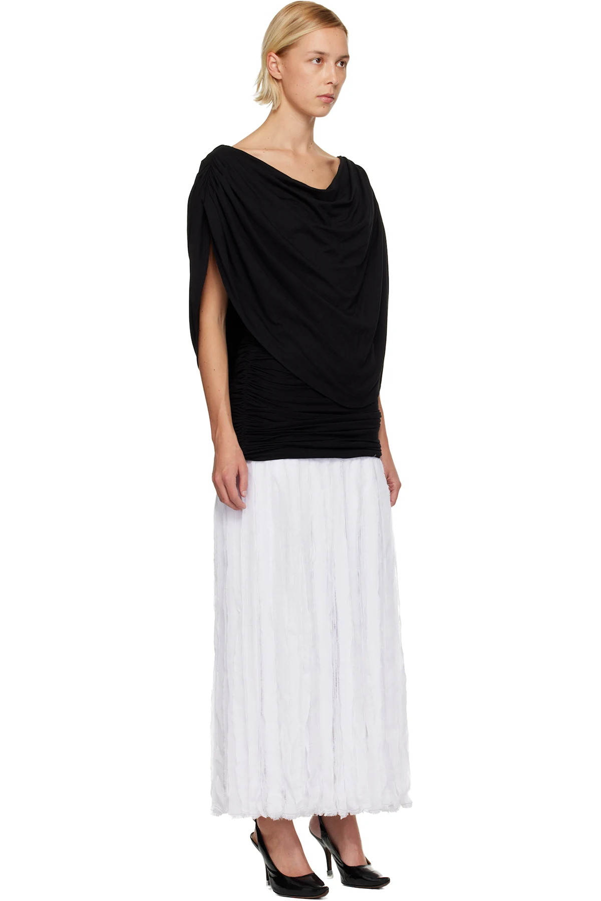 · Draping at cowl neck and back