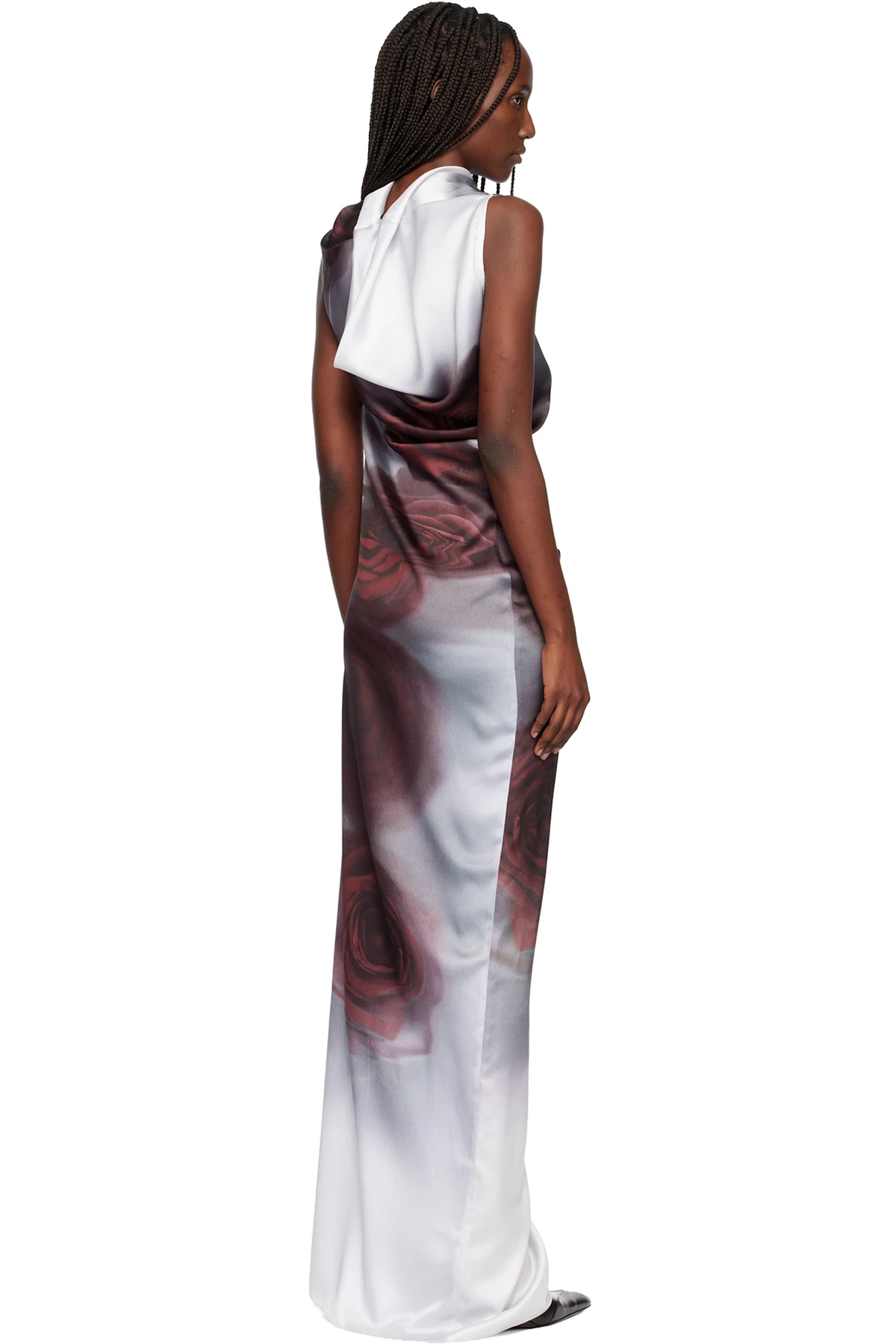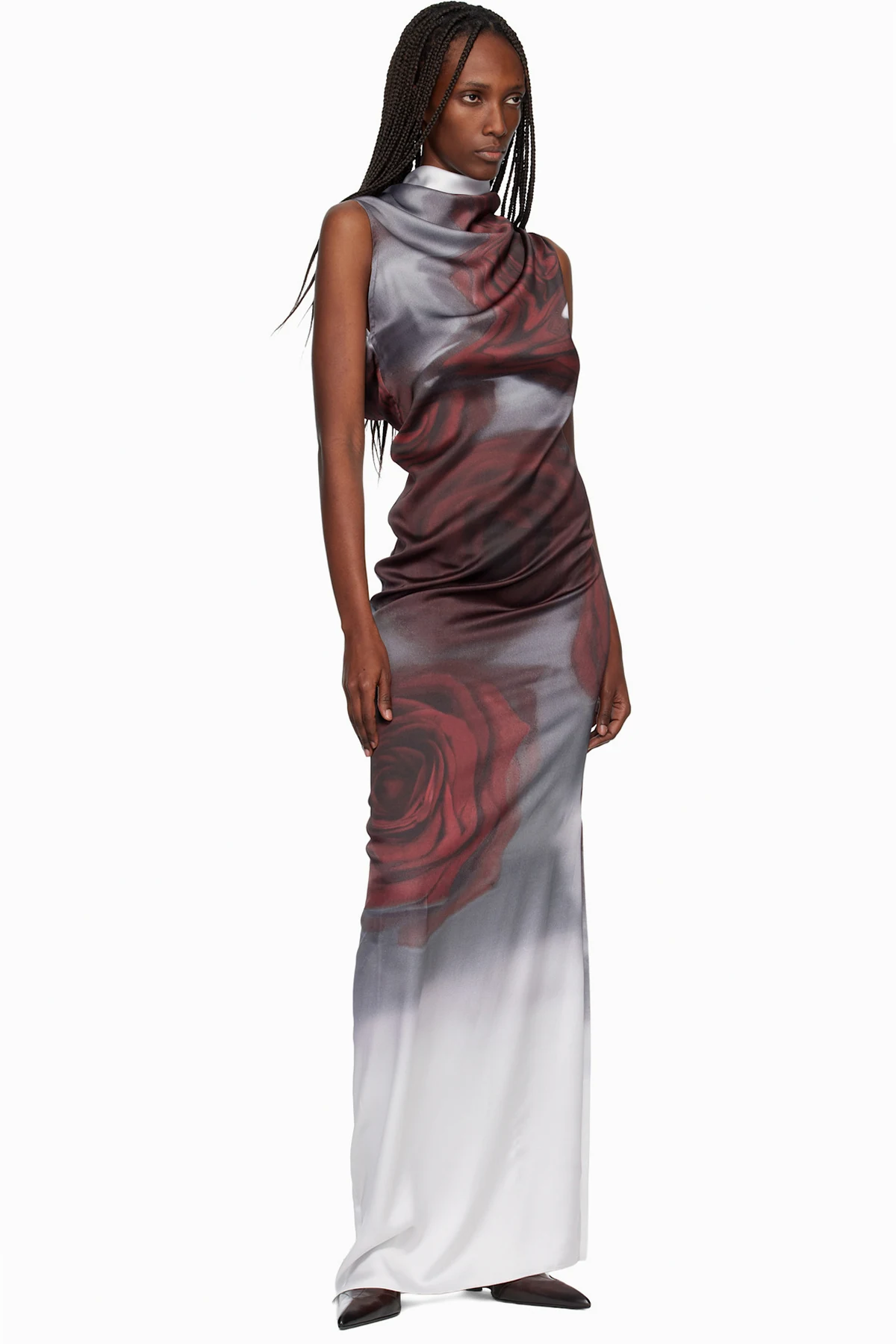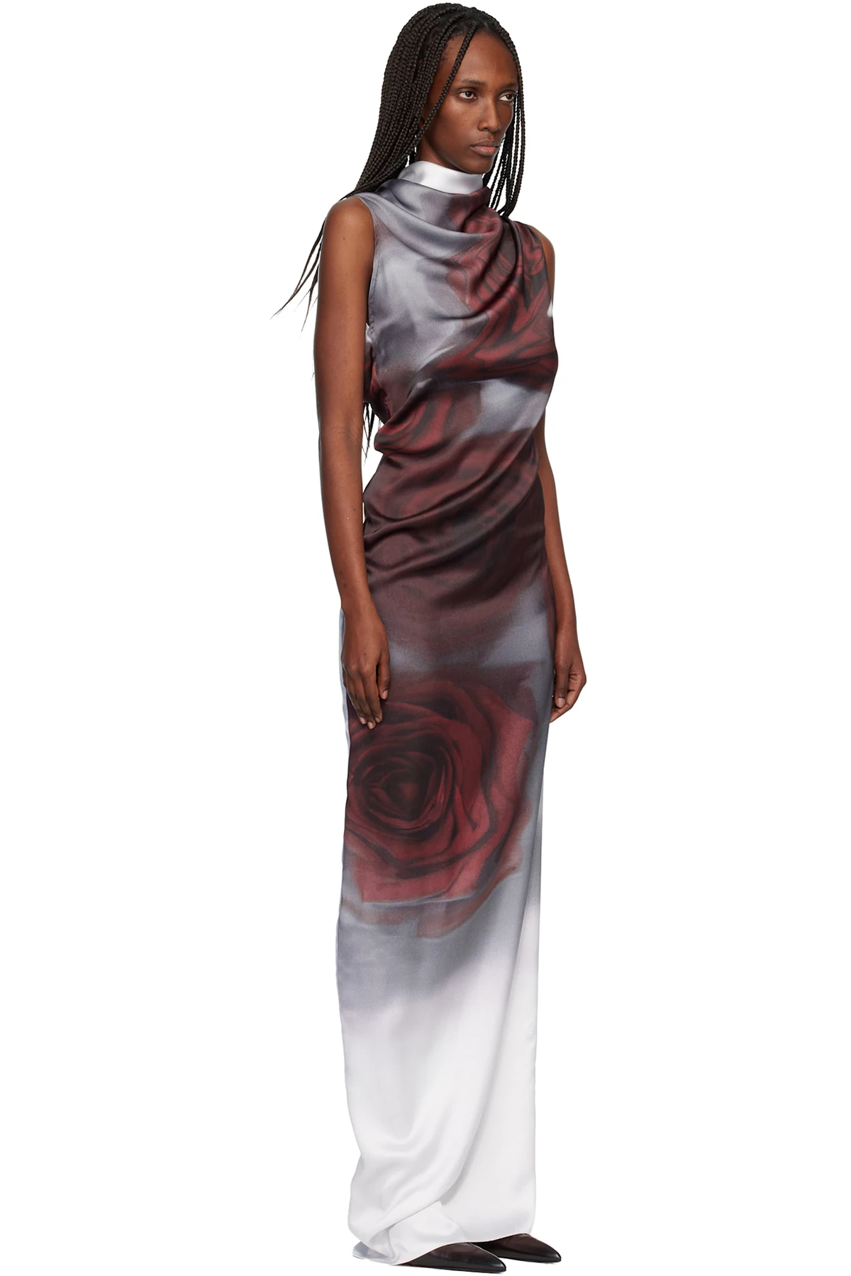 Gray & Red 'The Draped Blurry Roses' Maxi Dress