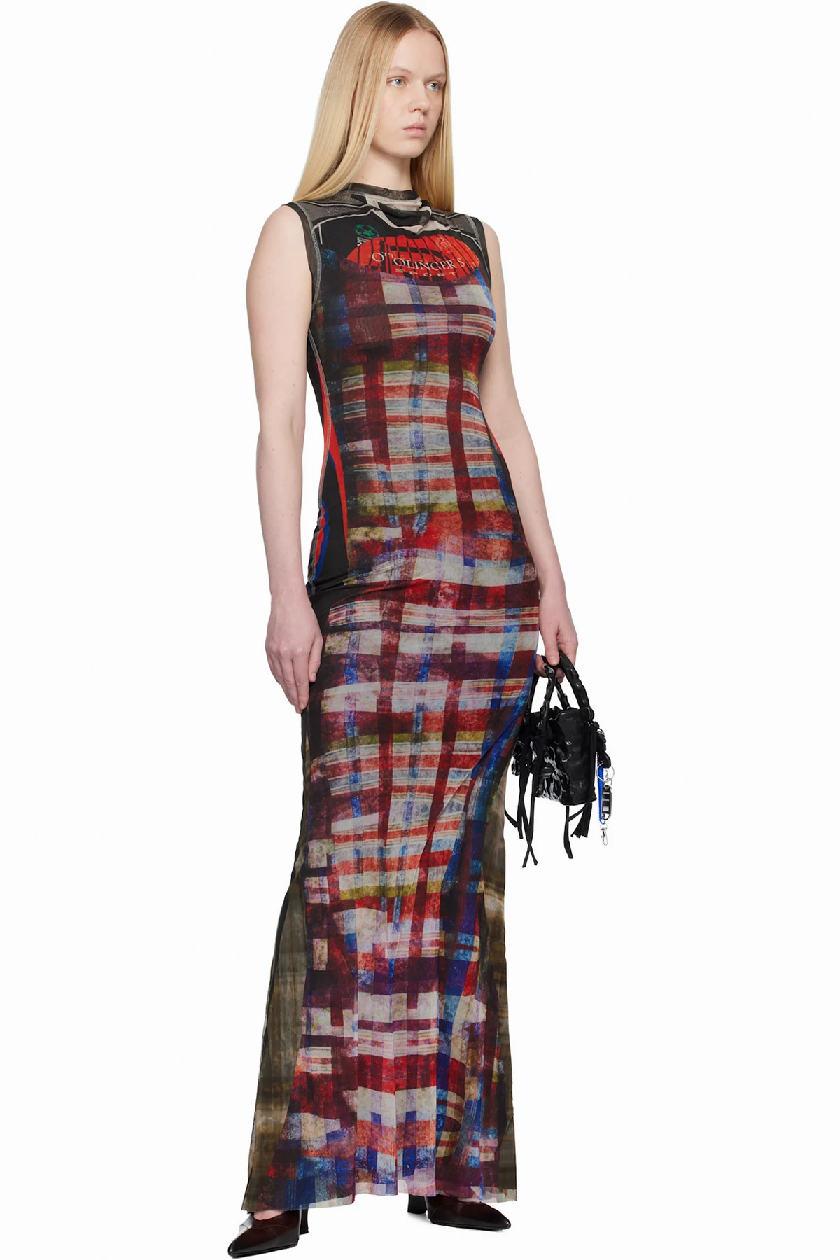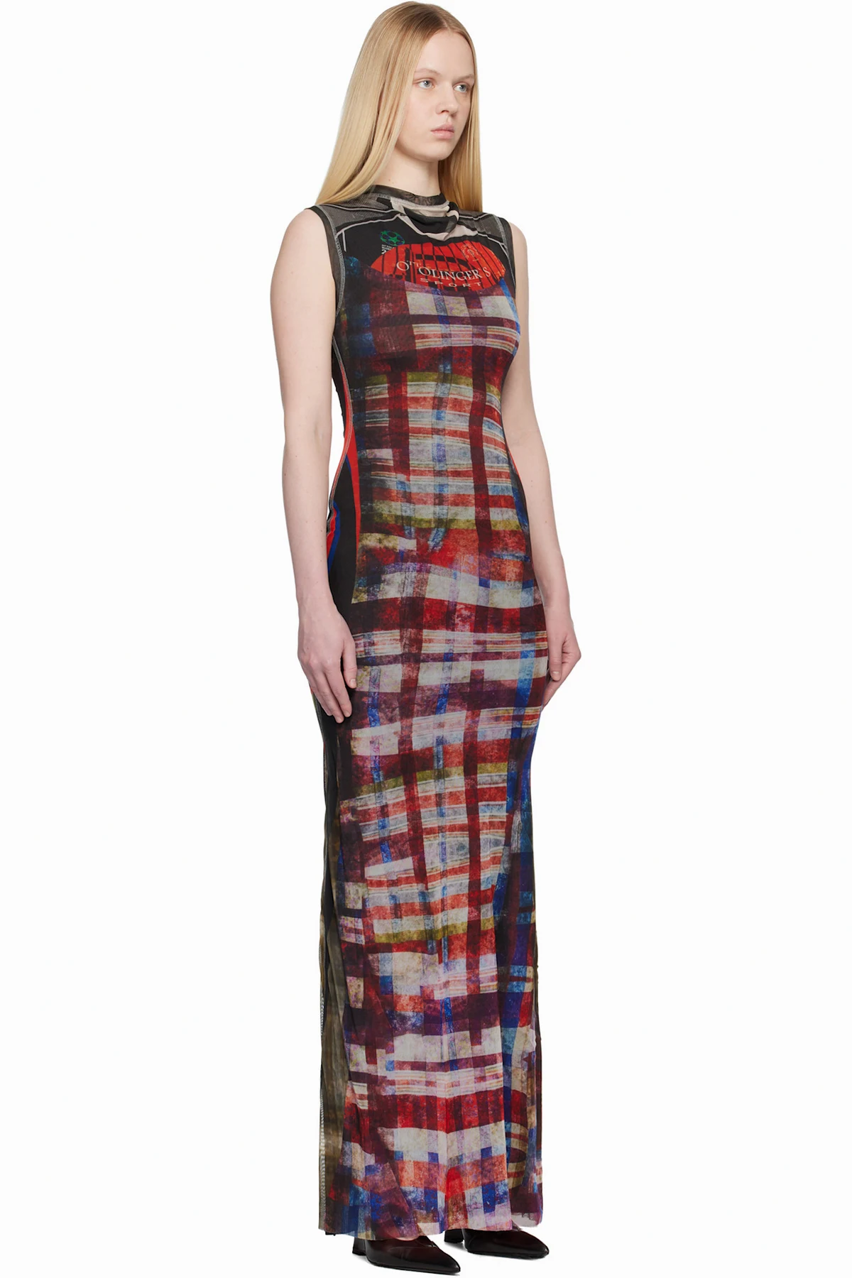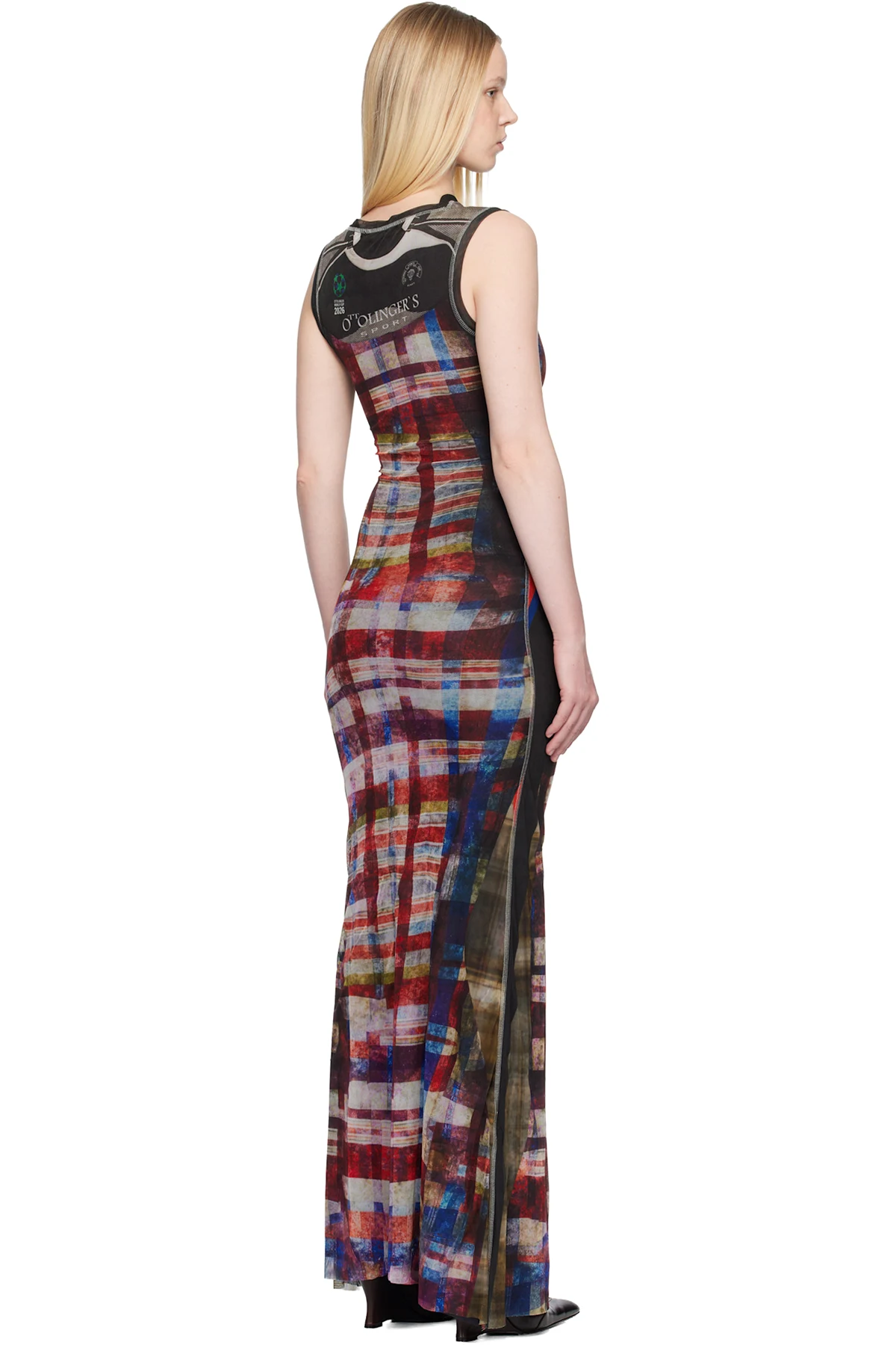 Semi-sheer recycled mesh maxi dress.