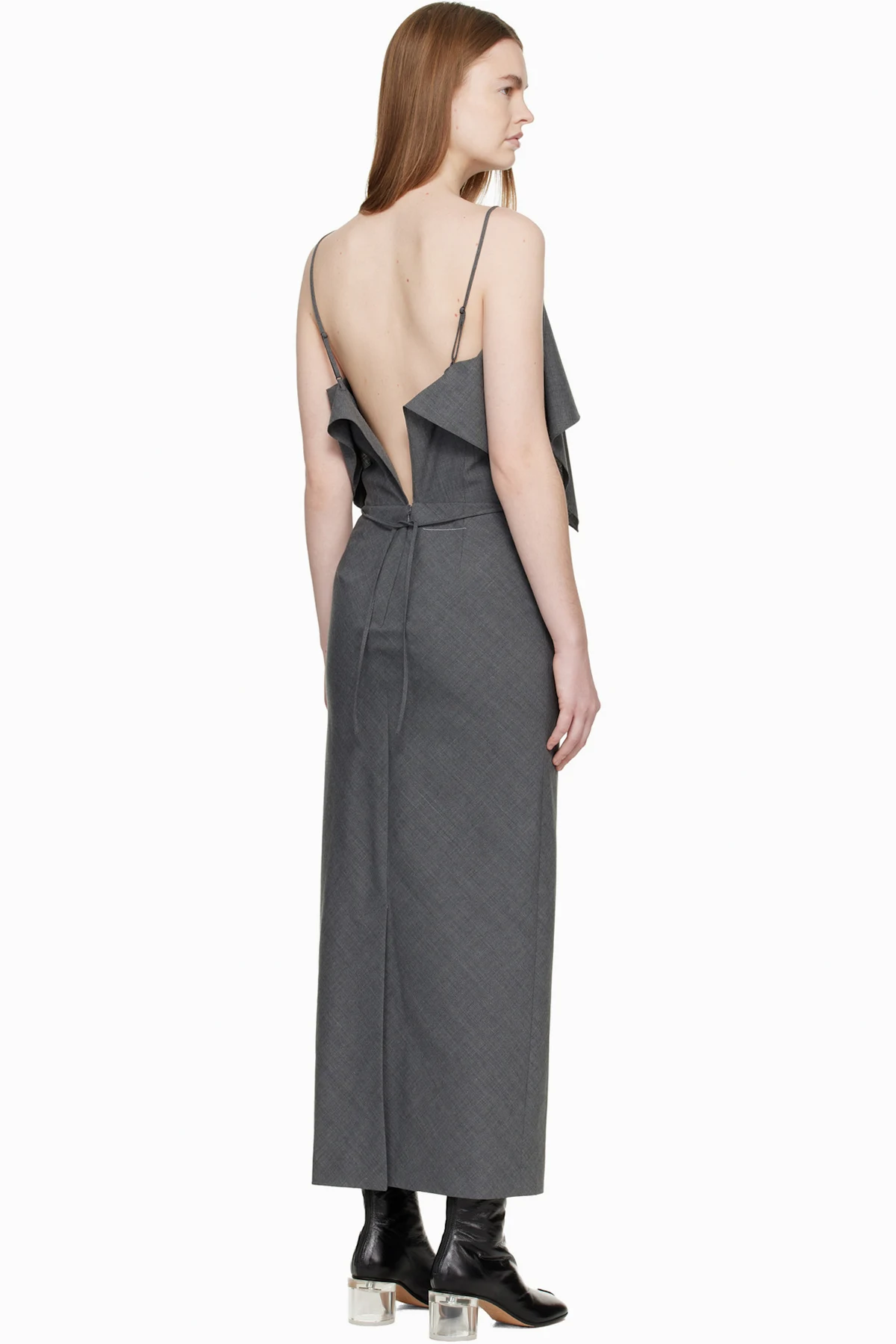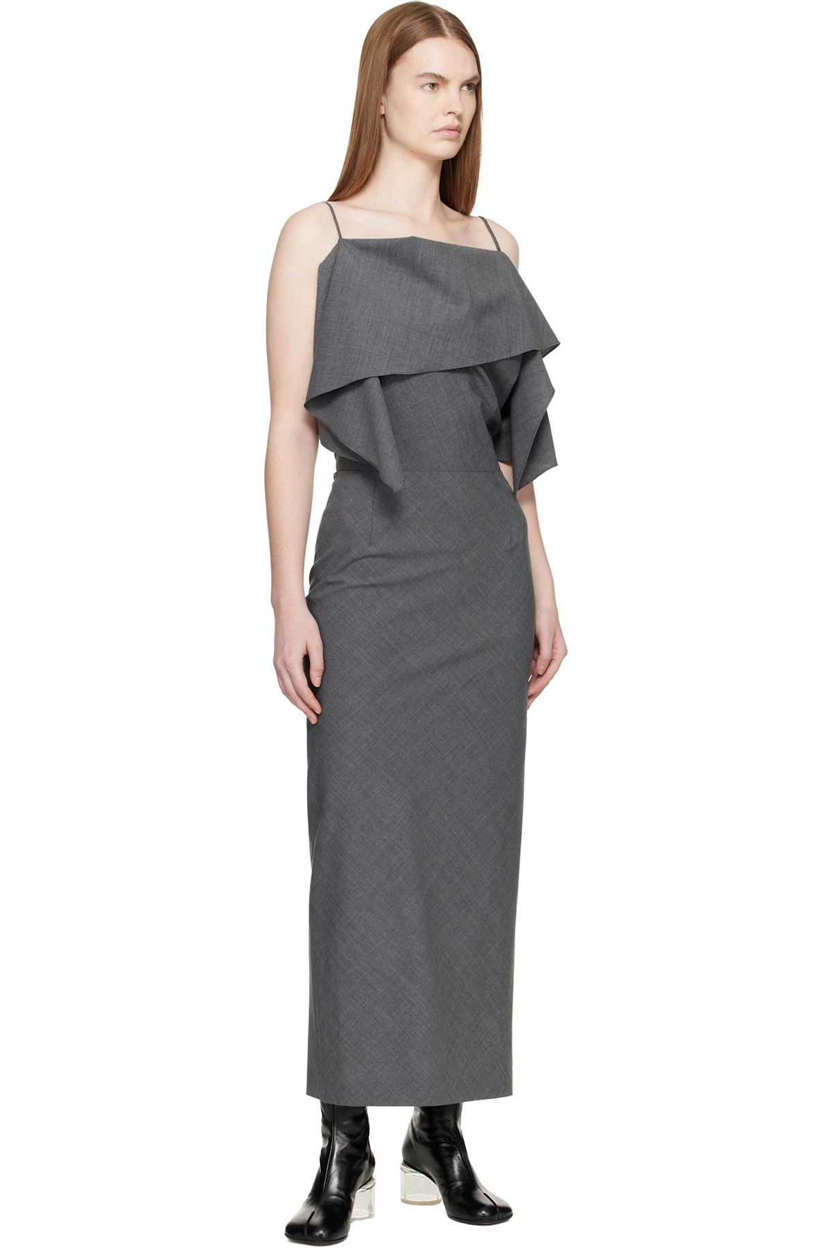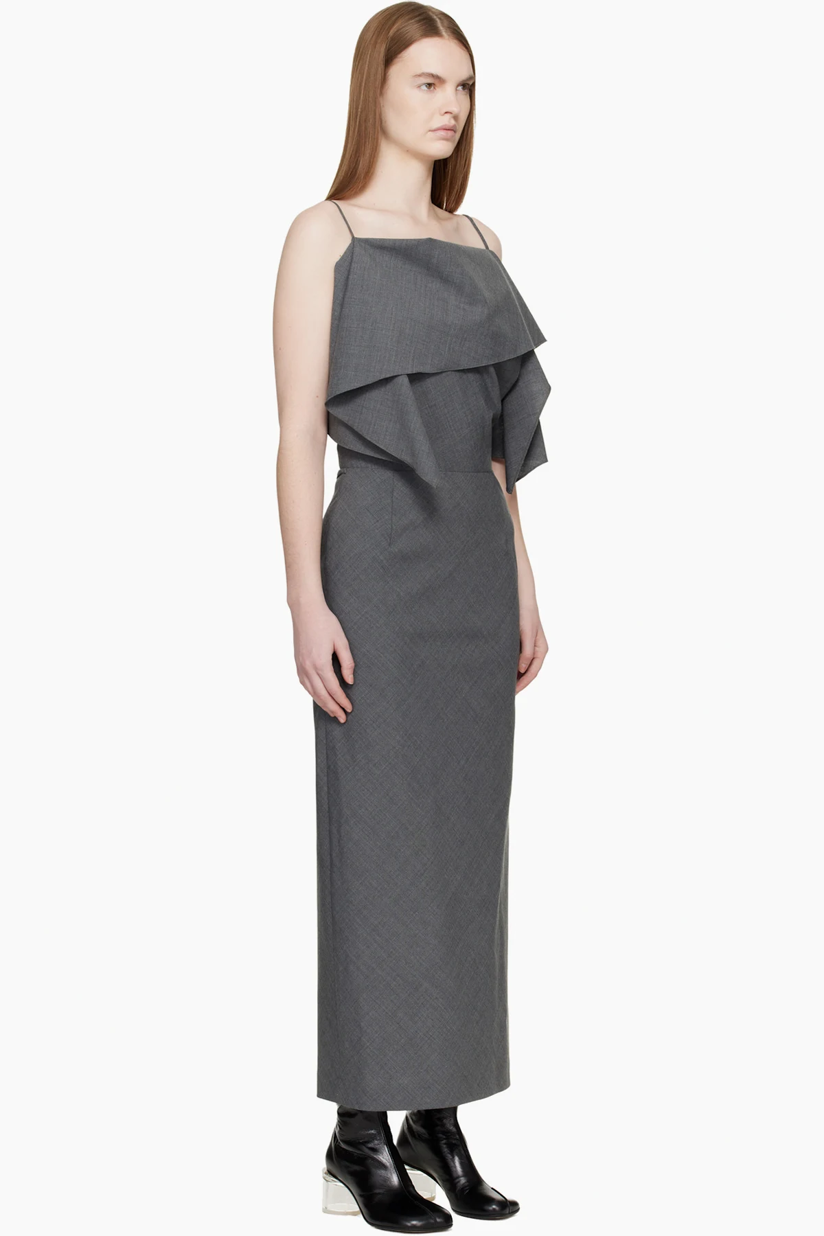 Gray Folded Wool Maxi Dress