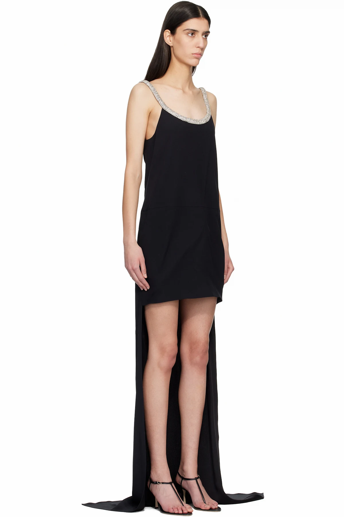 · Crystal-cut detailing at scoop neck and fixed shoulder straps