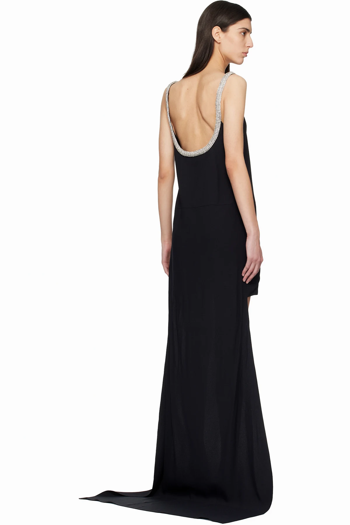 Black Crystal Embroidery Sleeveless Asymmetric Cocktail Maxi Dress