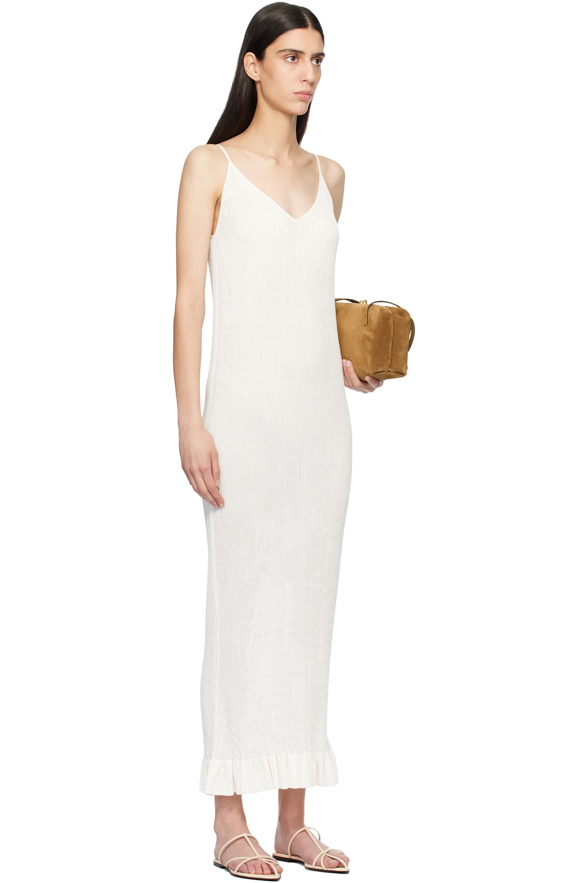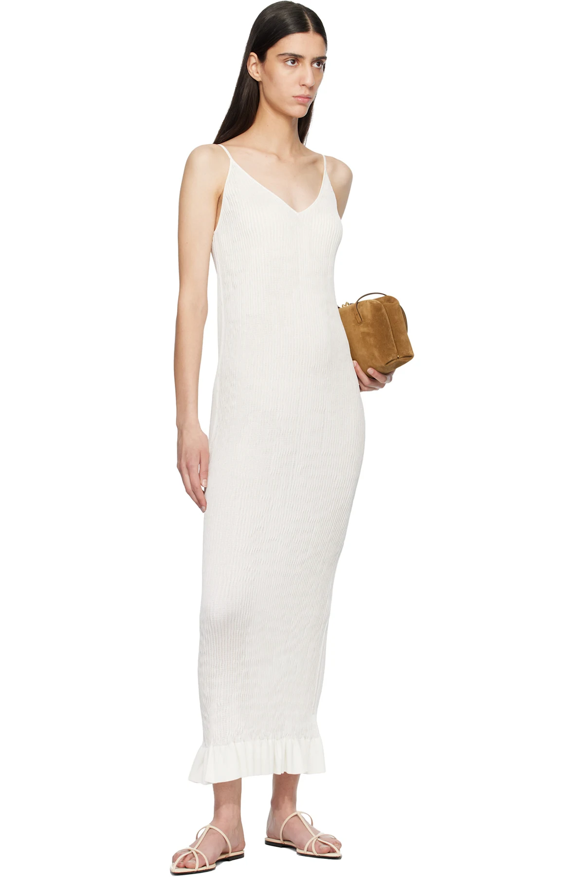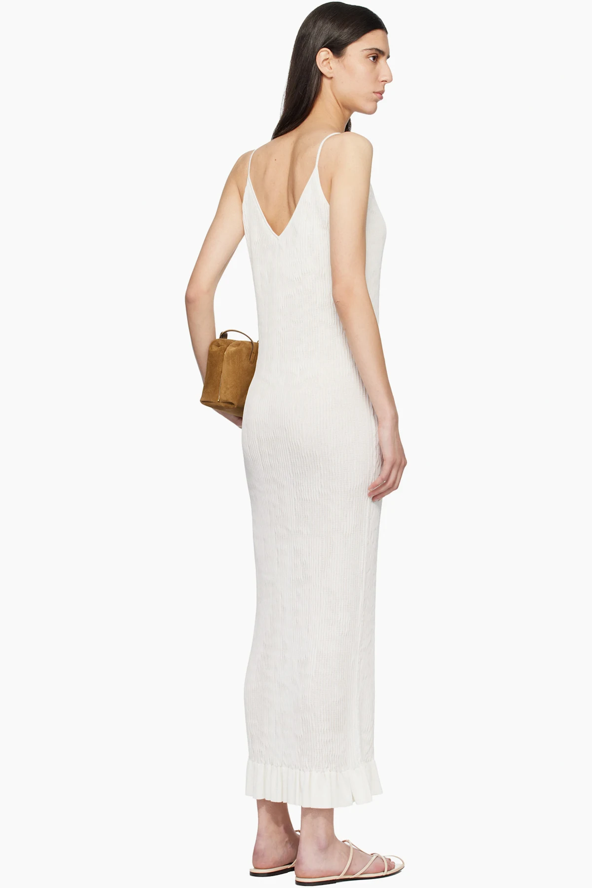Off-White Smocked Fine Rib Frill Detail Maxi Dress
