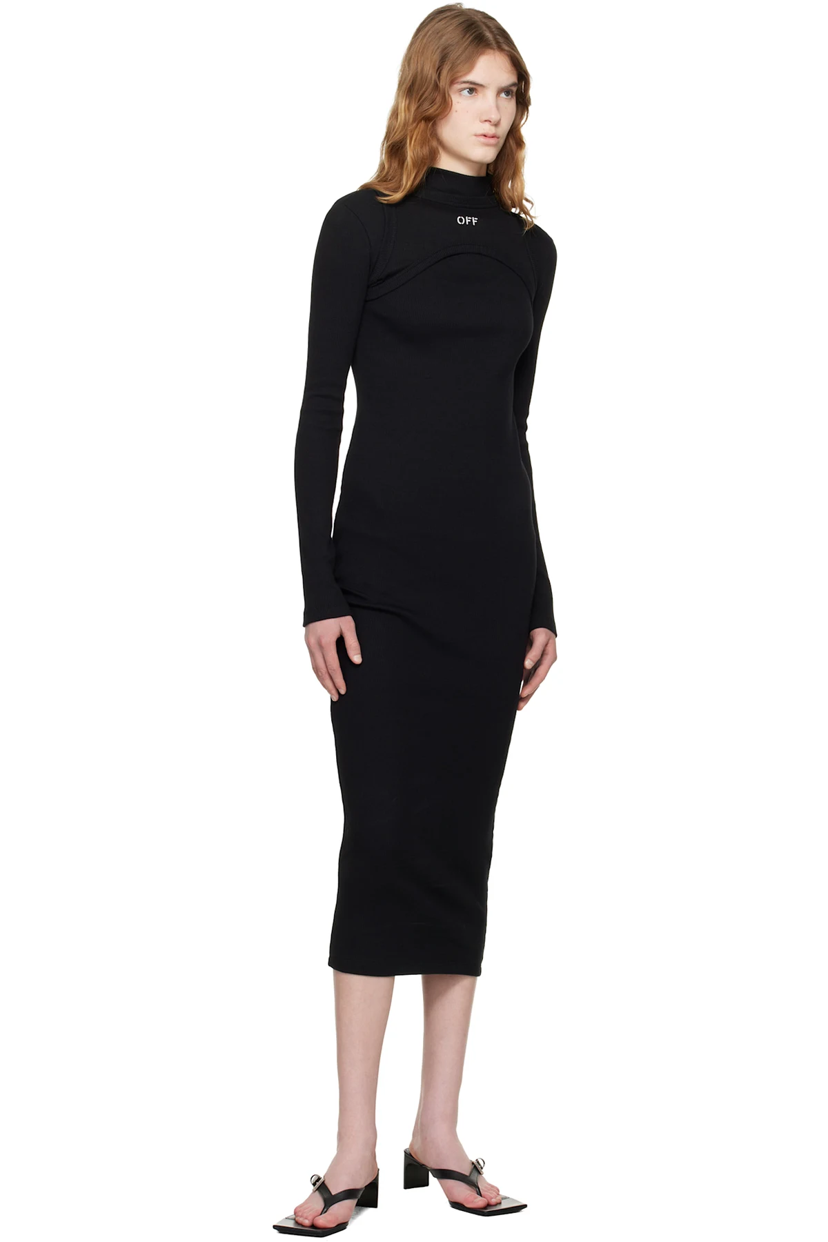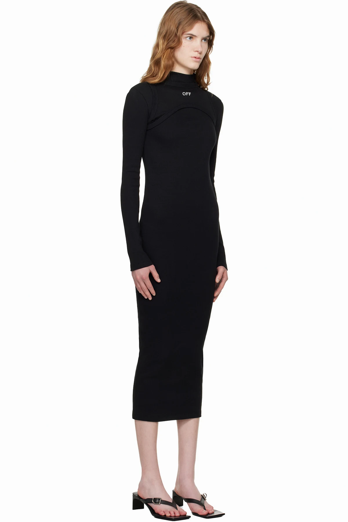 Black 'OFF' Stamp Rib Round Maxi Dress