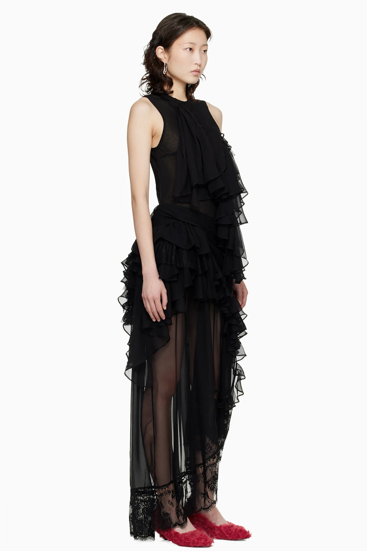Body: 100% silk. Trim: 51% nylon, 49% recycled nylon.