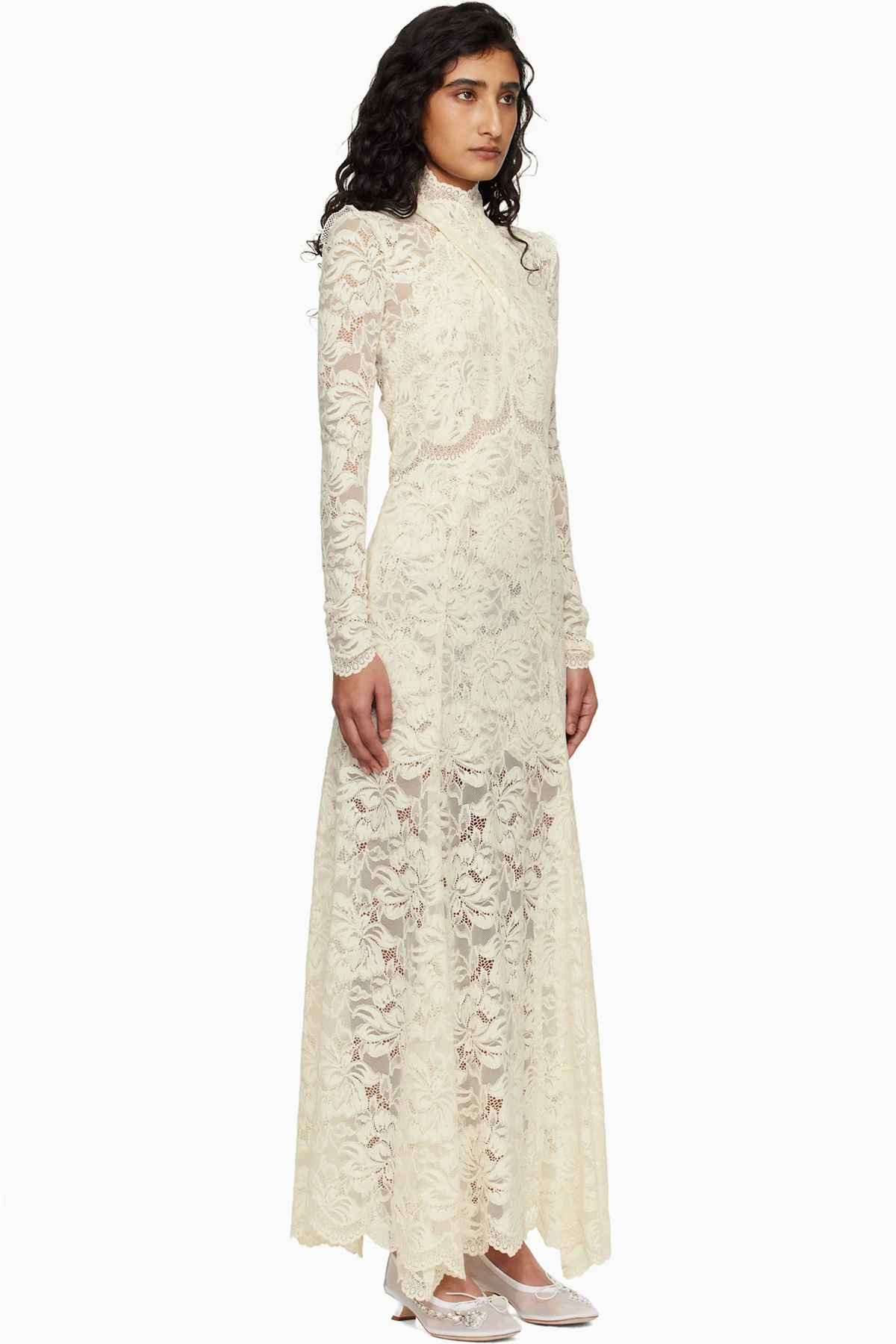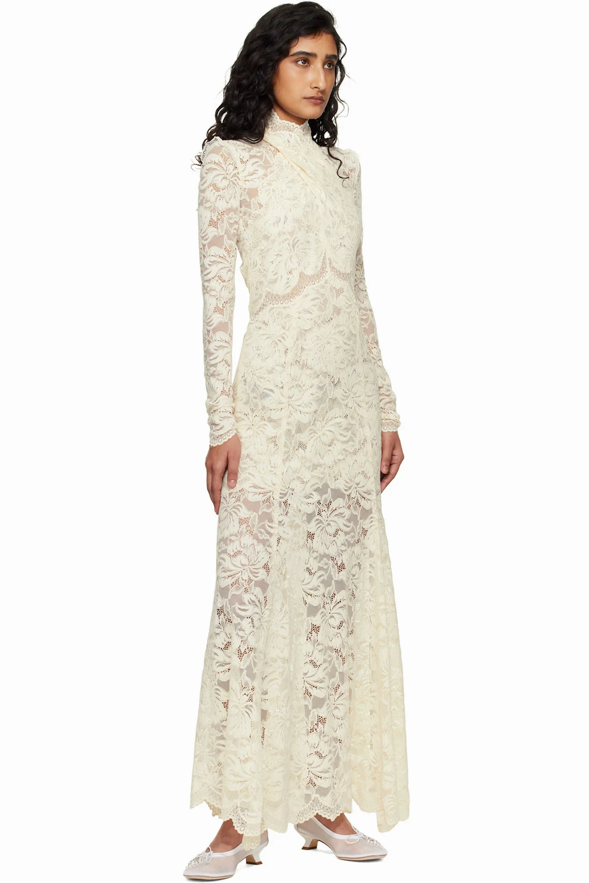 Off-White Lace Cut-Out Maxi Dress