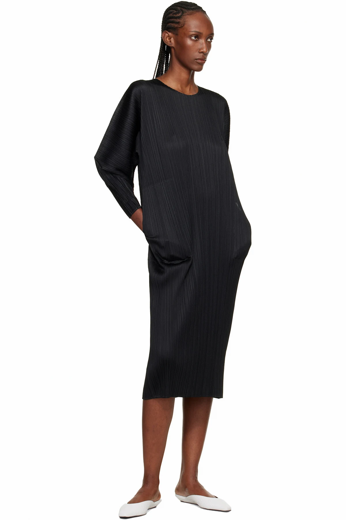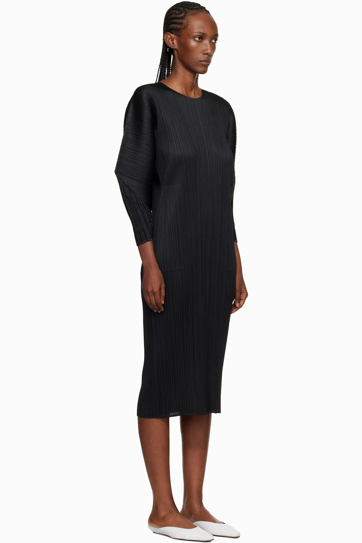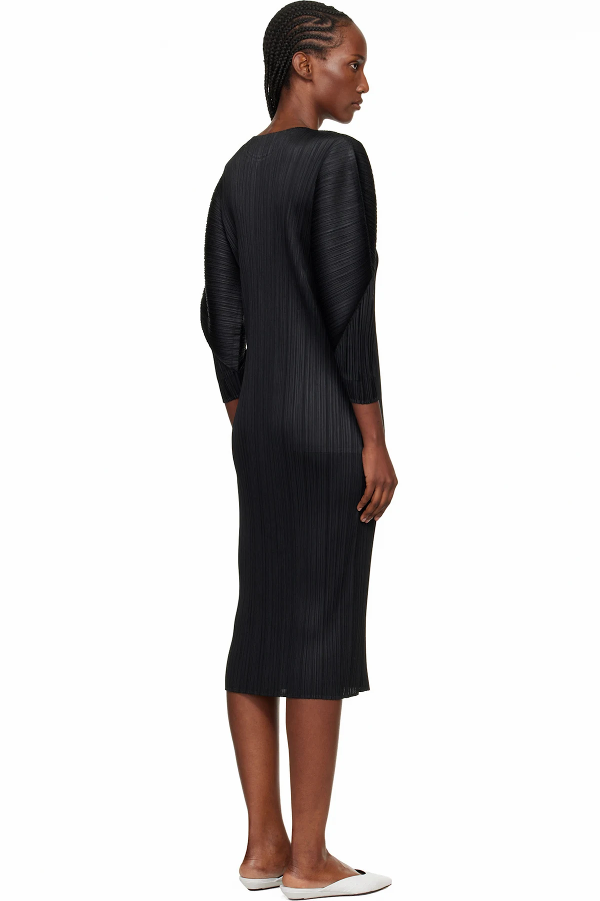Garment-pleated tricot midi dress.
