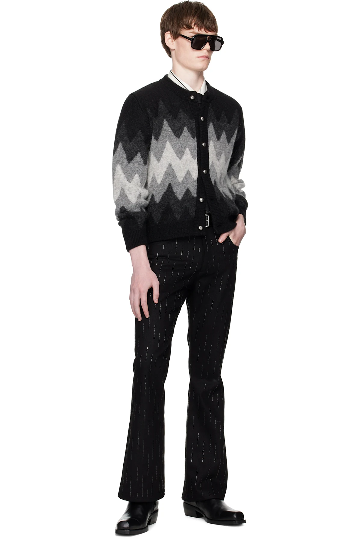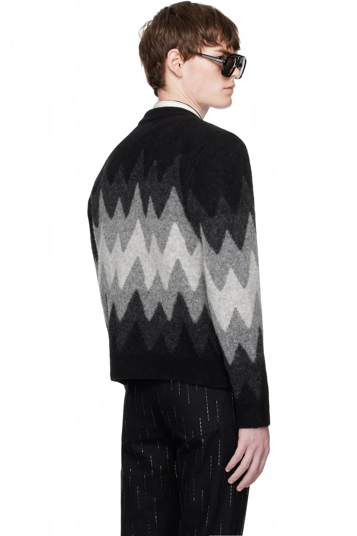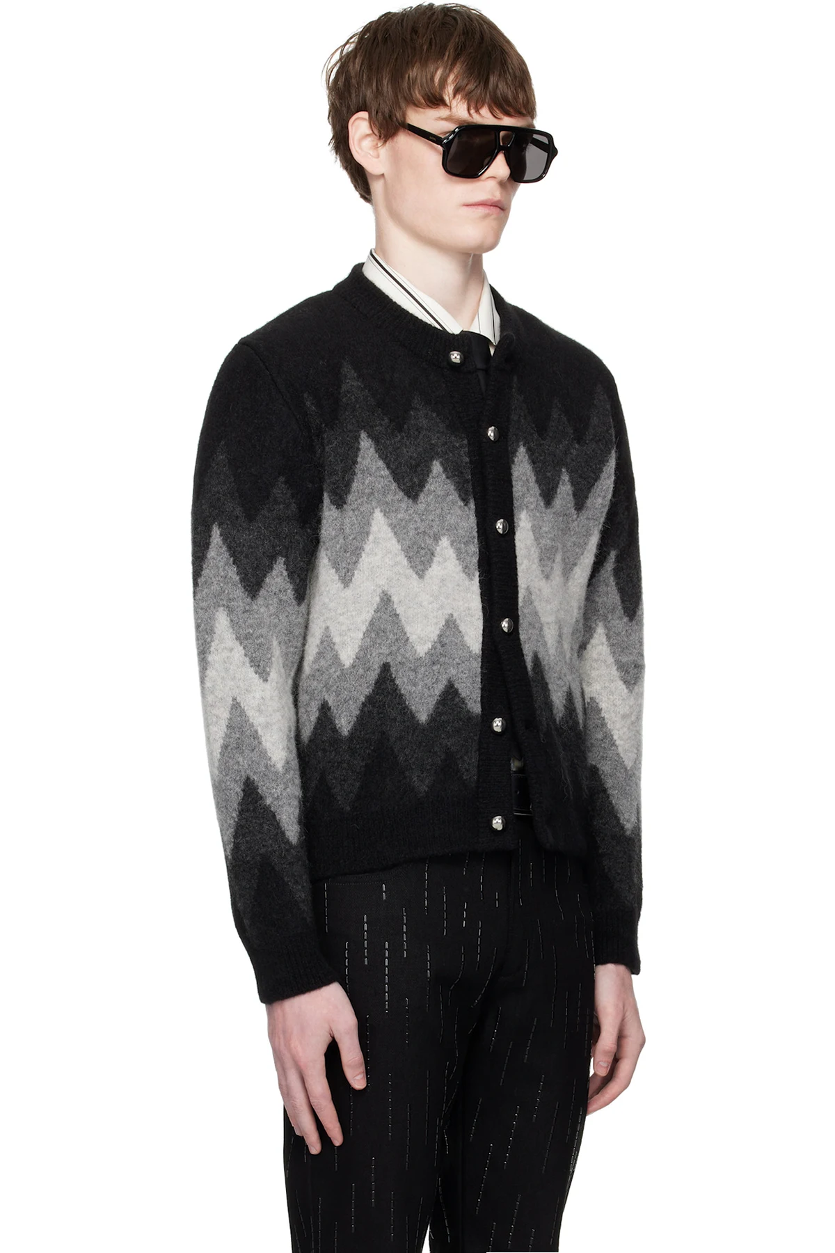 Black & Gray Degrade Jacquard Cardigan