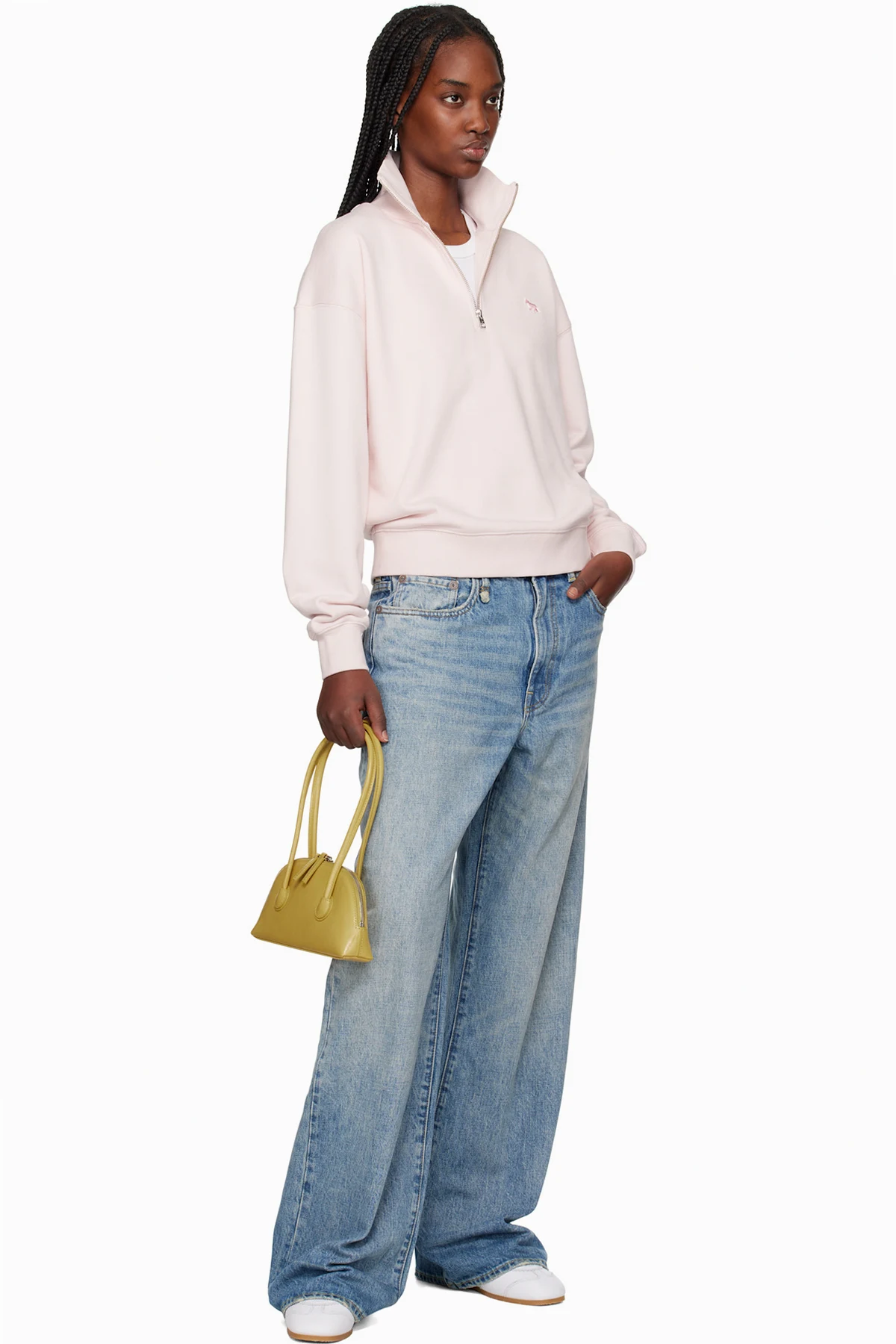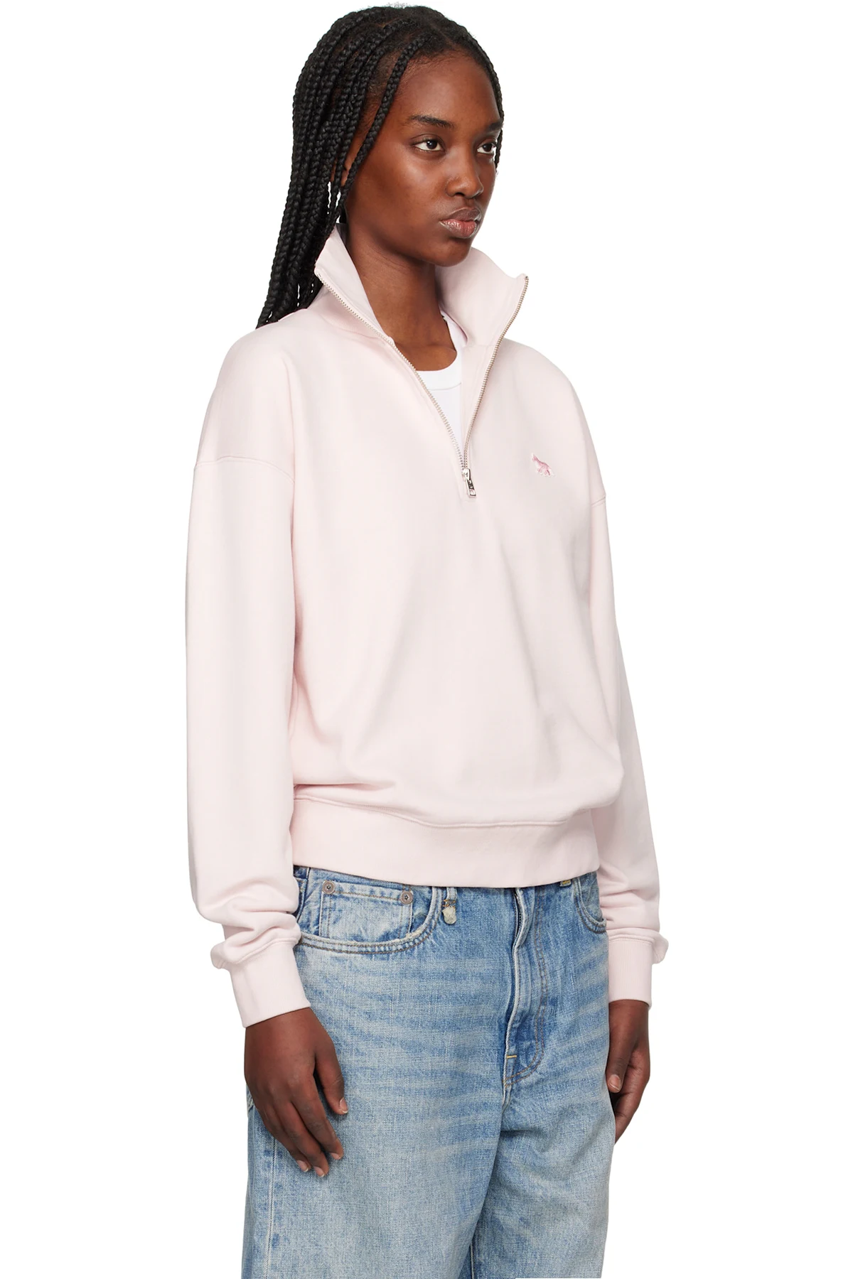 Pink Baby Fox Patch Half Zip Sweatshirt