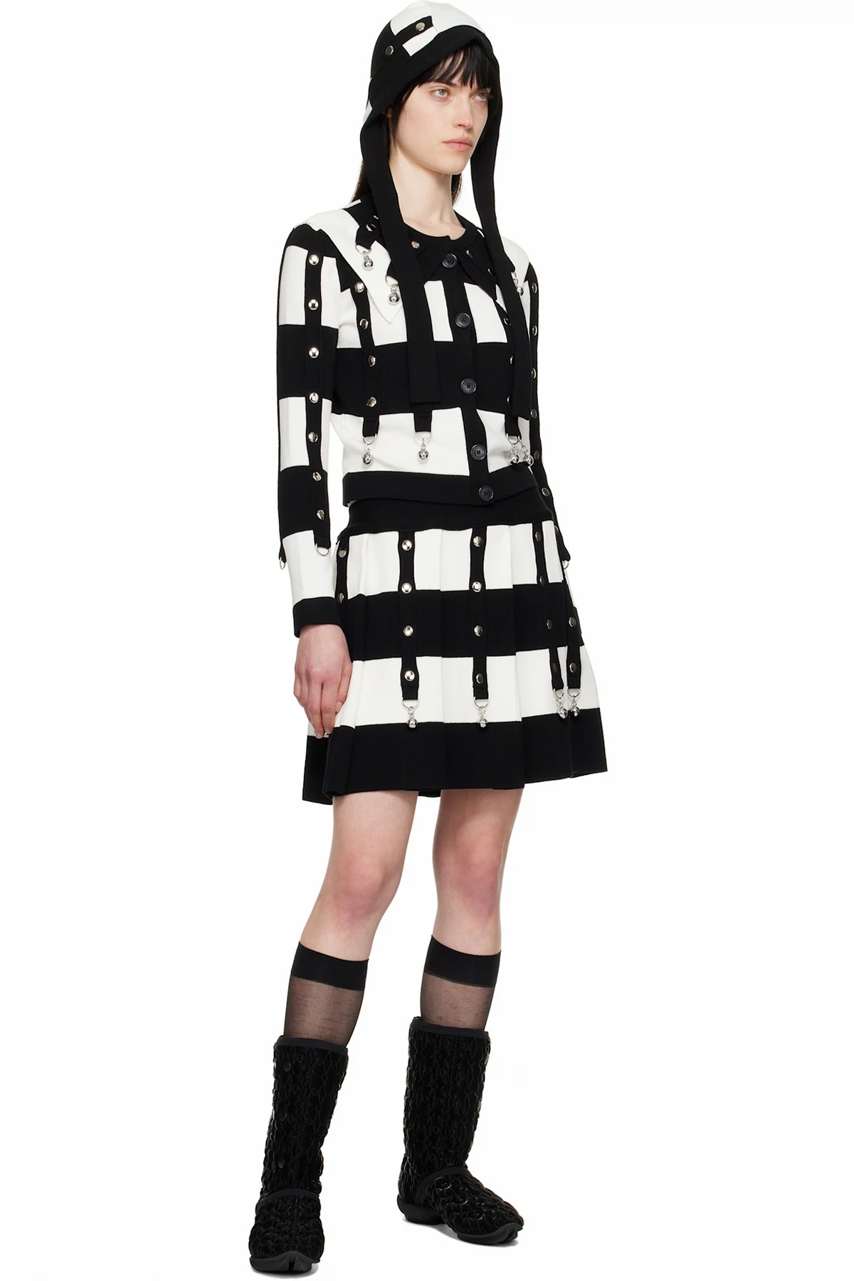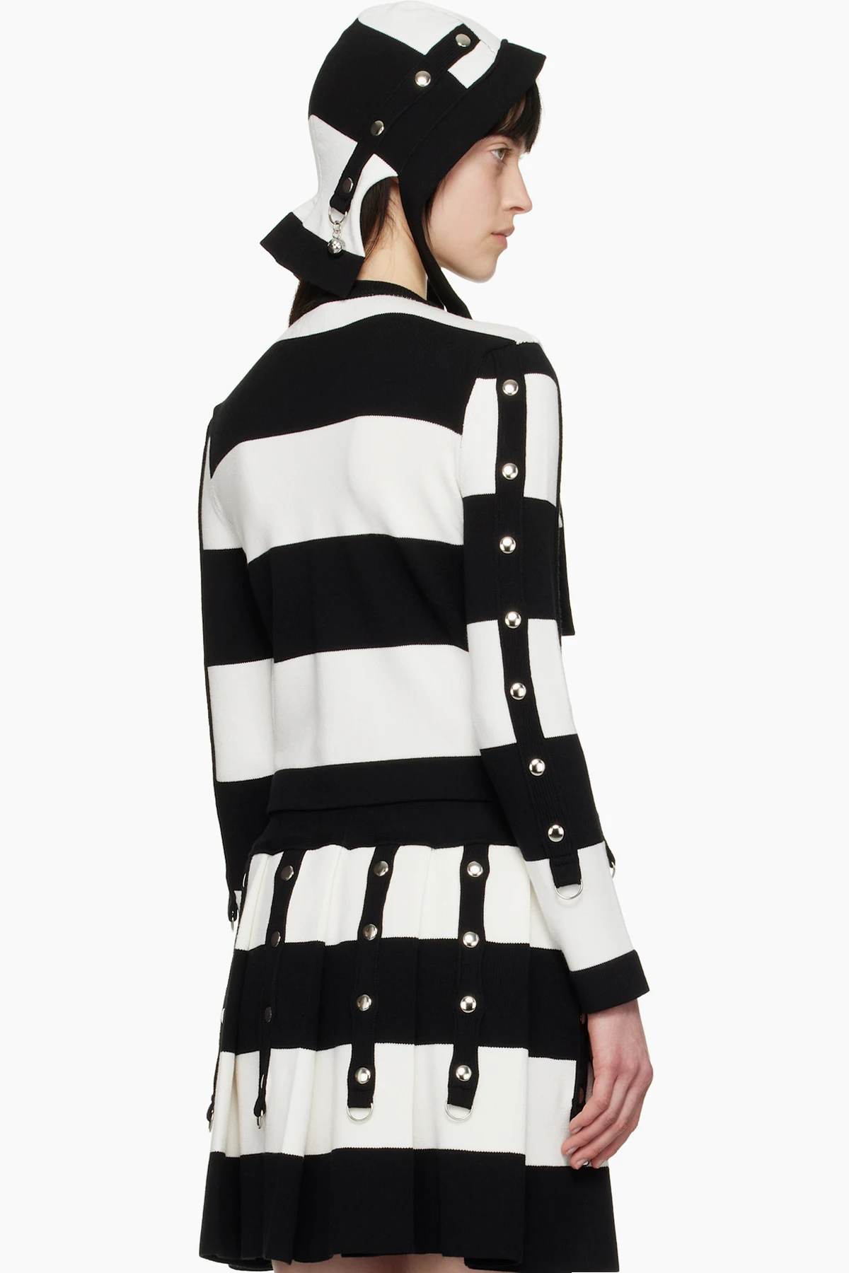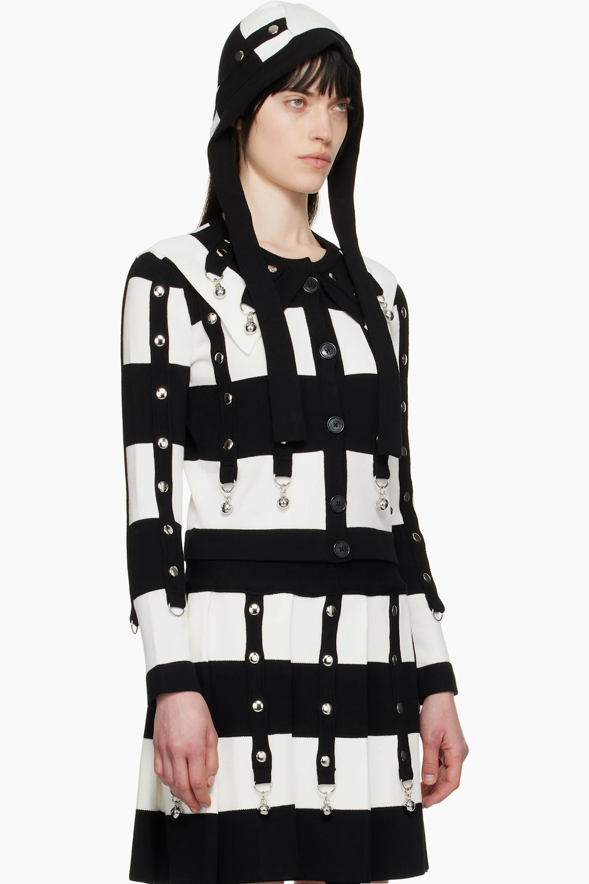 Knit viscose-blend cardigan. Stripes and rib-knit trim with studs, D-rings, and charms throughout.