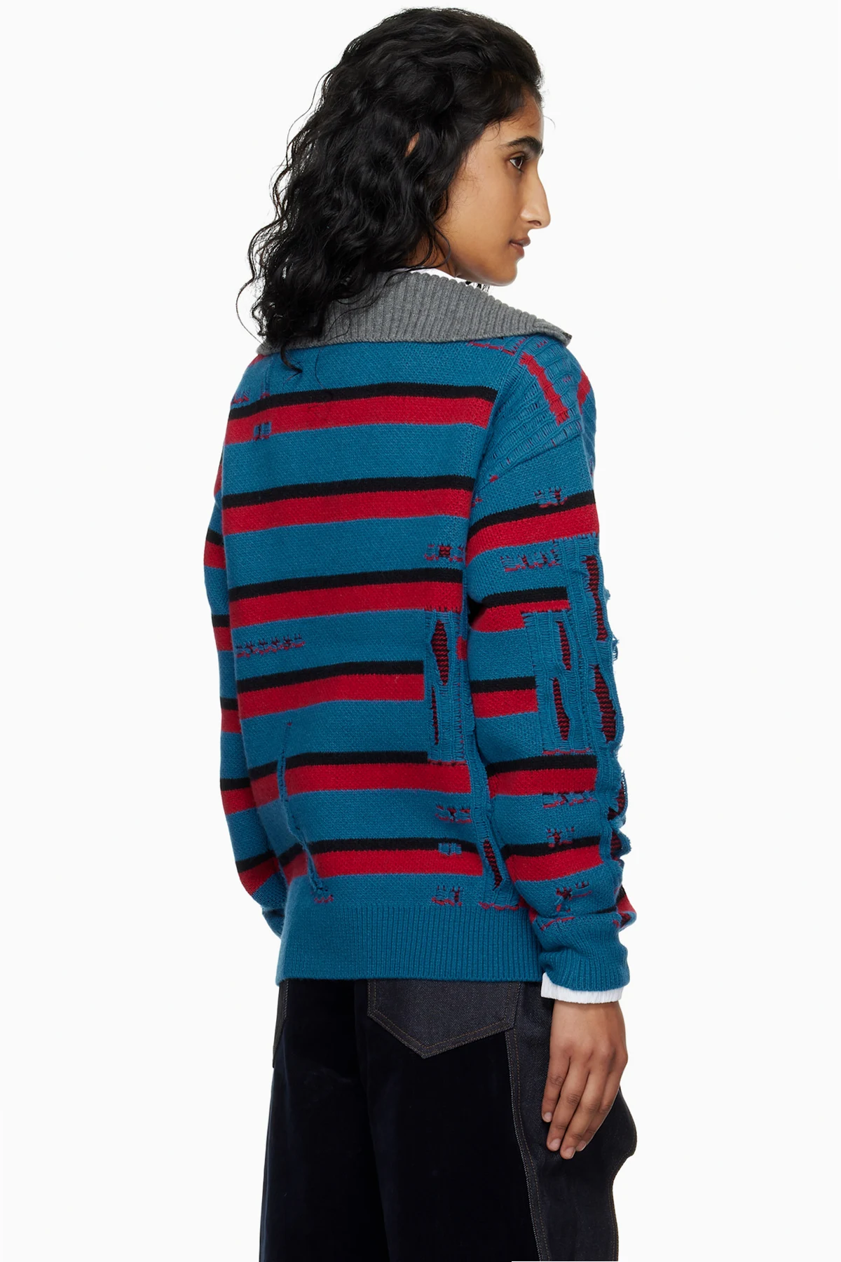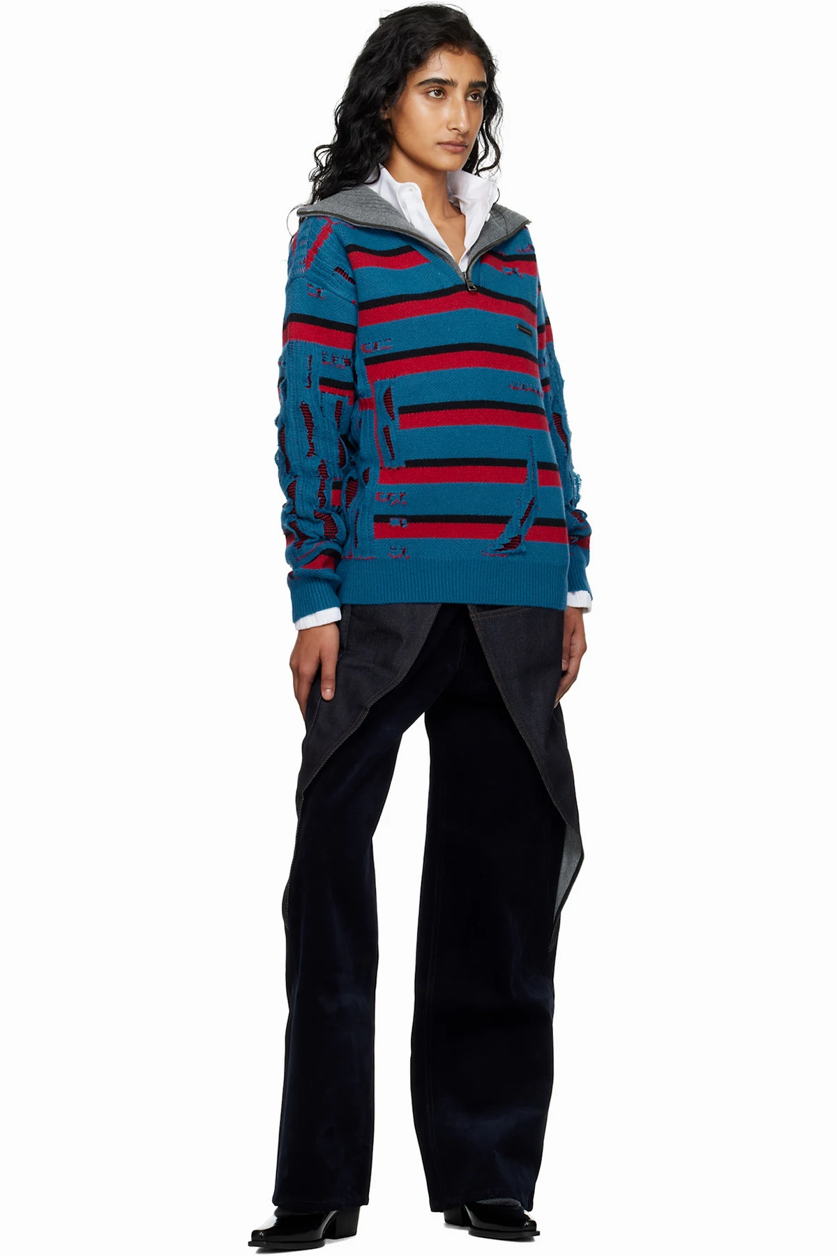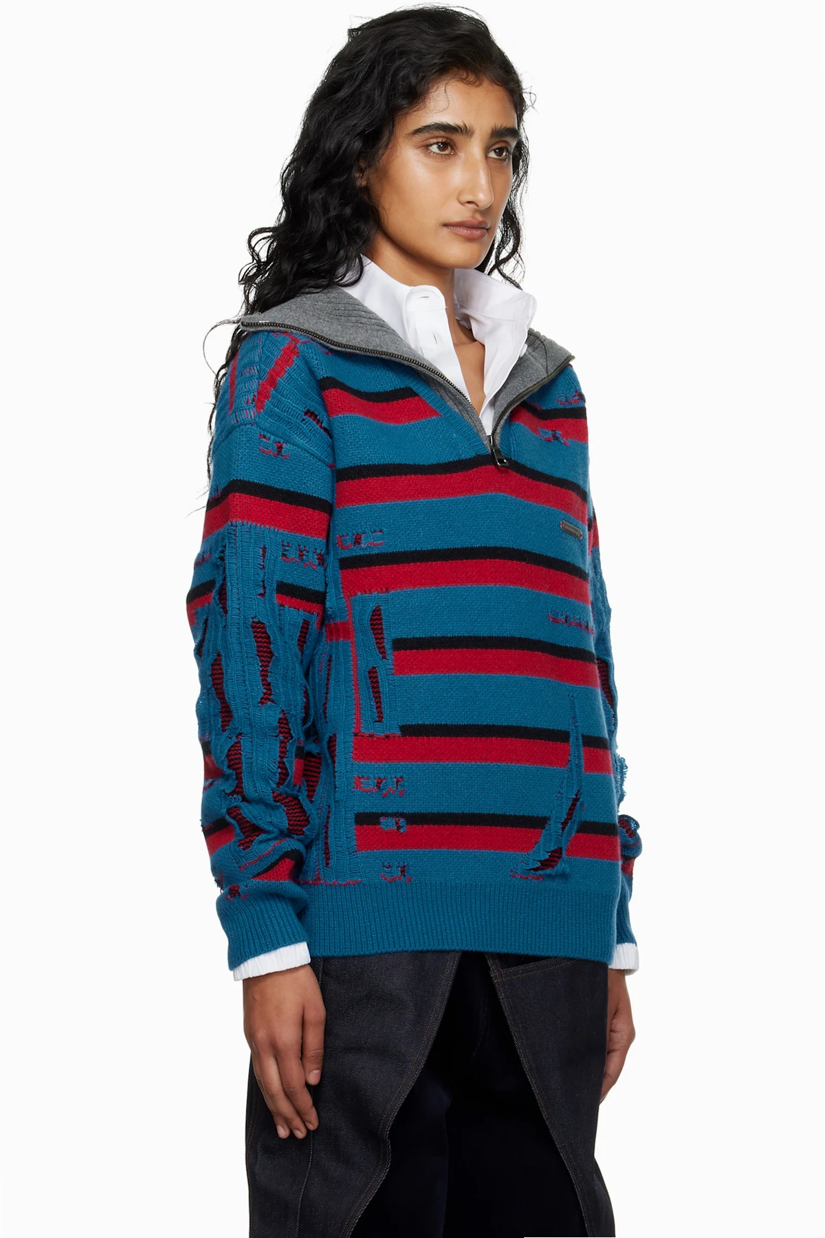 Blue & Red Stripe Jacquard Half Zip-Up Sweater
