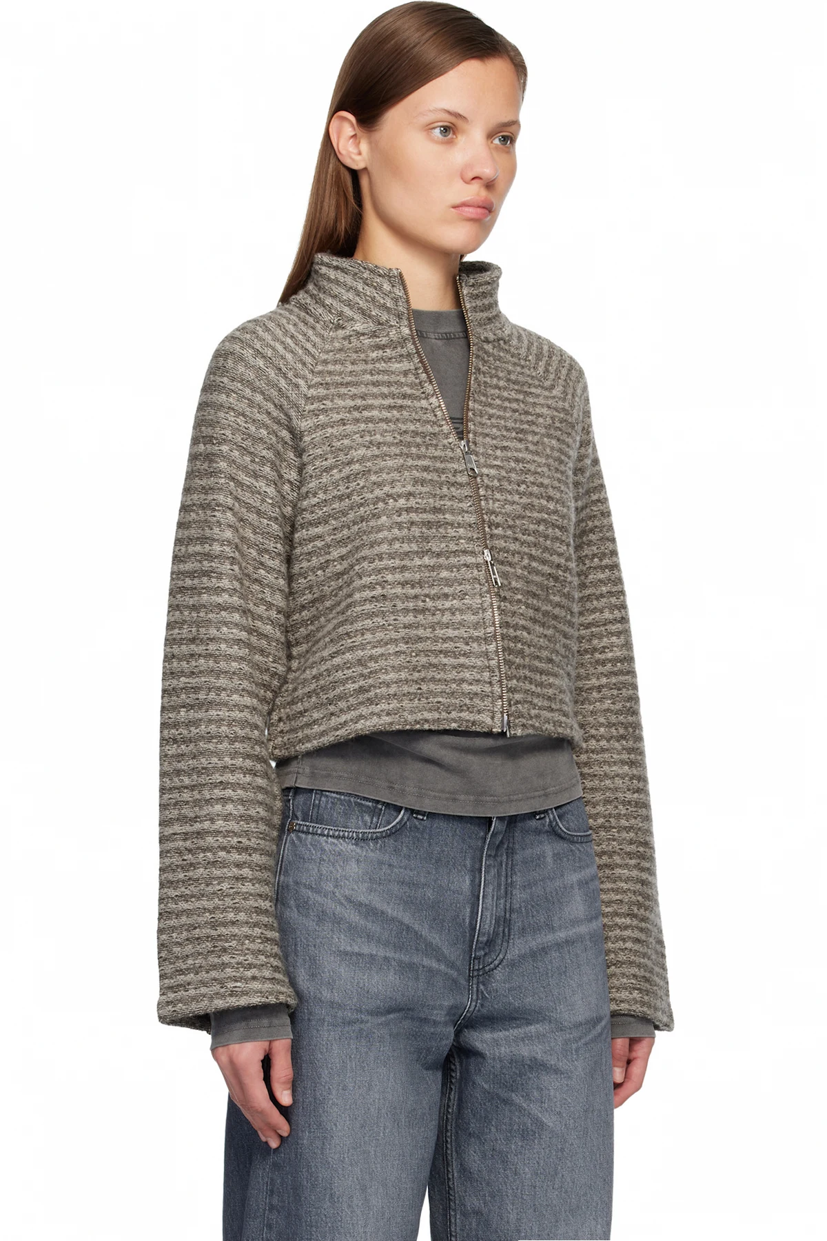 Gray Cropped Leisure Zip Up Jacket
