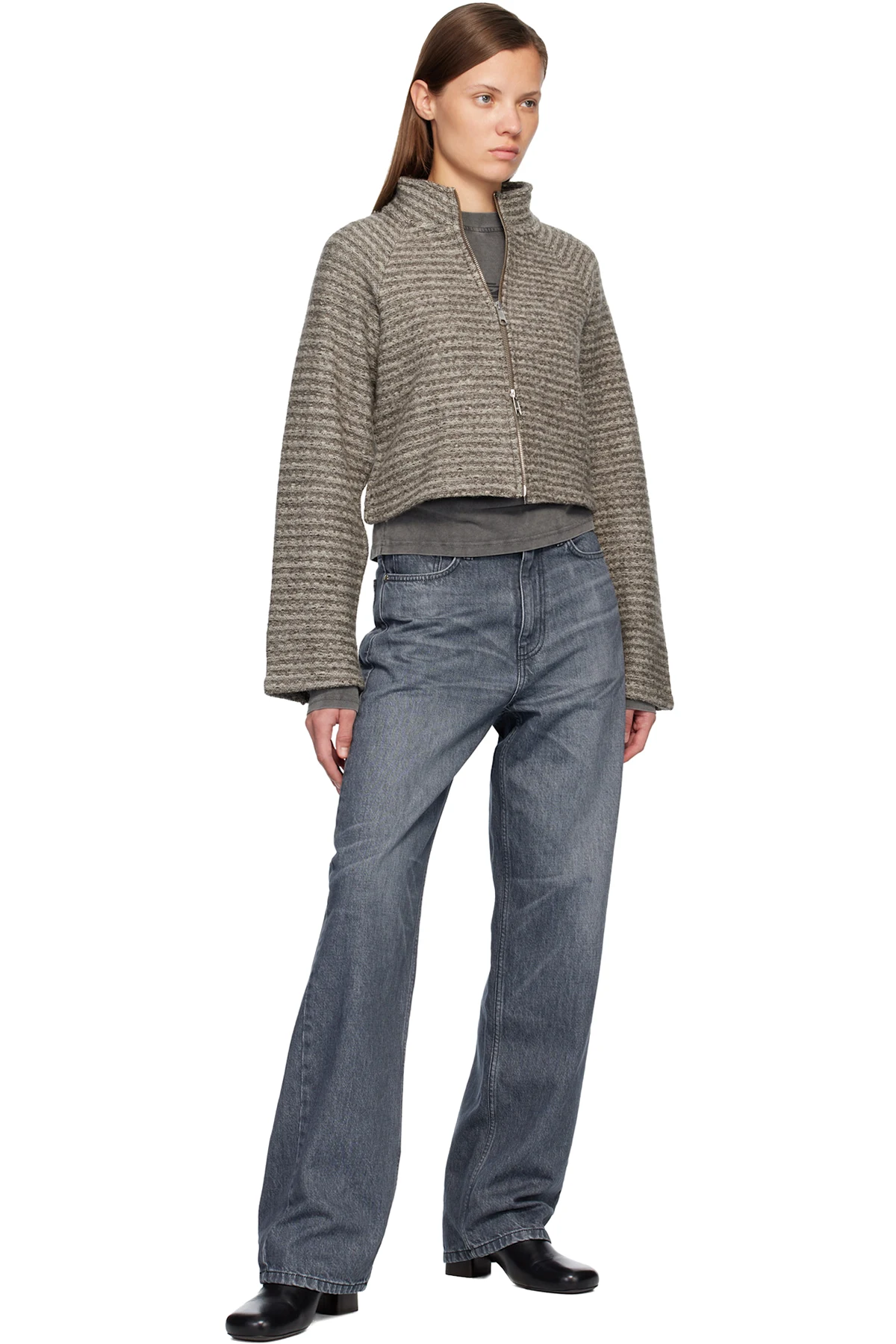 Brushed deadstock wool tweed jacket.