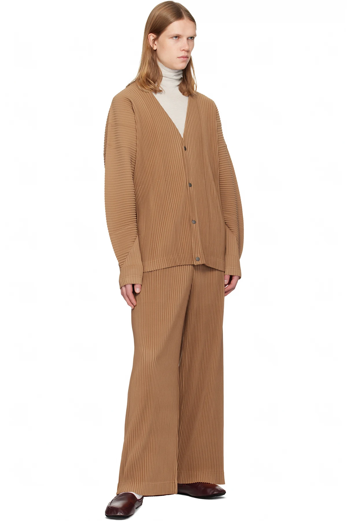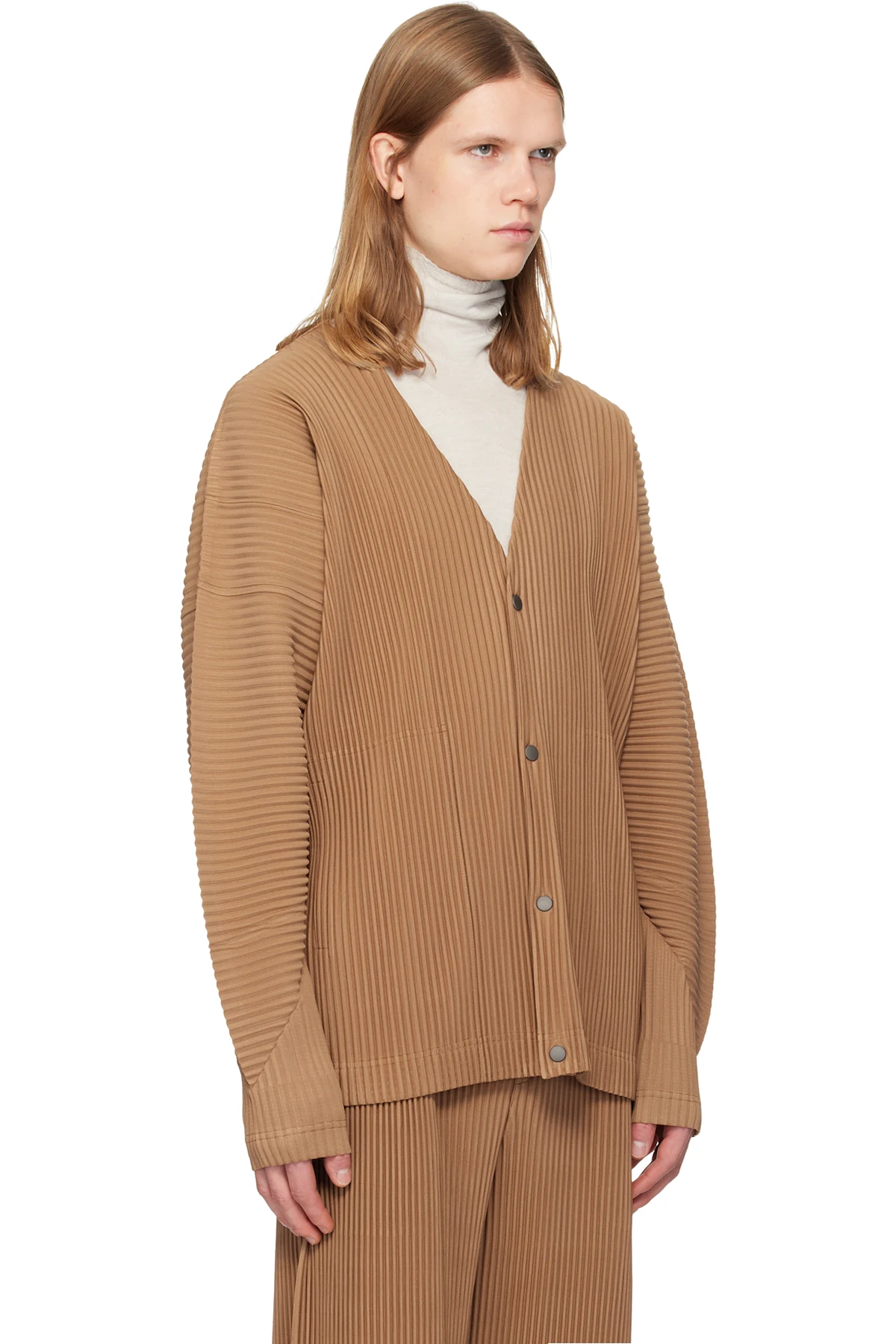 Garment-pleated tricot cardigan.