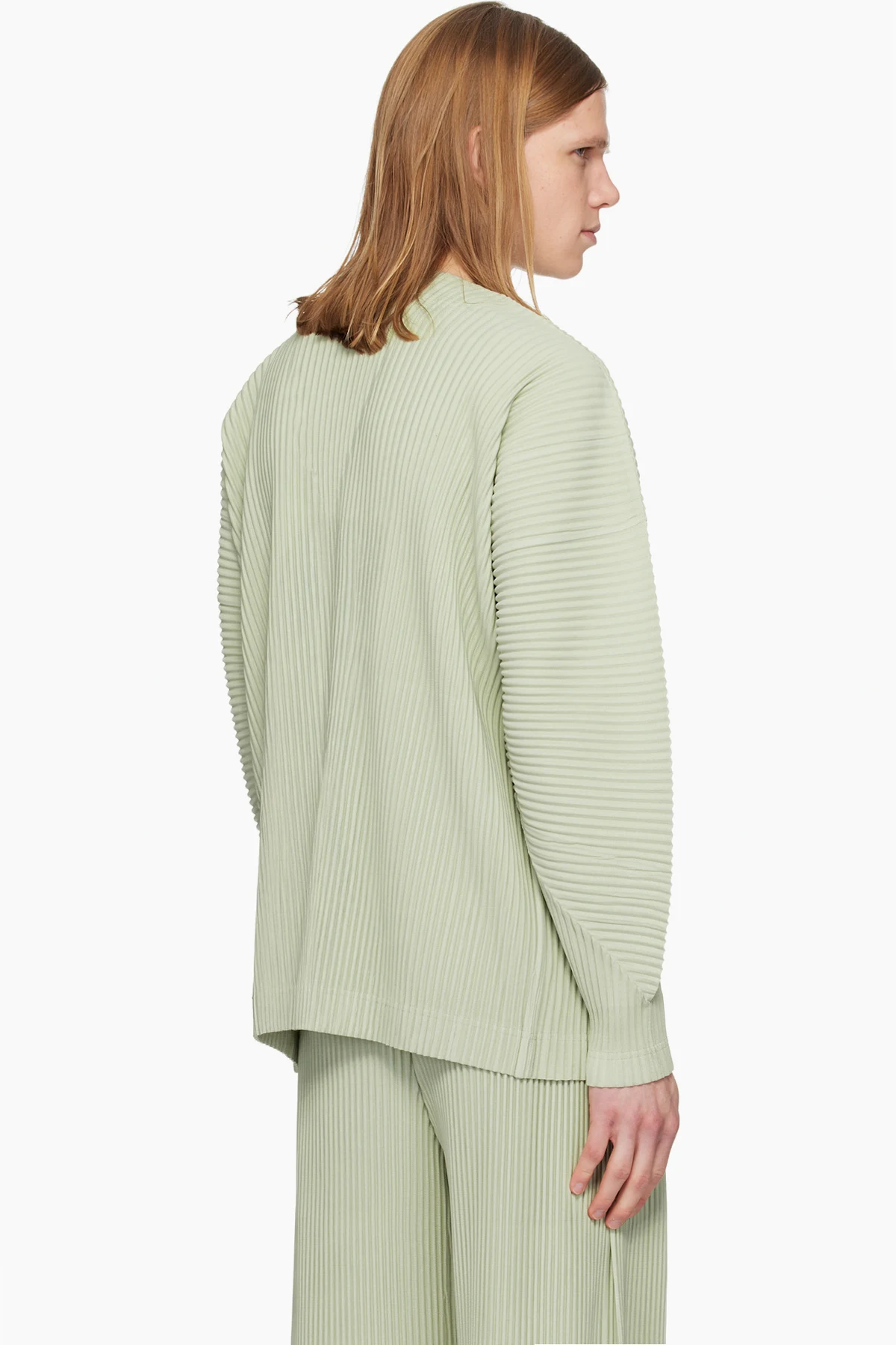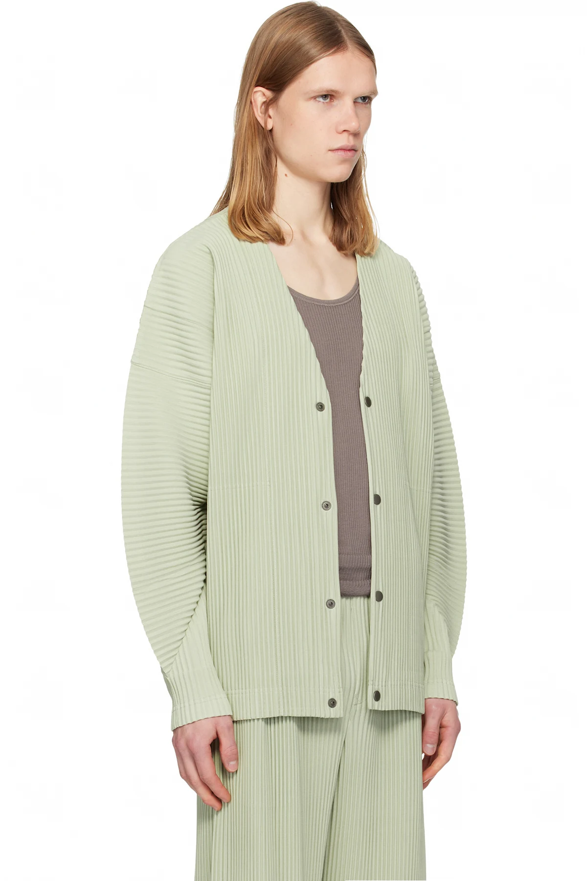Garment-pleated tricot cardigan.