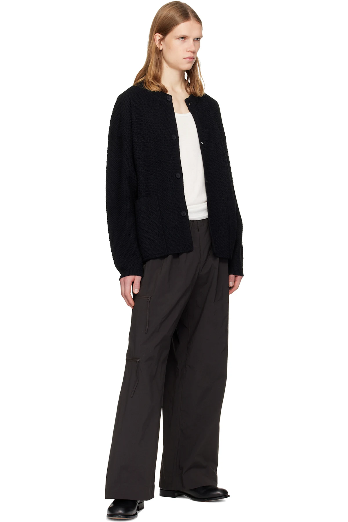Knit wool-blend cardigan.
