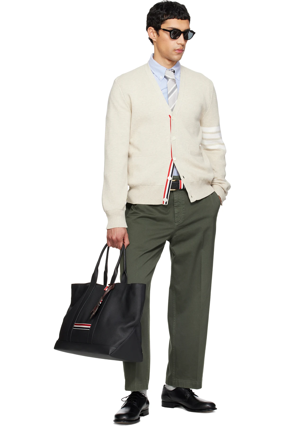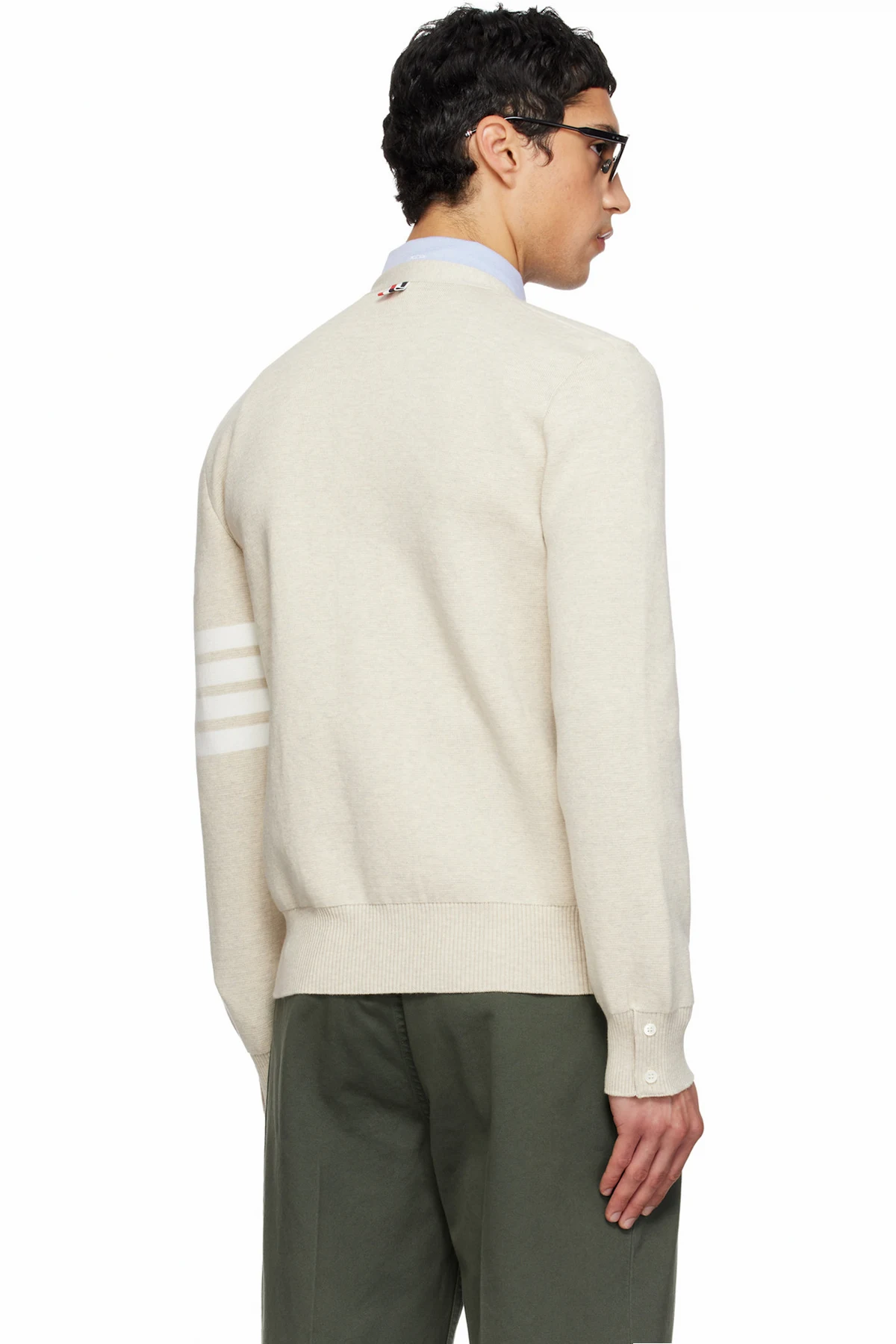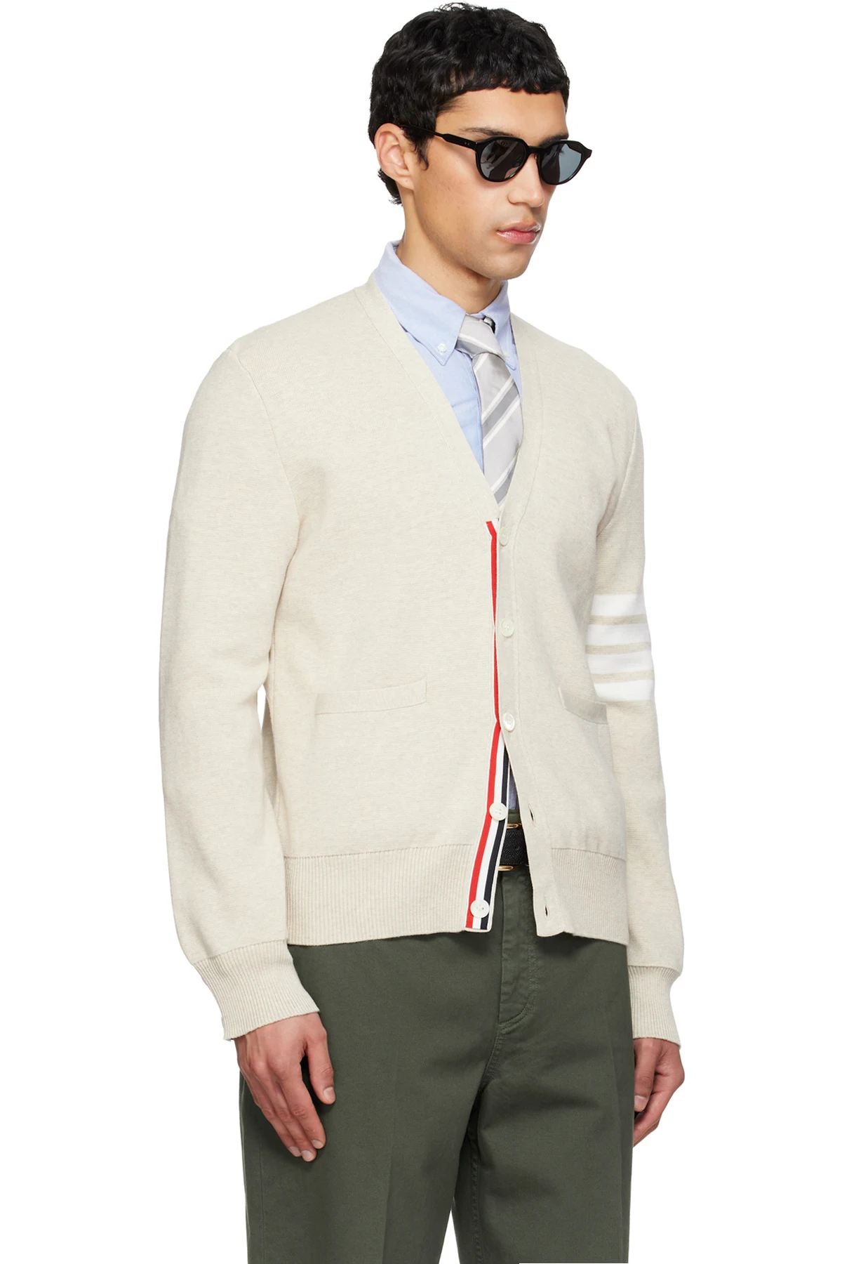 Beige Cotton Crepe 4-Bar Milano Stitch Cardigan