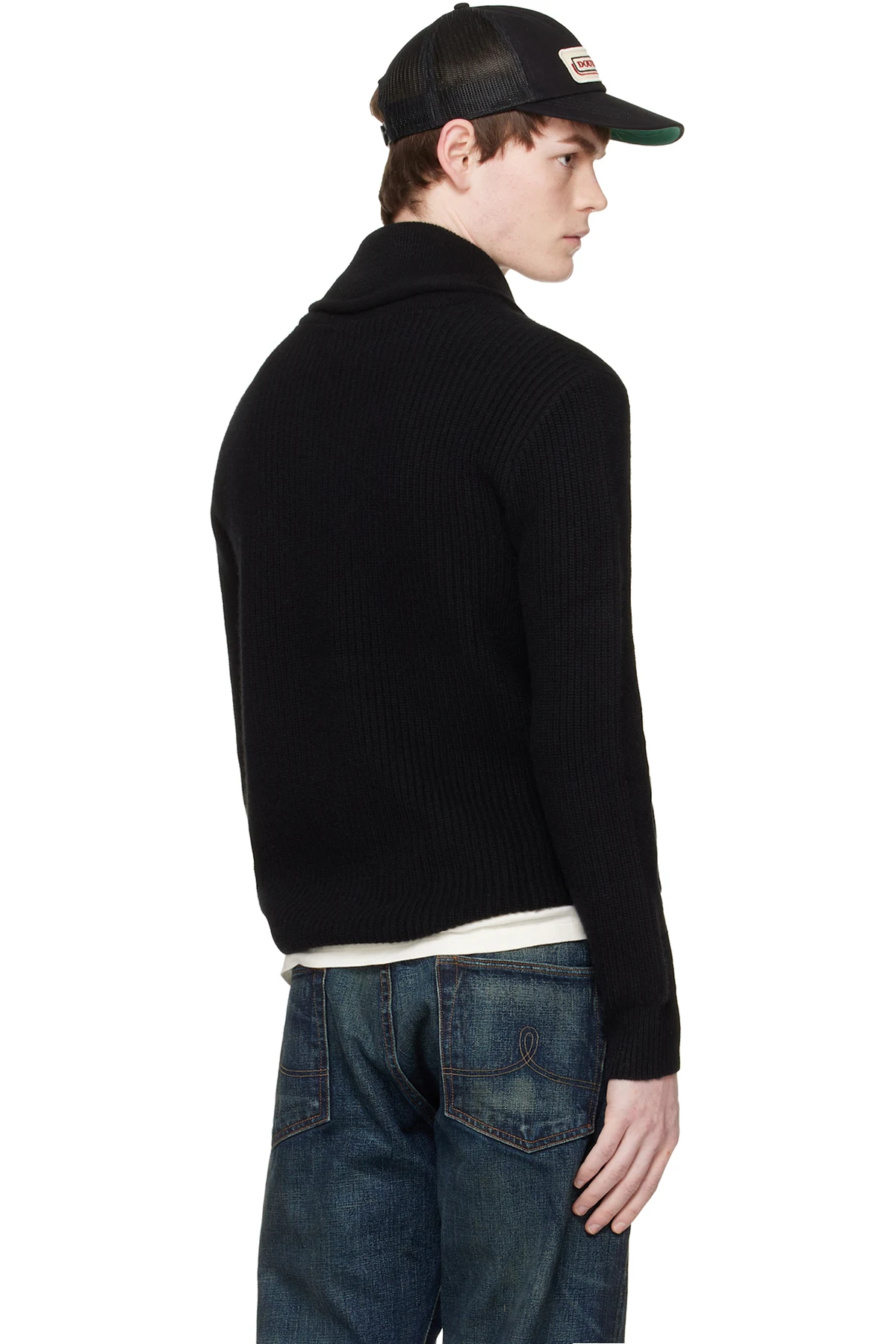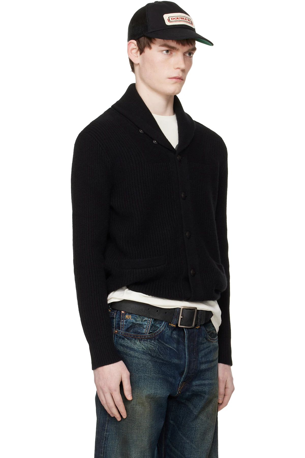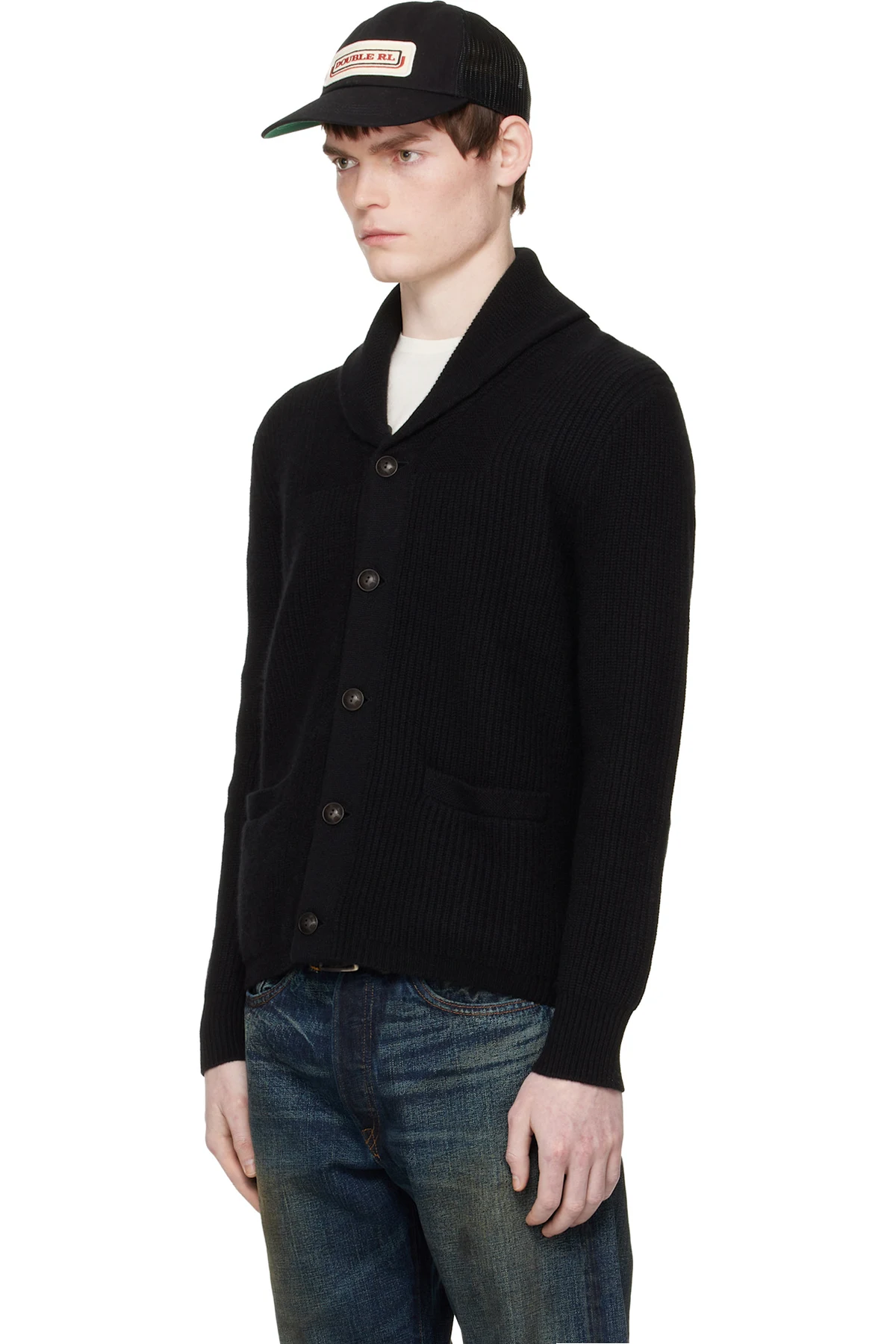 Rib-knit cashmere cardigan.