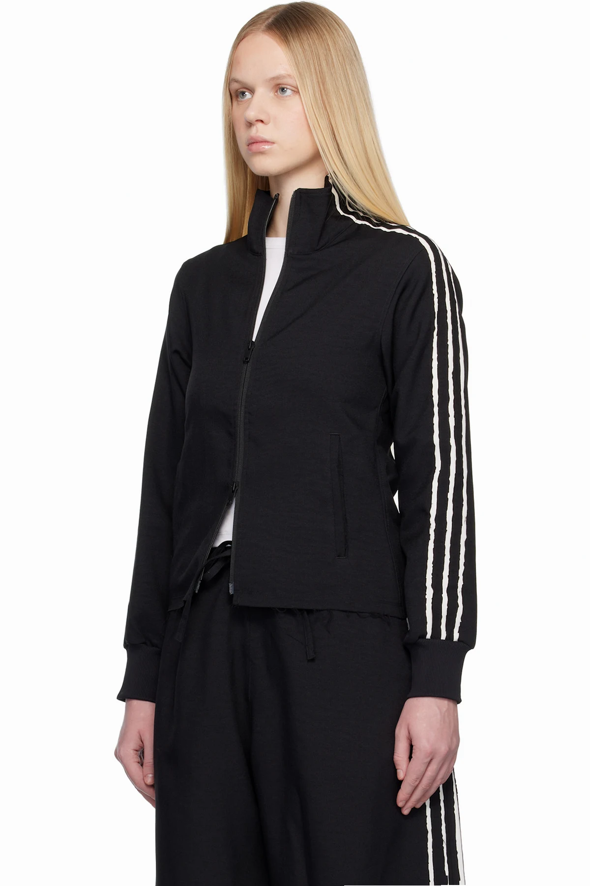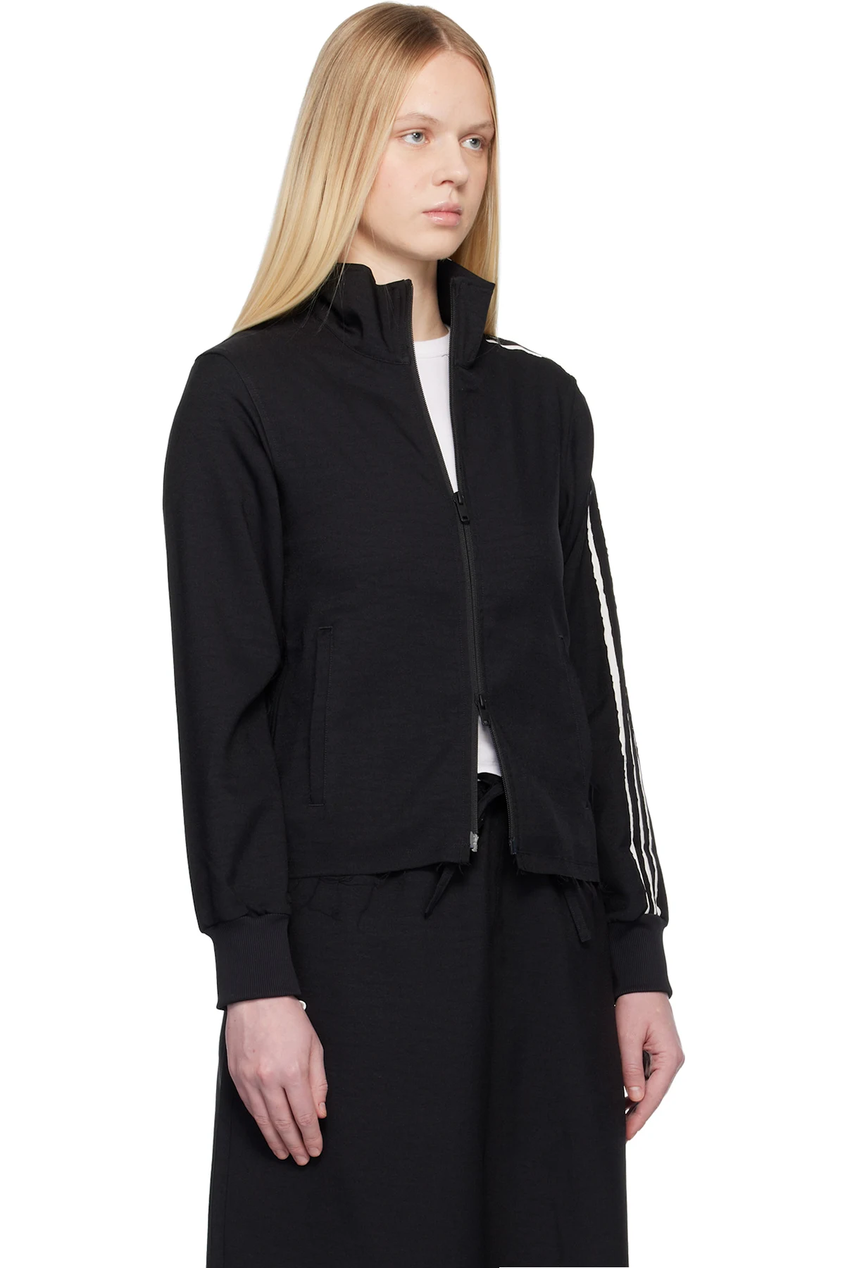Black Sport Uniform Raw Cut 3 Stripes Track Jacket