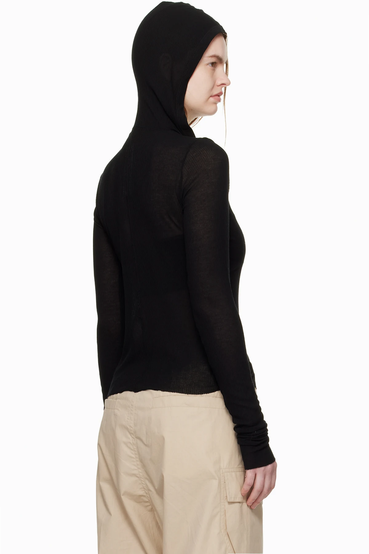 Lightweight and semi-sheer rib-knit viscose-blend hoodie.