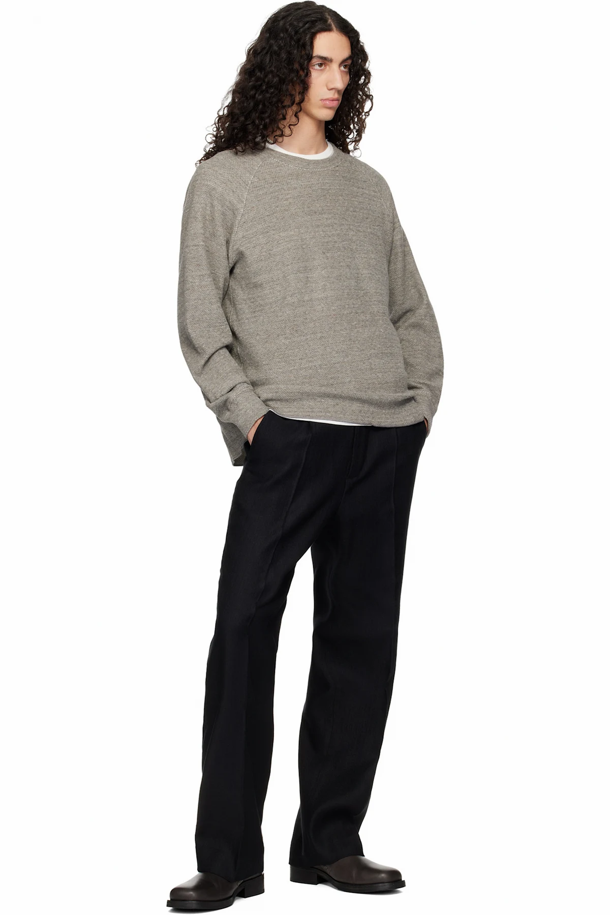 Honeycomb-stitch knit sweatshirt.