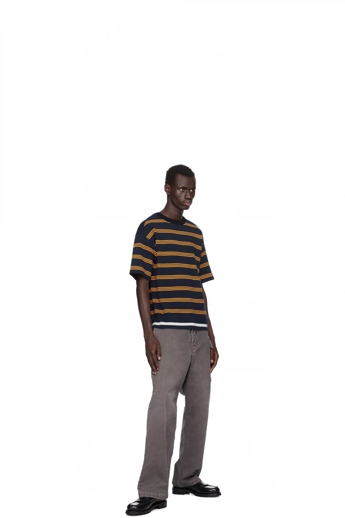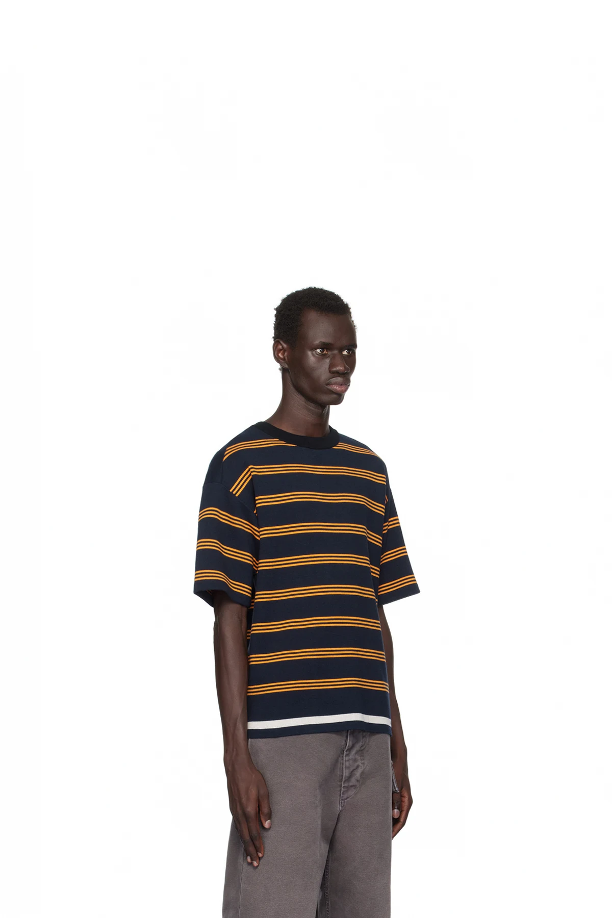 14-gauge knit cotton T-shirt. Intarsia stripes throughout.
