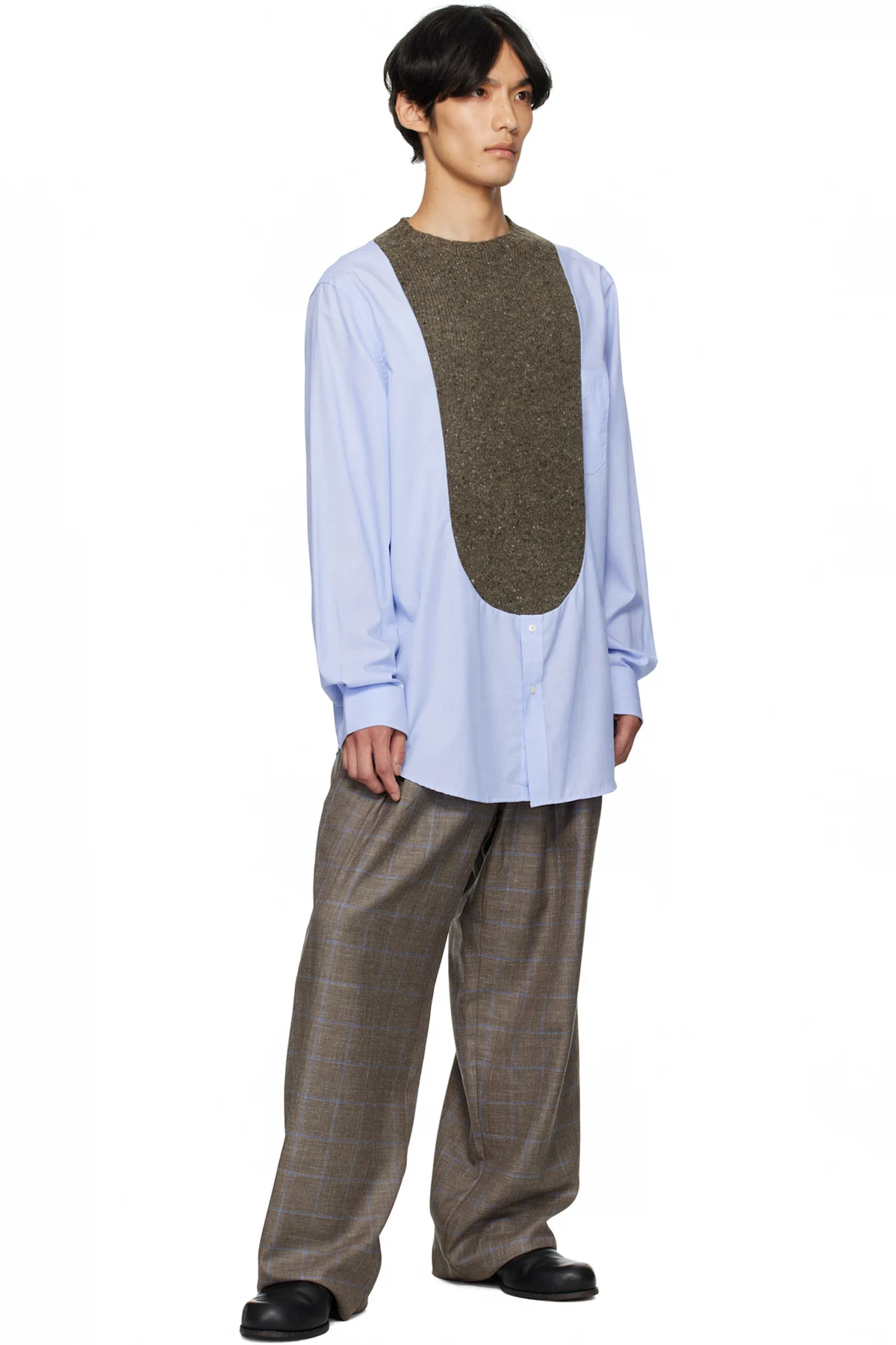 · Knit Shetland wool panel at front