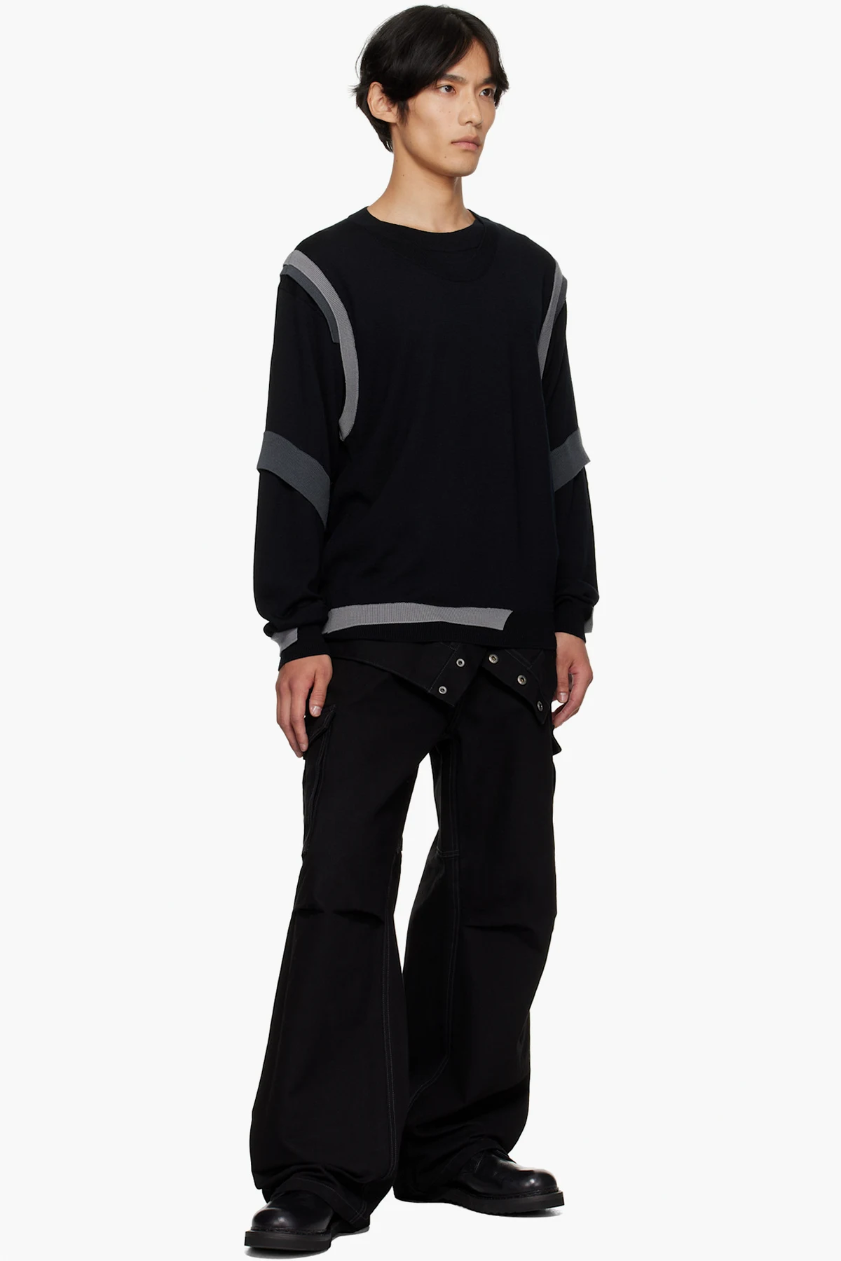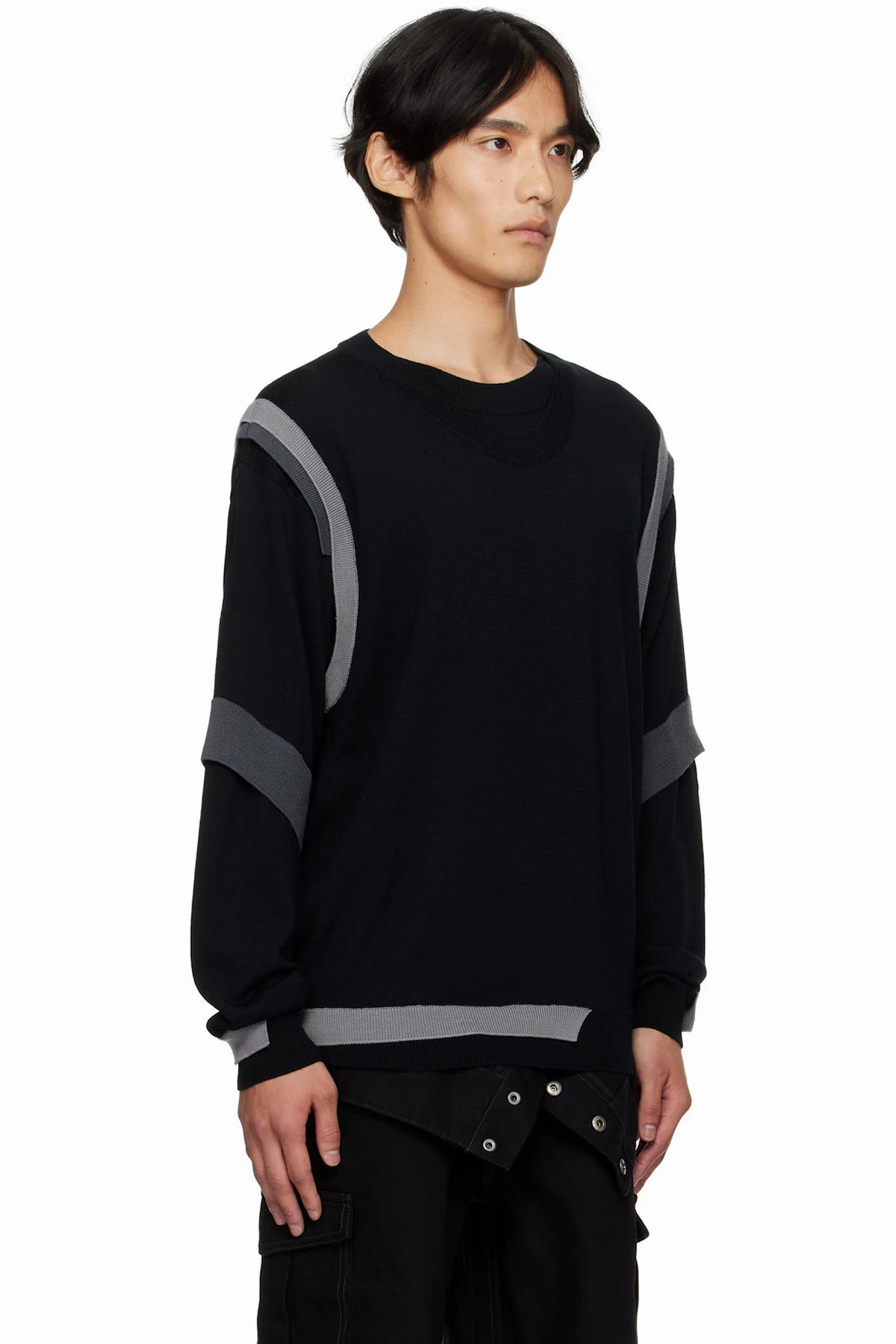 Black Layered Crewneck Sweater