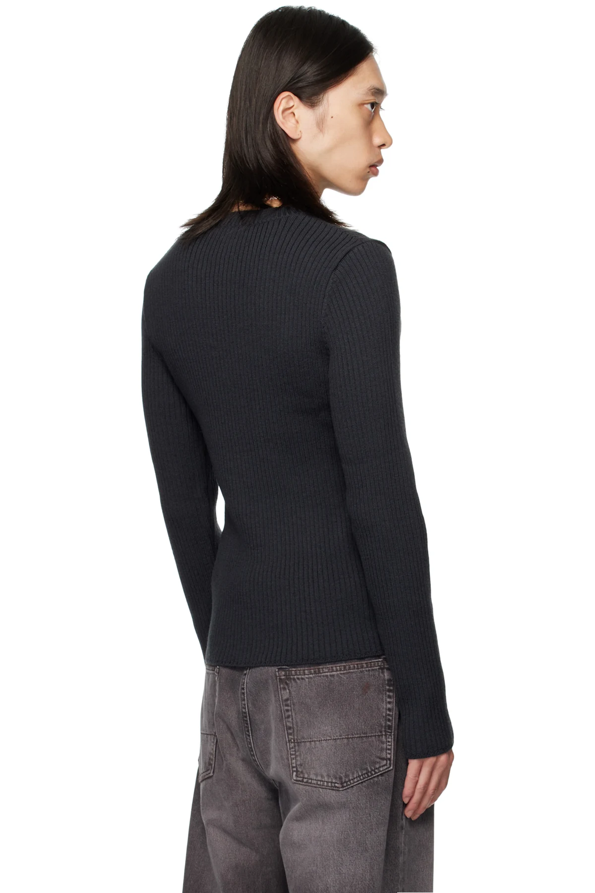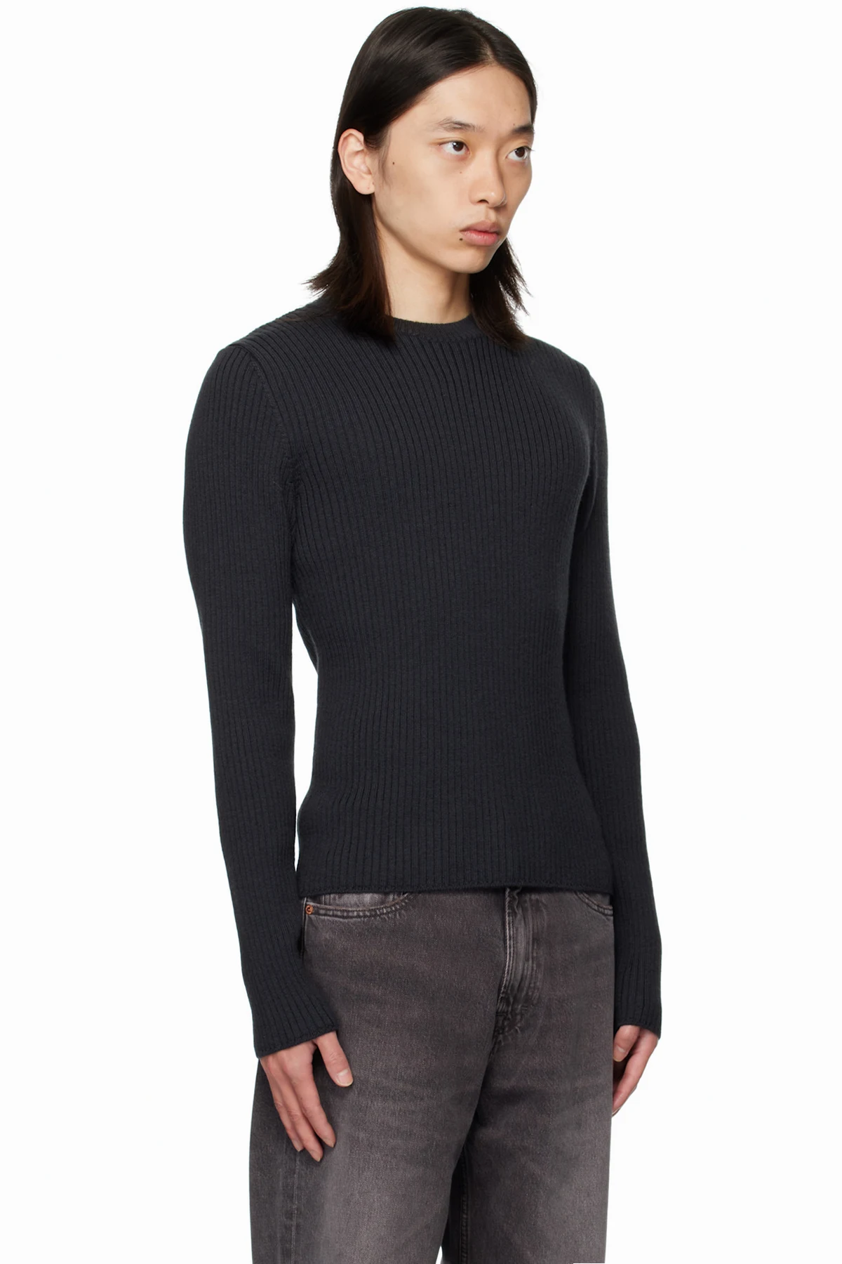 Rib-knit merino wool sweater.