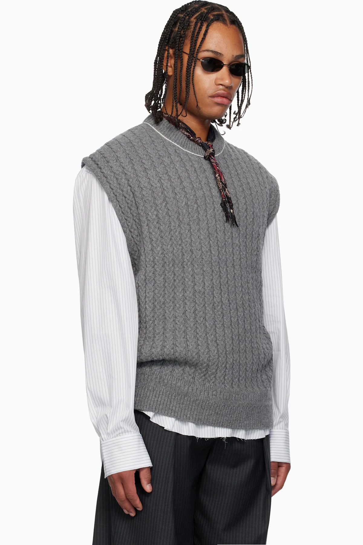 Cable-knit superfine wool- and cashmere-blend sweater vest.