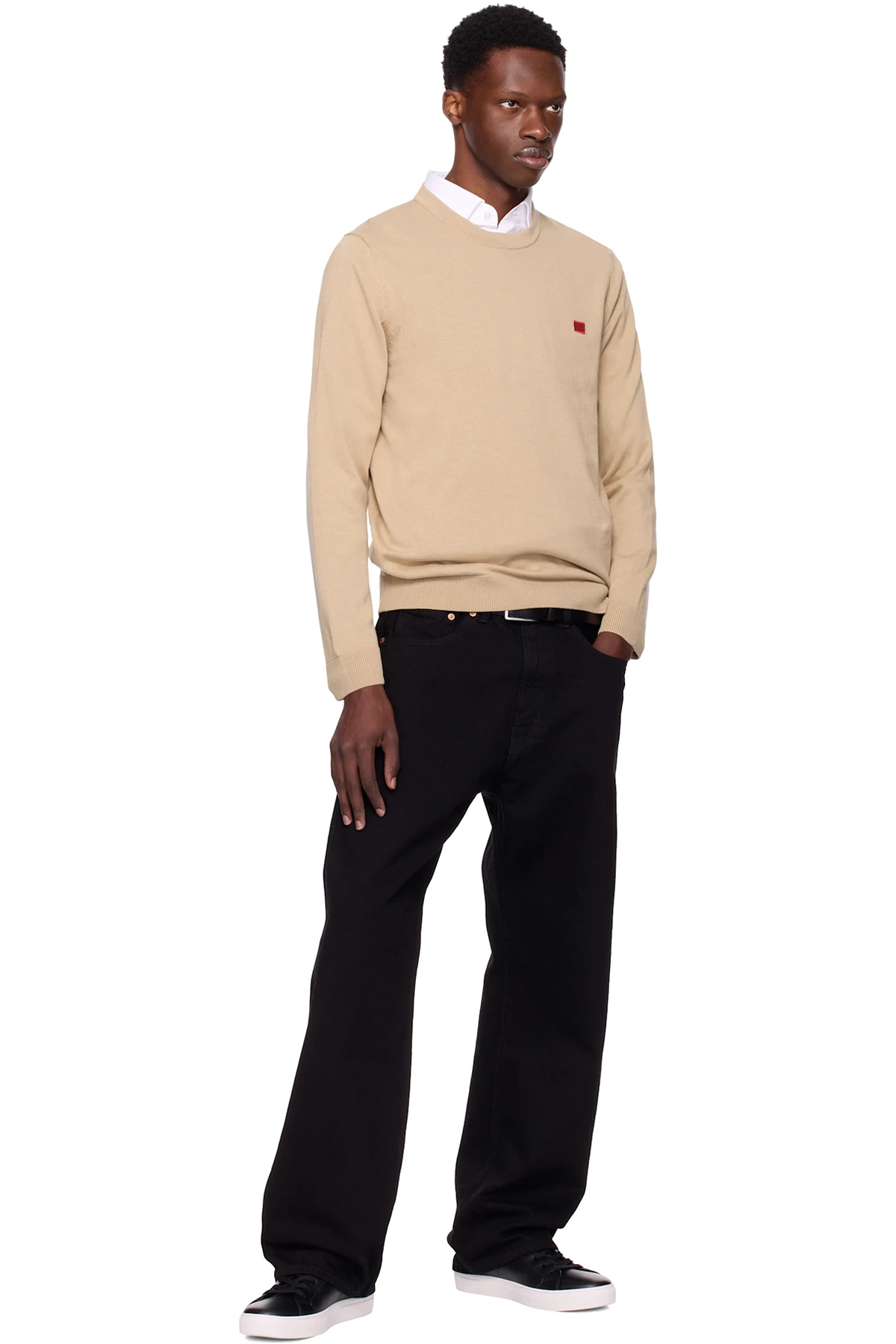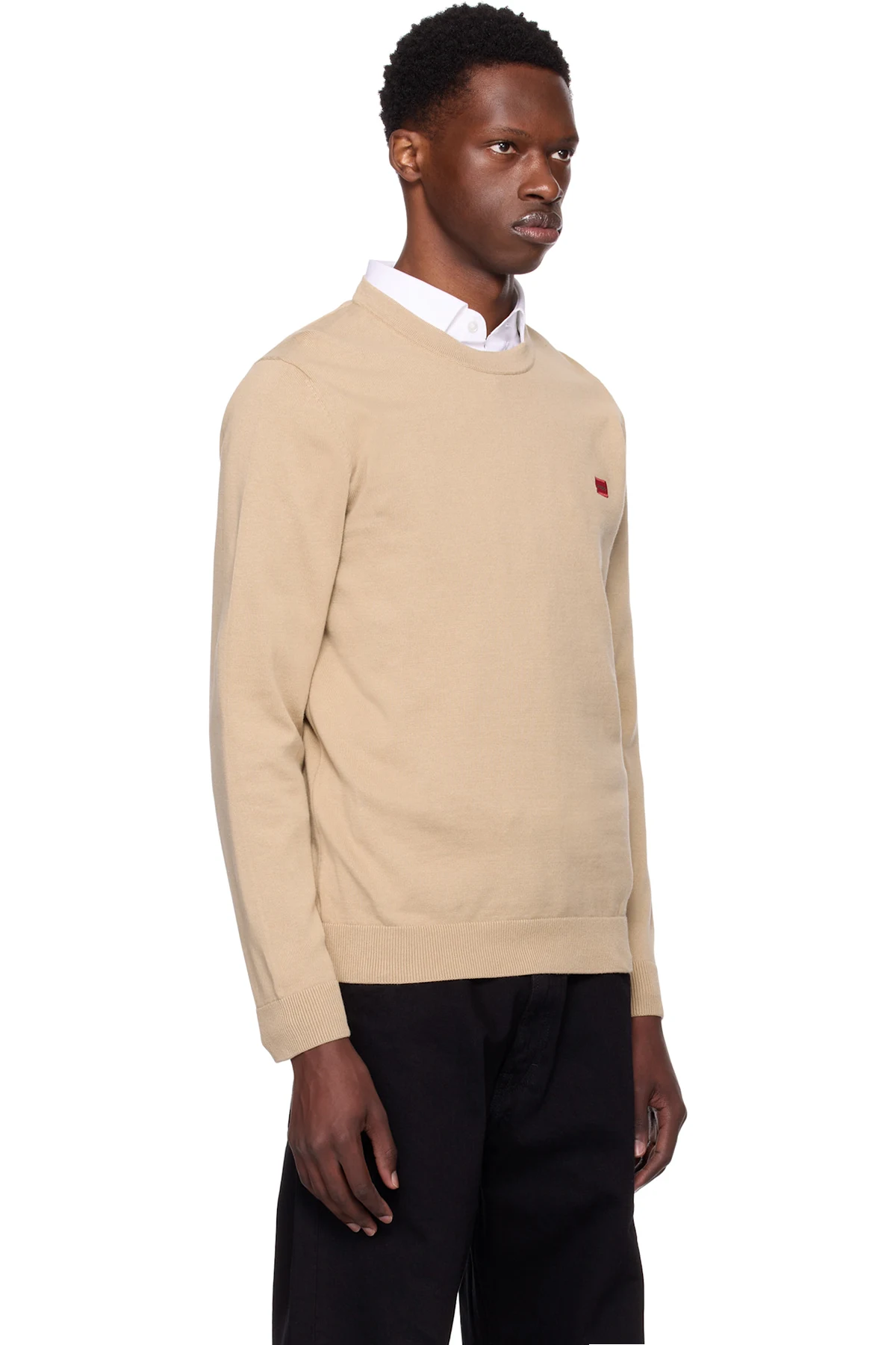 Beige Knitted Cotton Red Logo Label Sweater