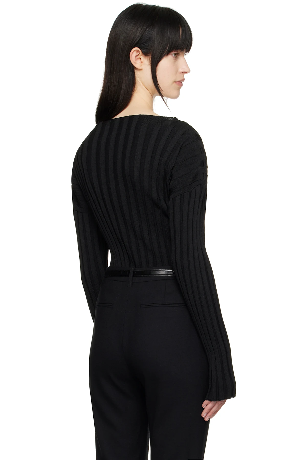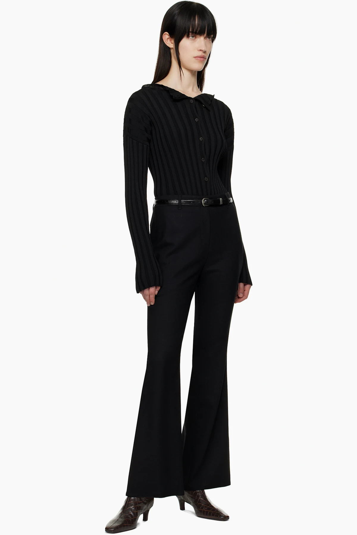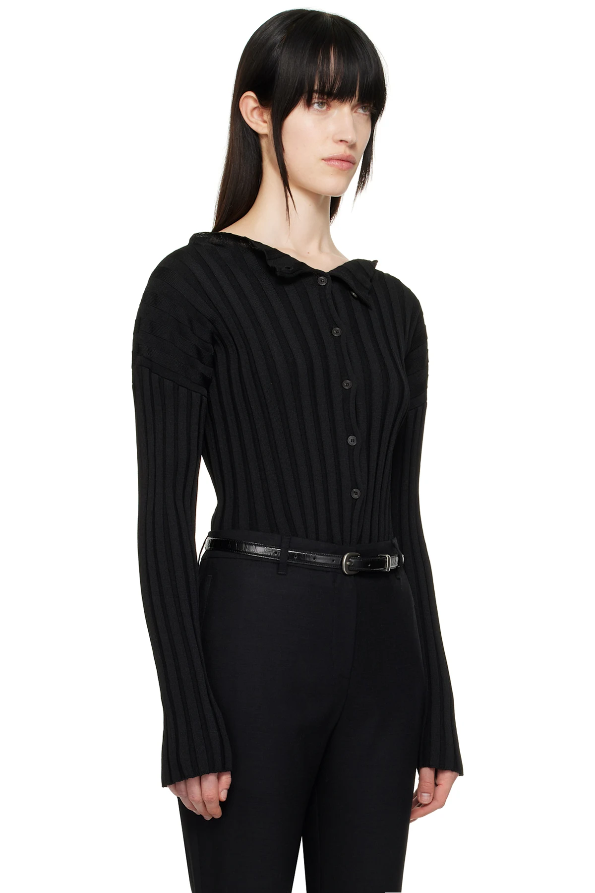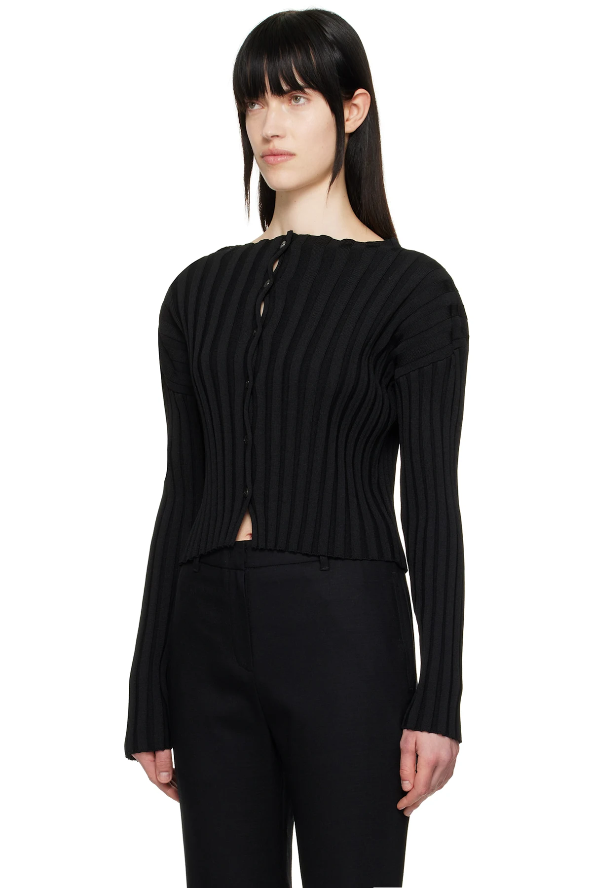 Black Ribbed Collarless Cardigan
