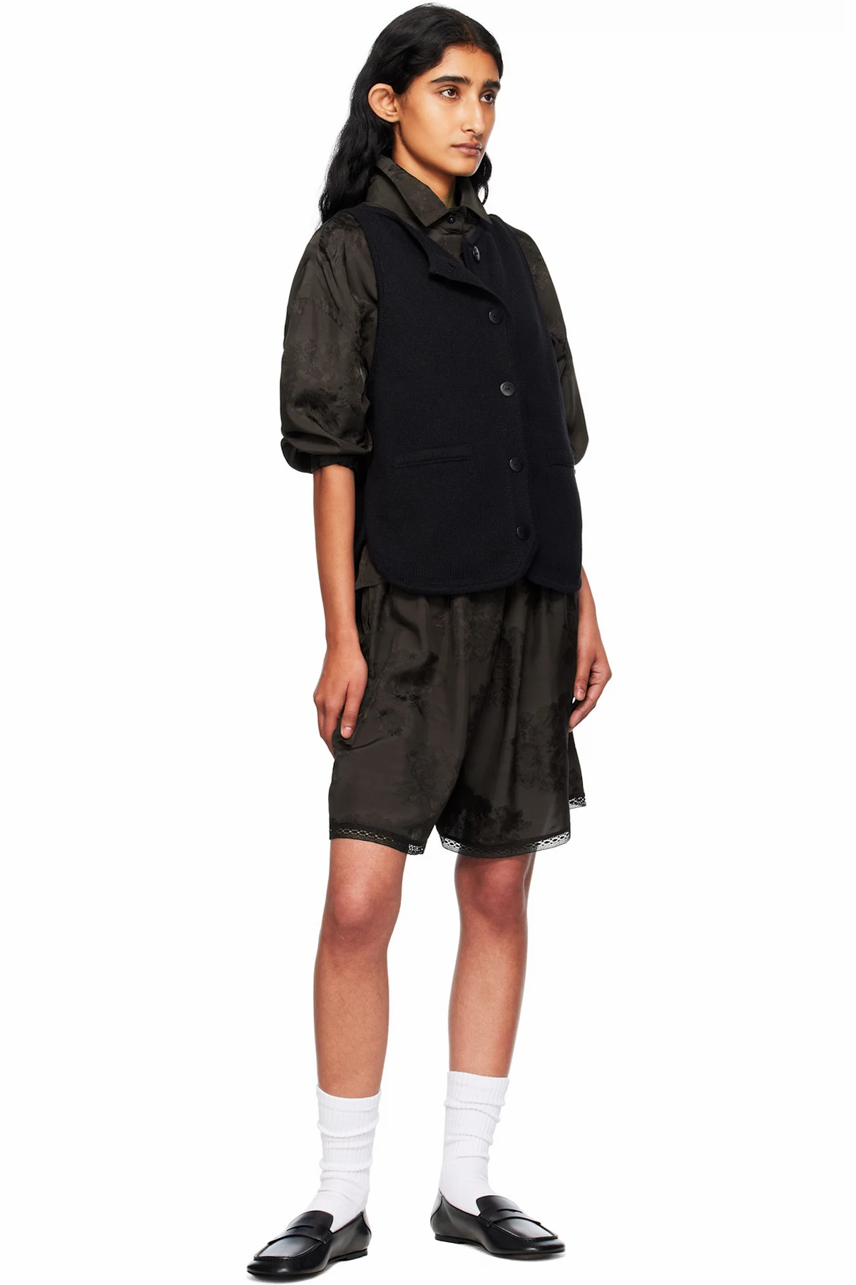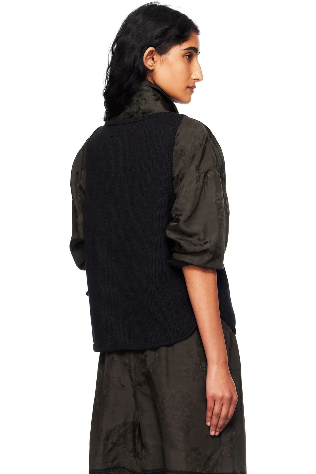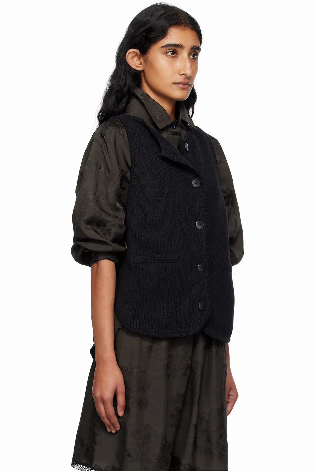 Black Boat-Neck Waistcoat Cardigan