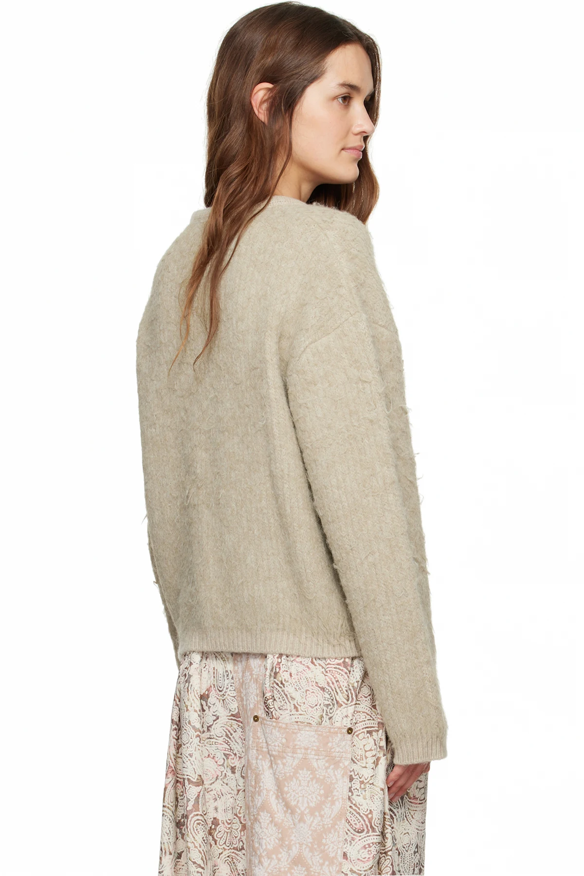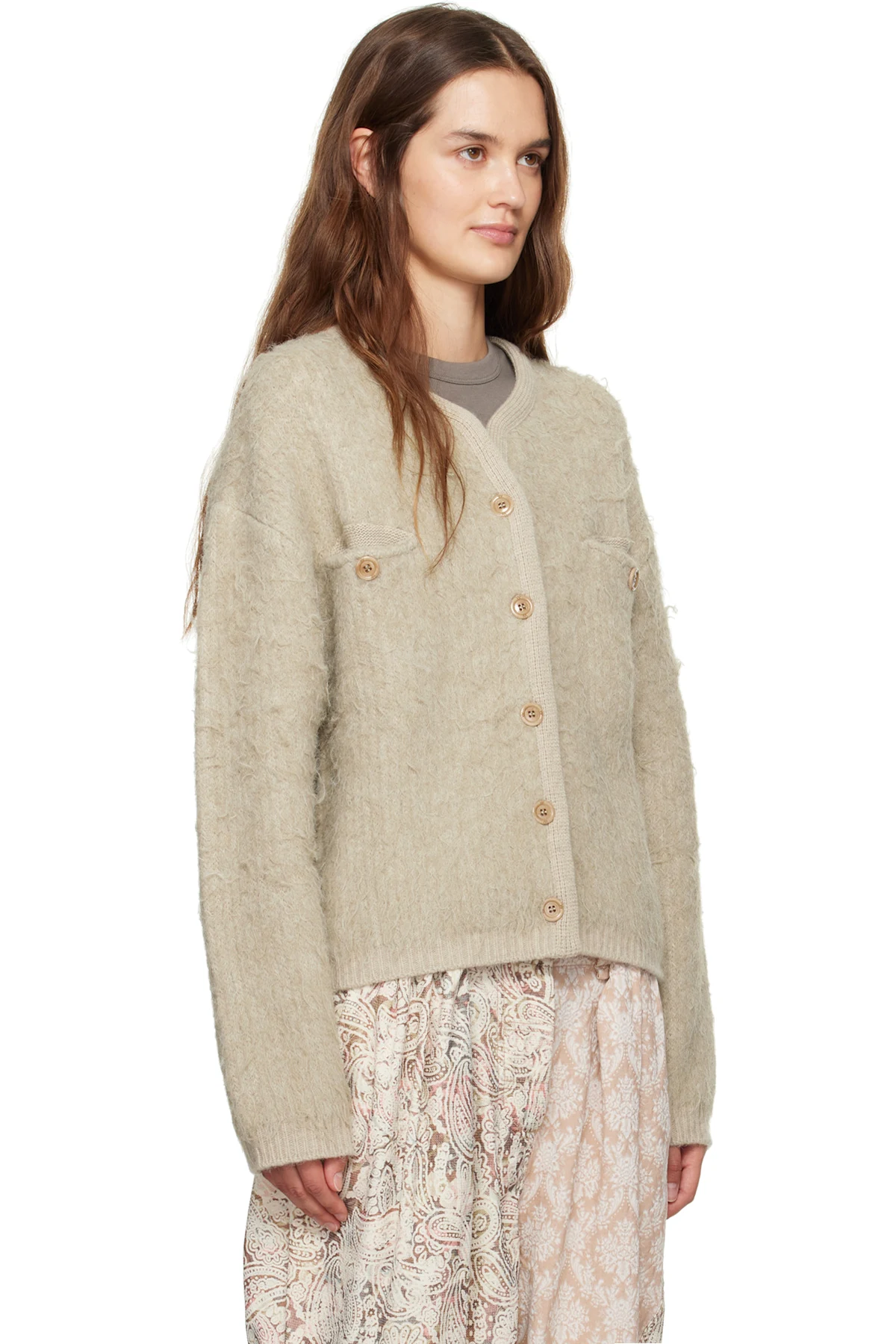 Shag-knit stretch cardigan.