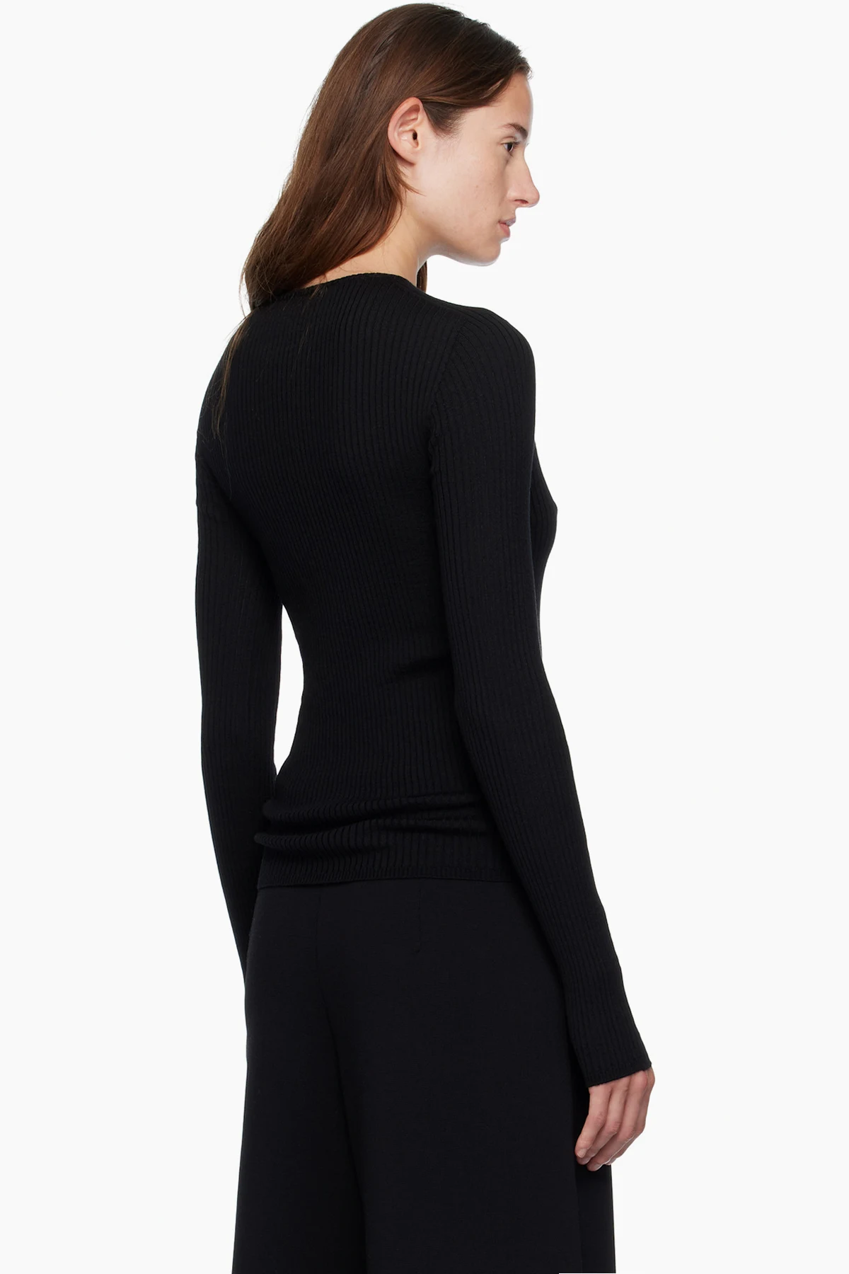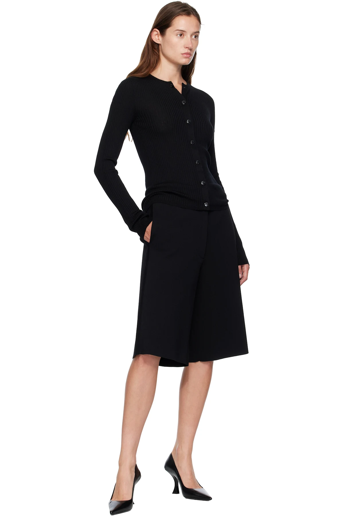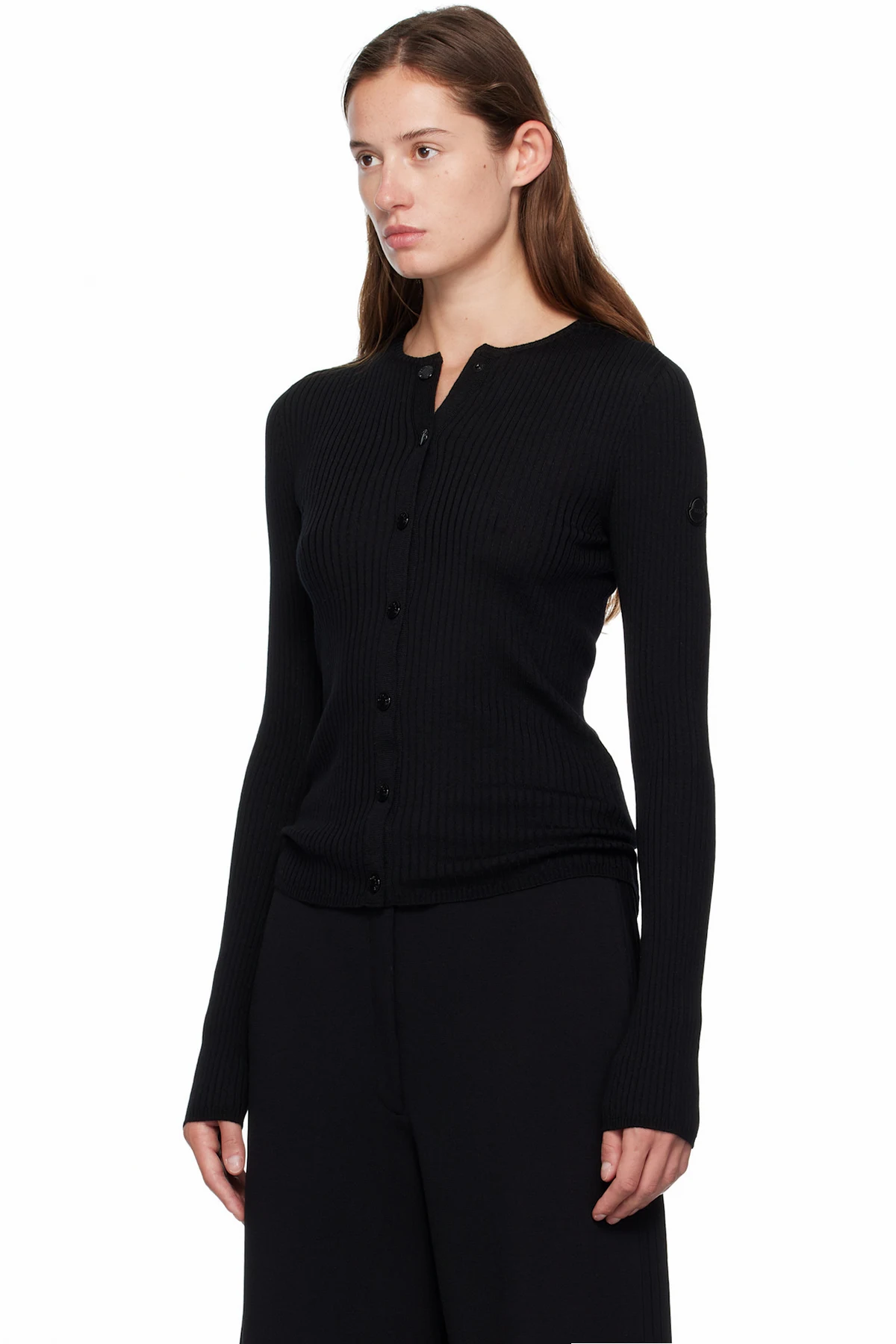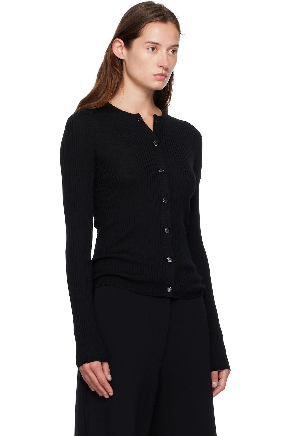 Rib-knit virgin wool cardigan.