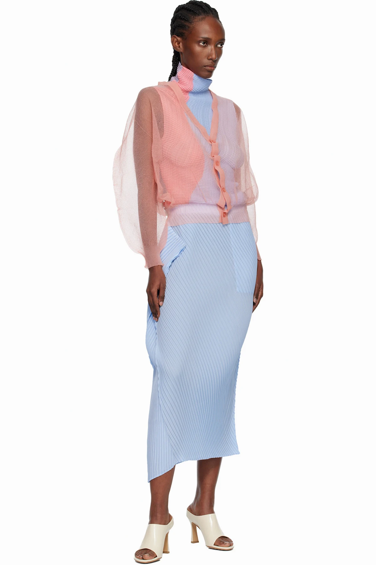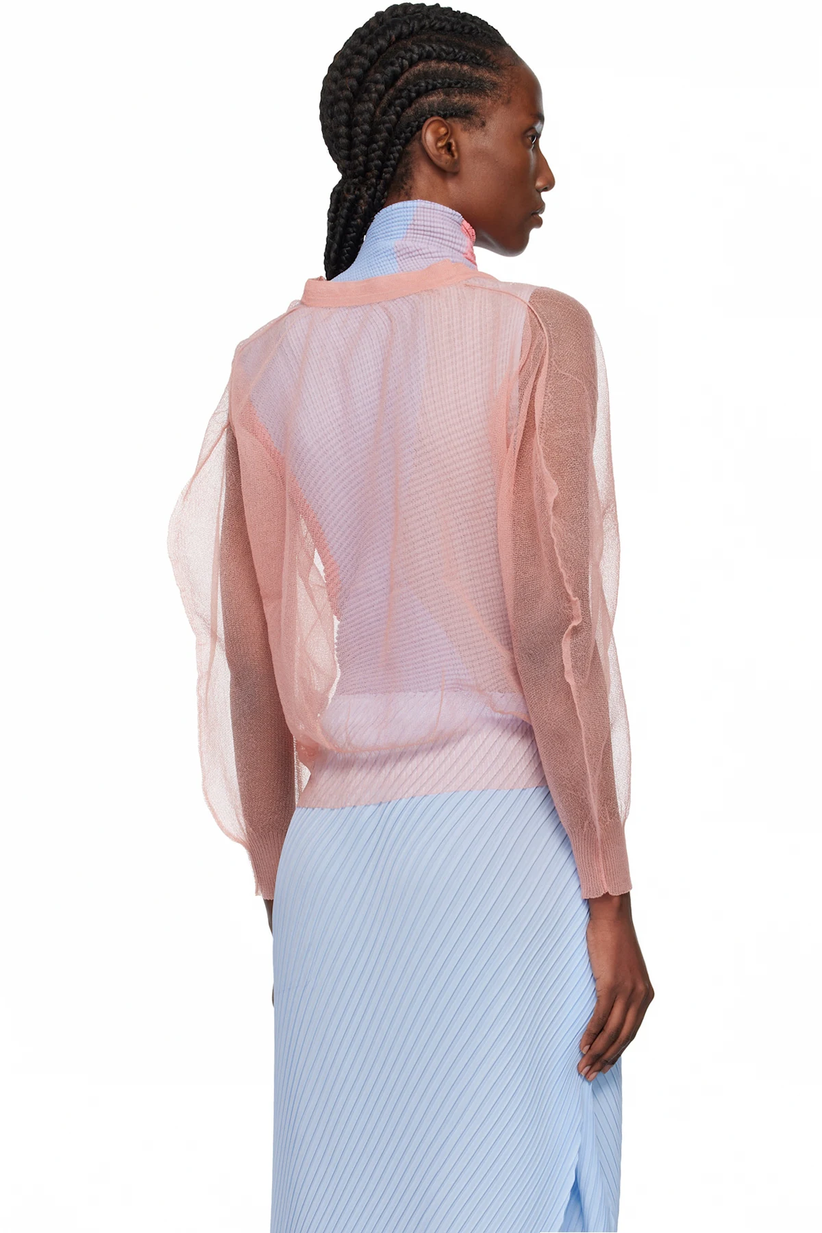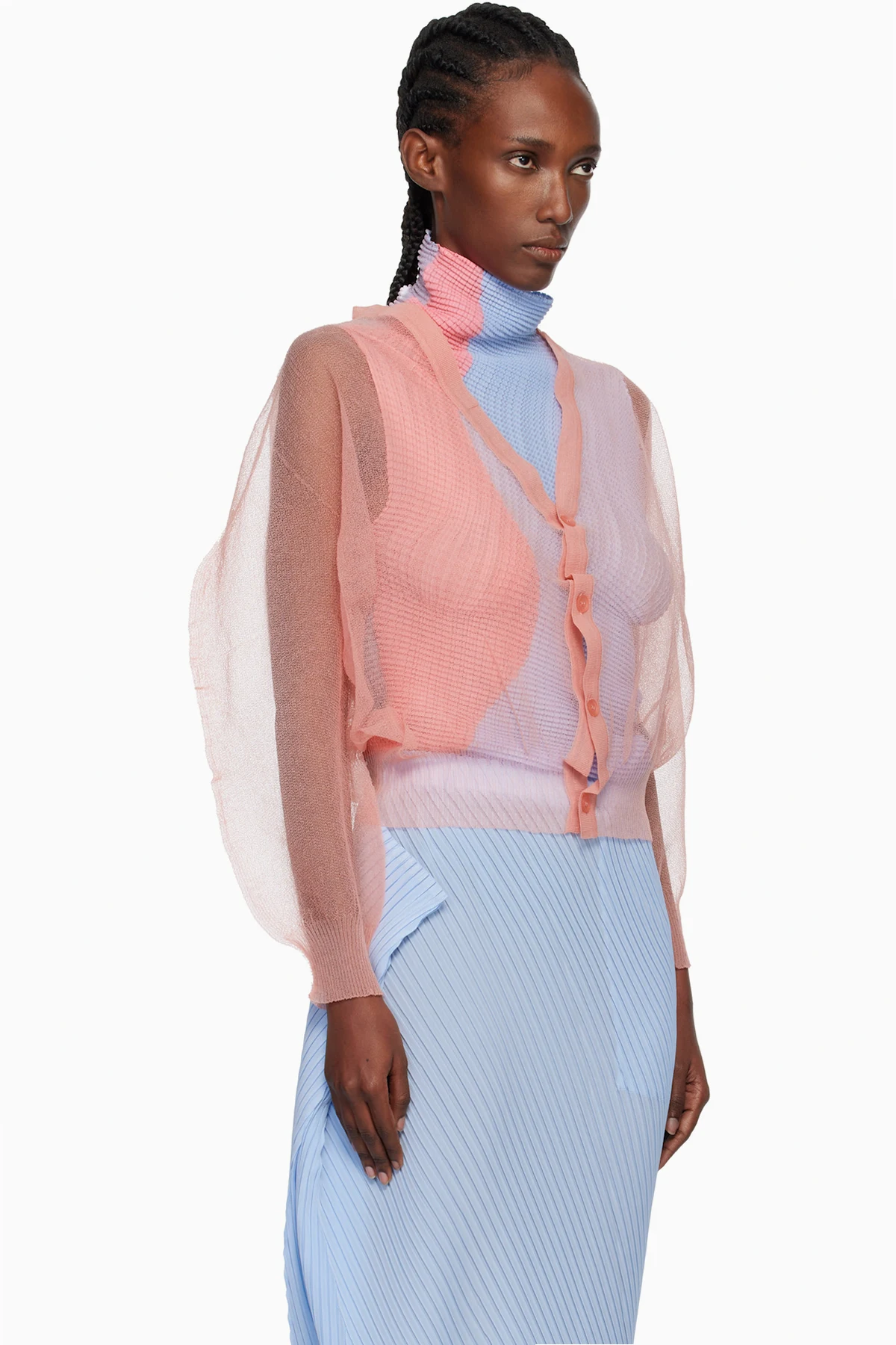 Sheer knit nylon cardigan.