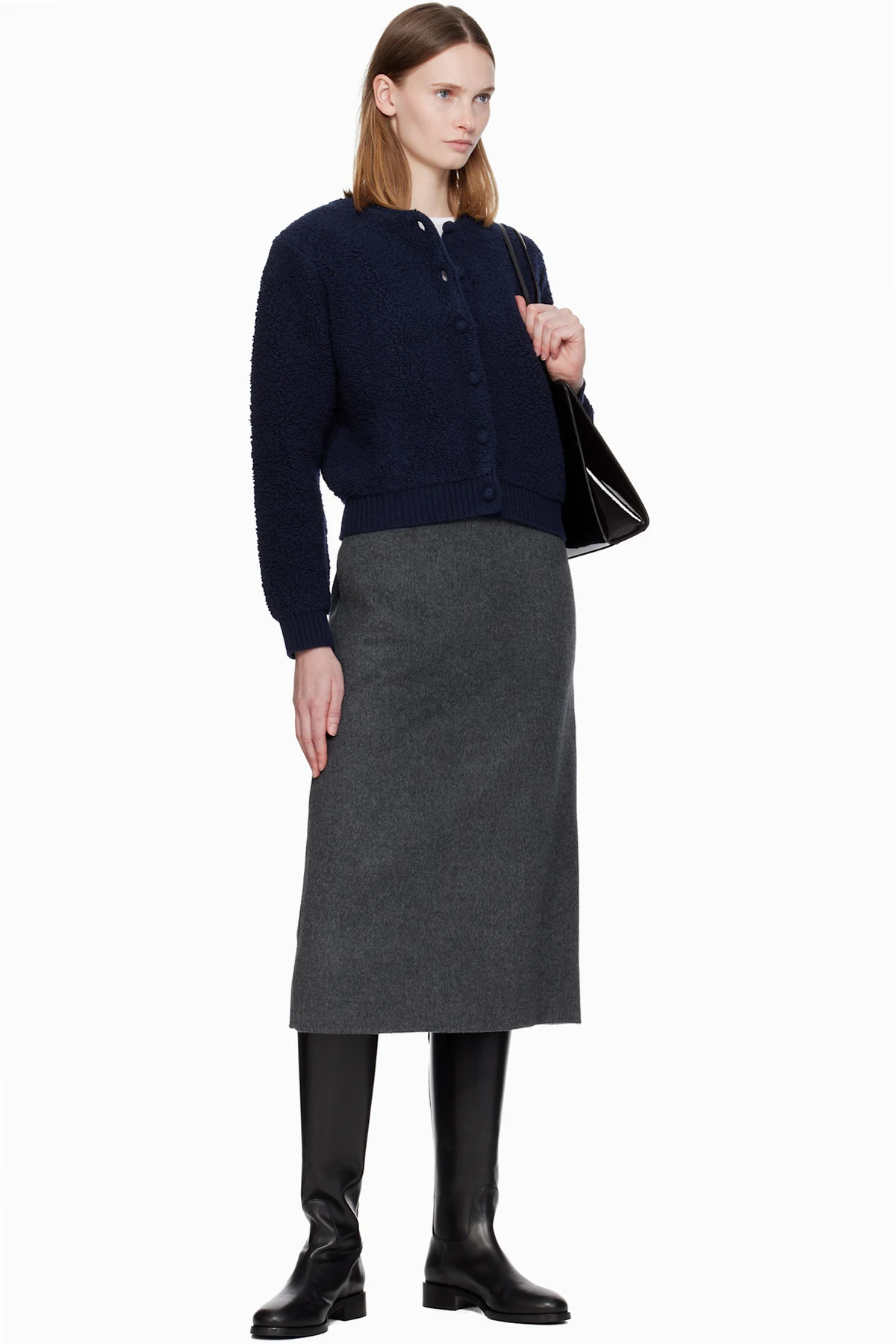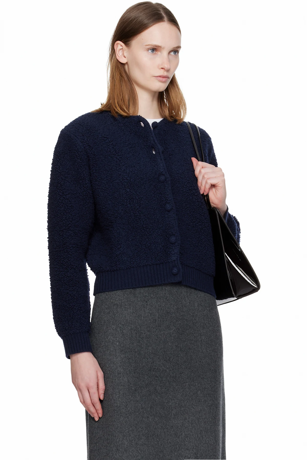 Navy Lett Boucle Cardigan