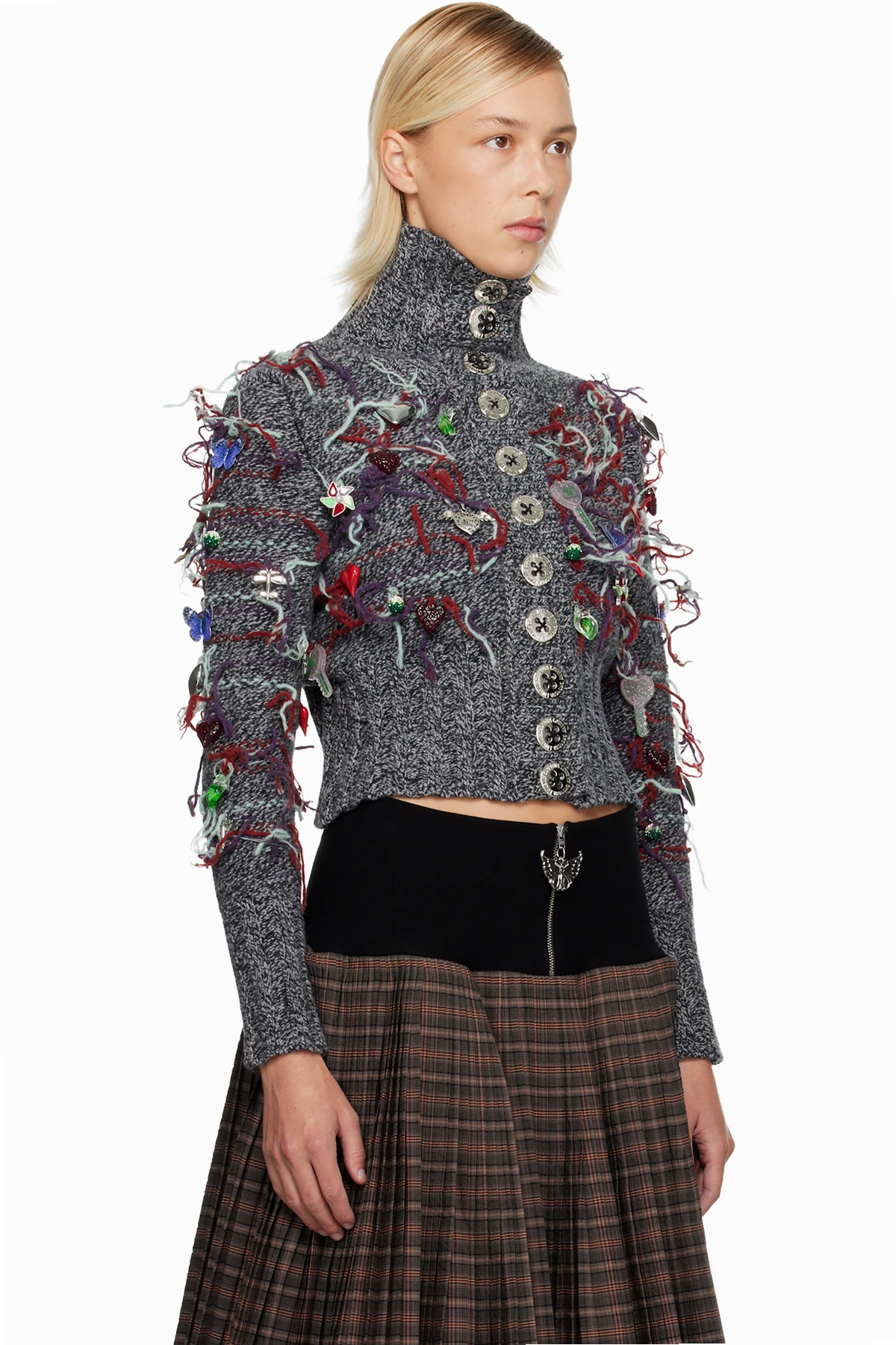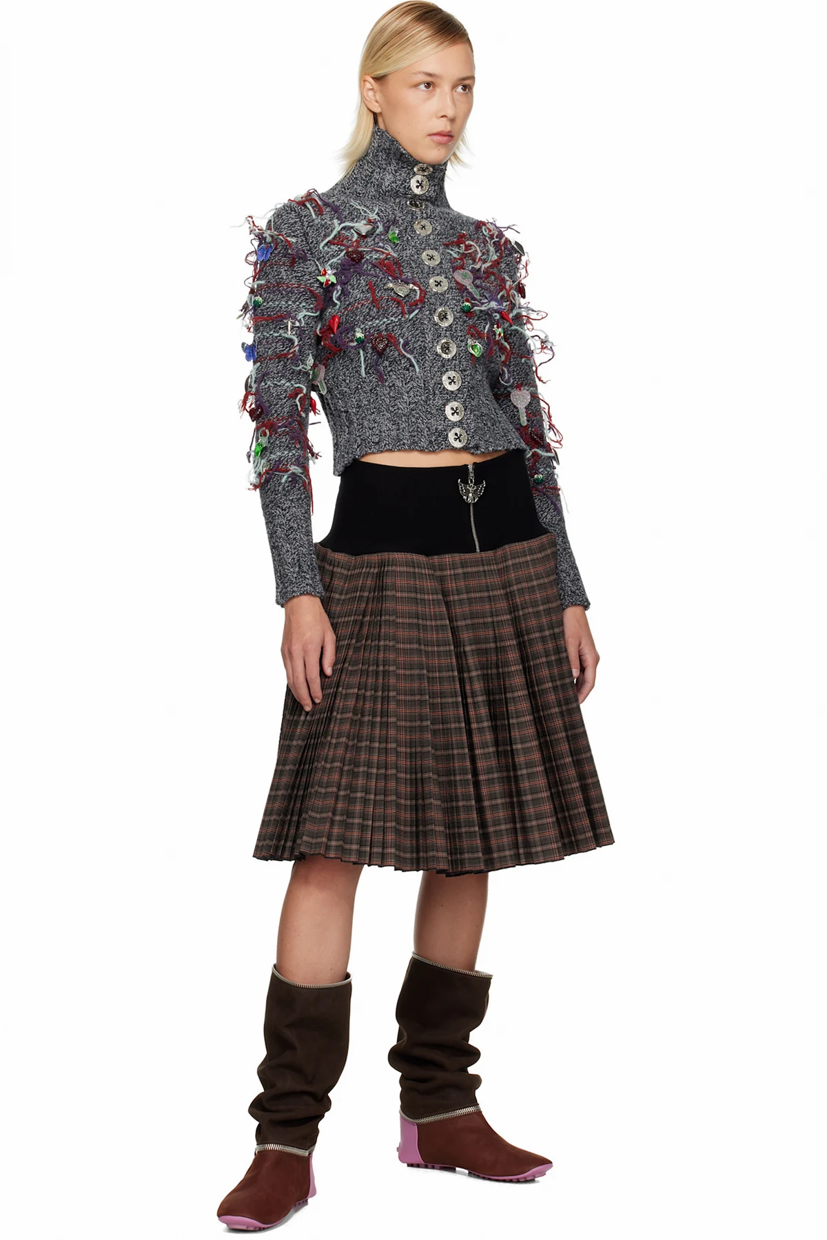 high-neck zip-through sweater