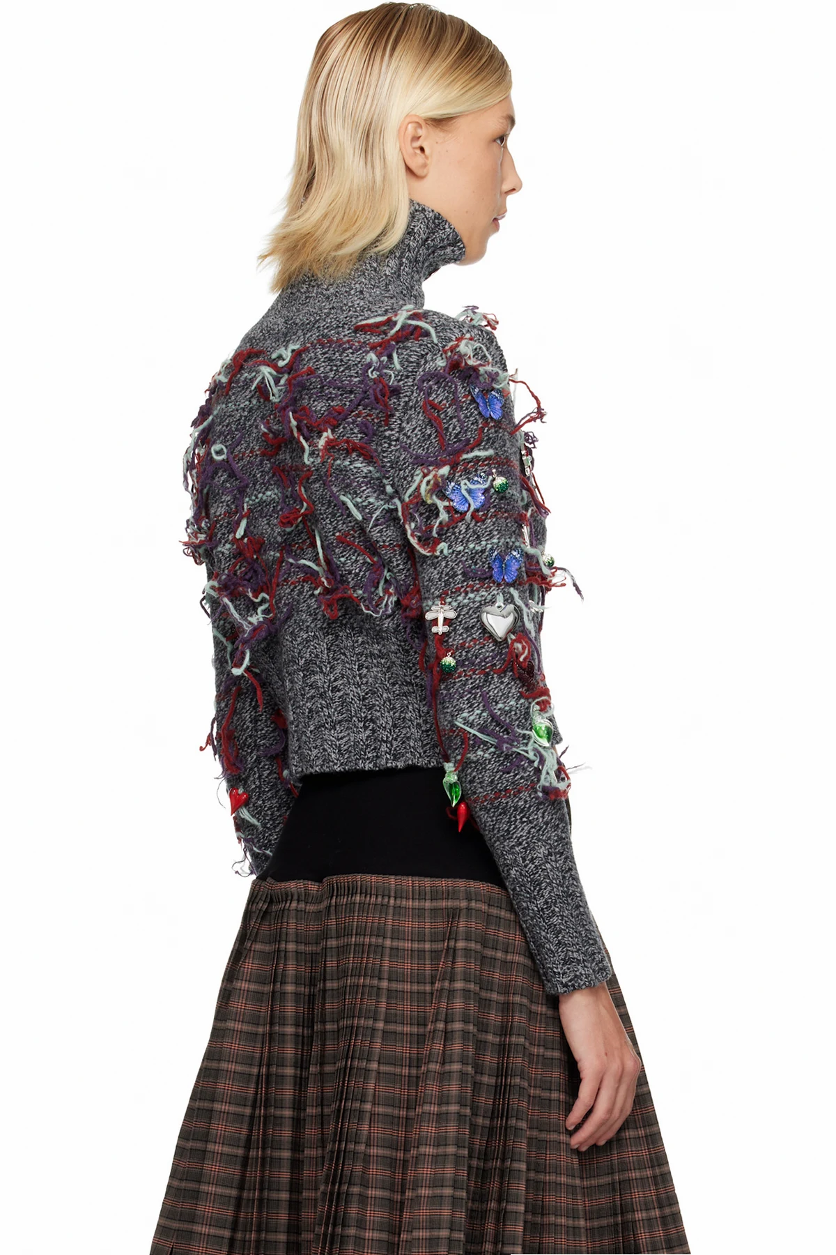 · Stripes with loose threads and charms throughout