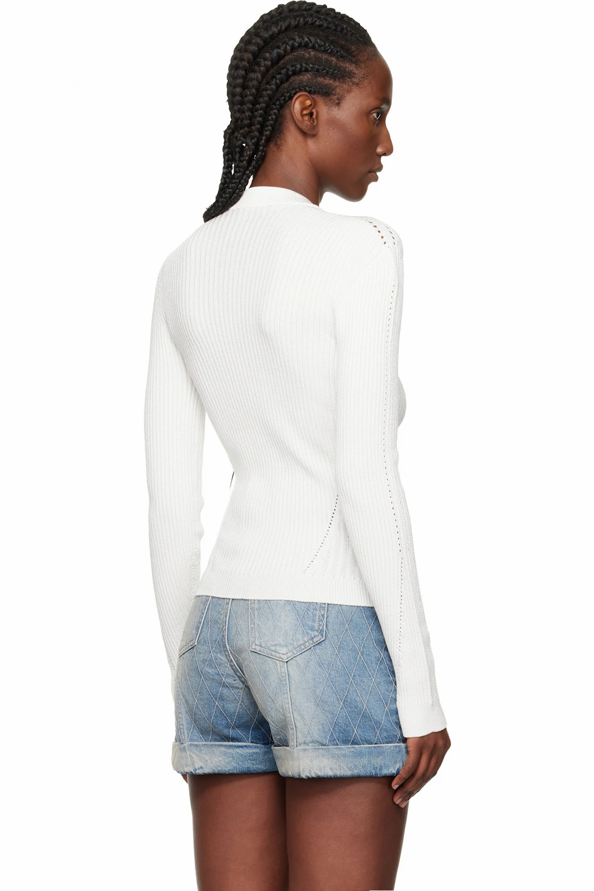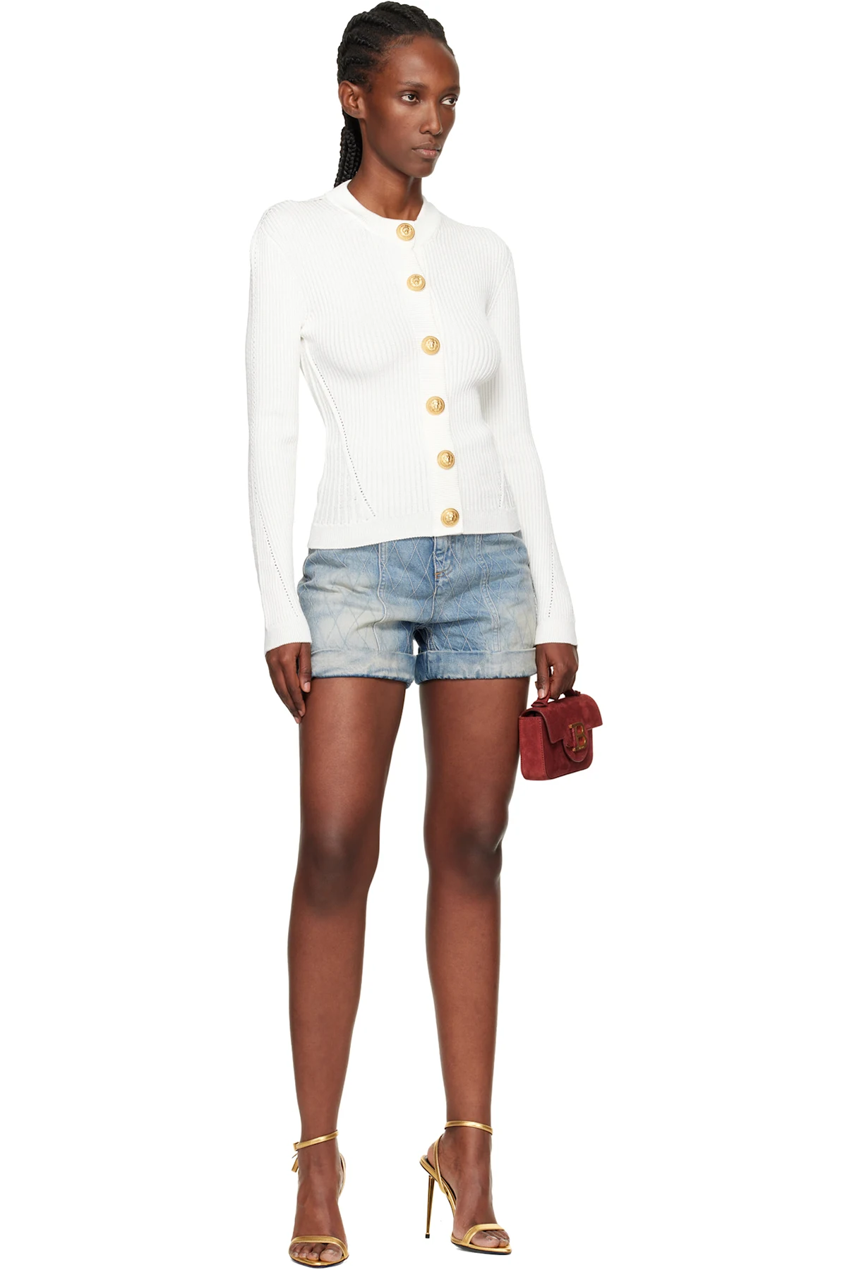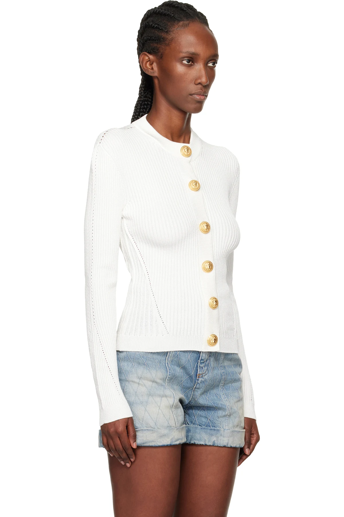 Rib-knit and pointelle-knit viscose-blend cardigan.