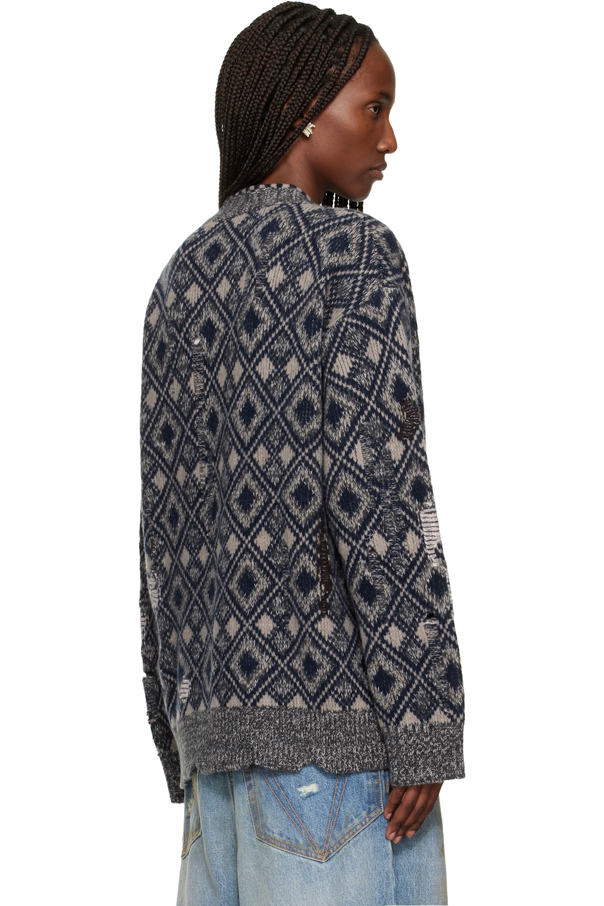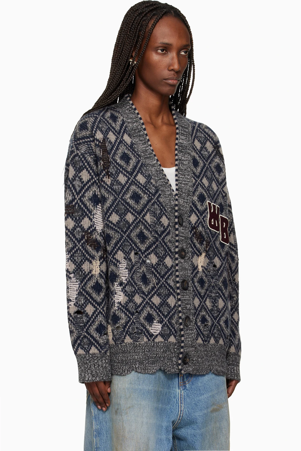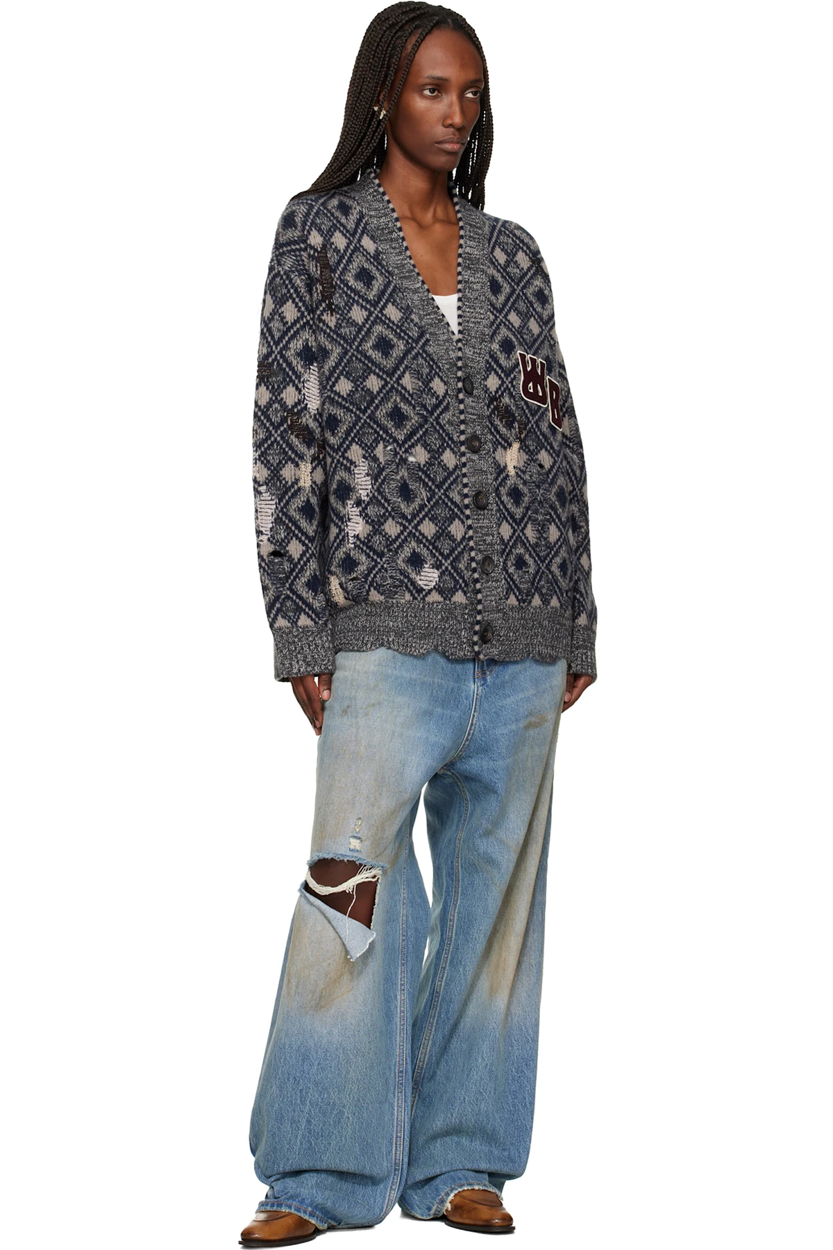 · Distressing, laddering, and graphic pattern throughout