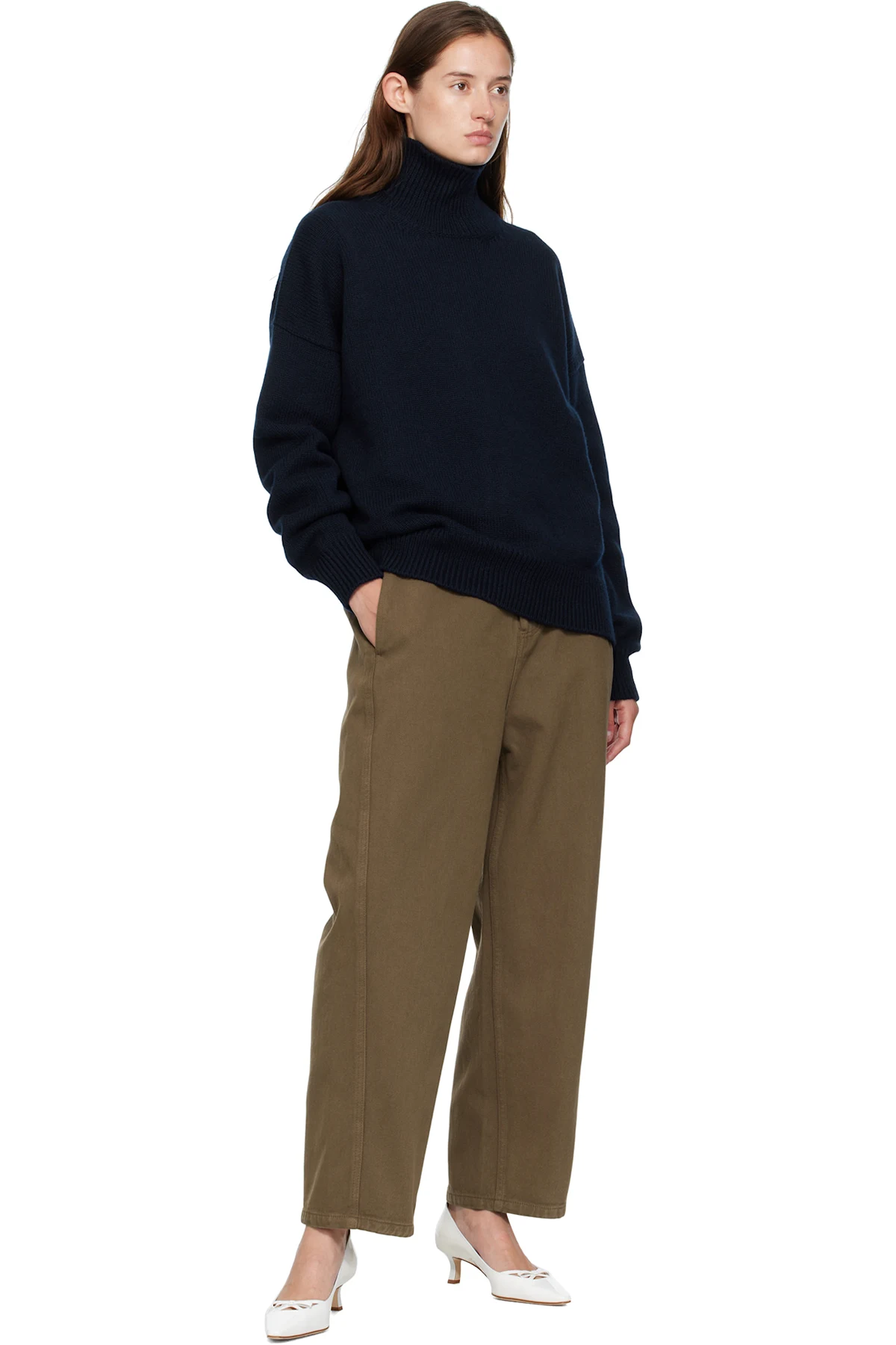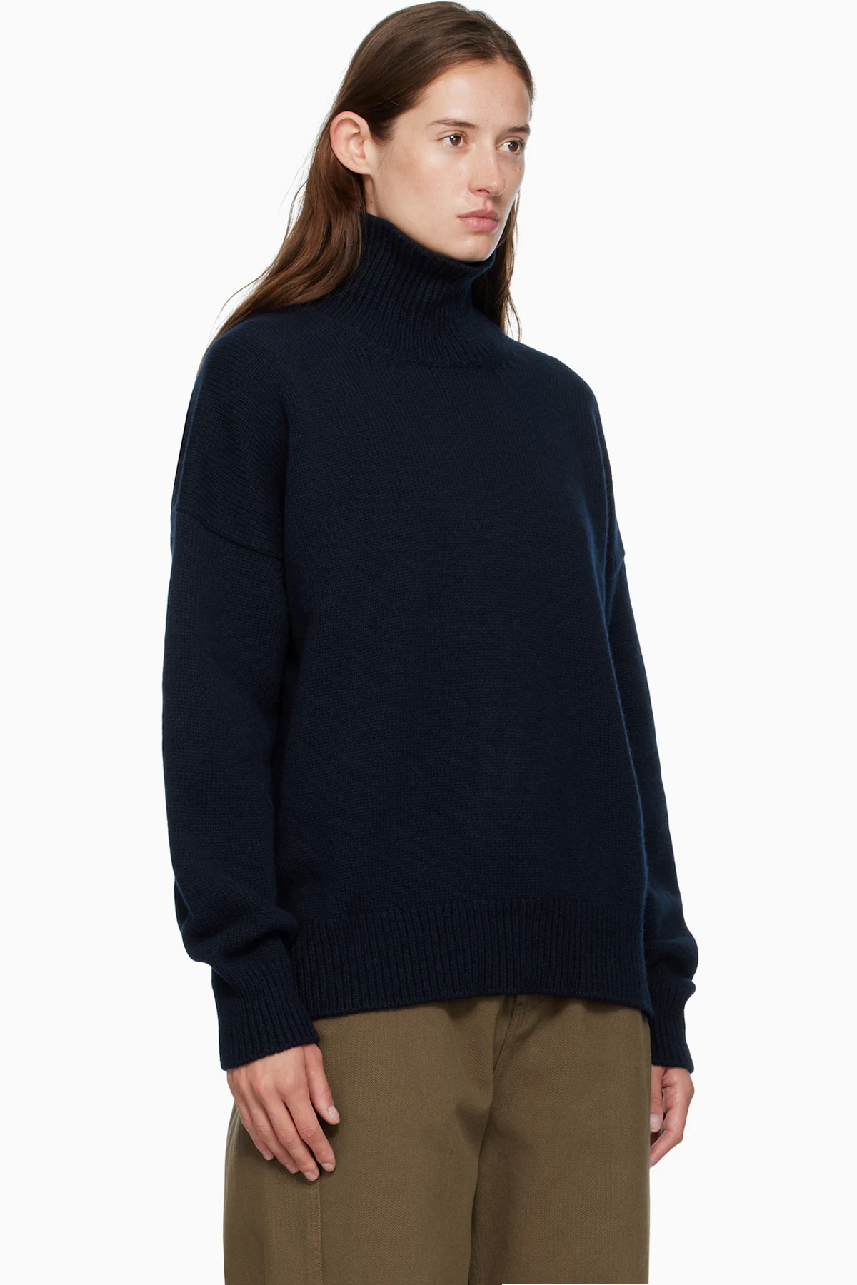 Knit virgin wool turtleneck.