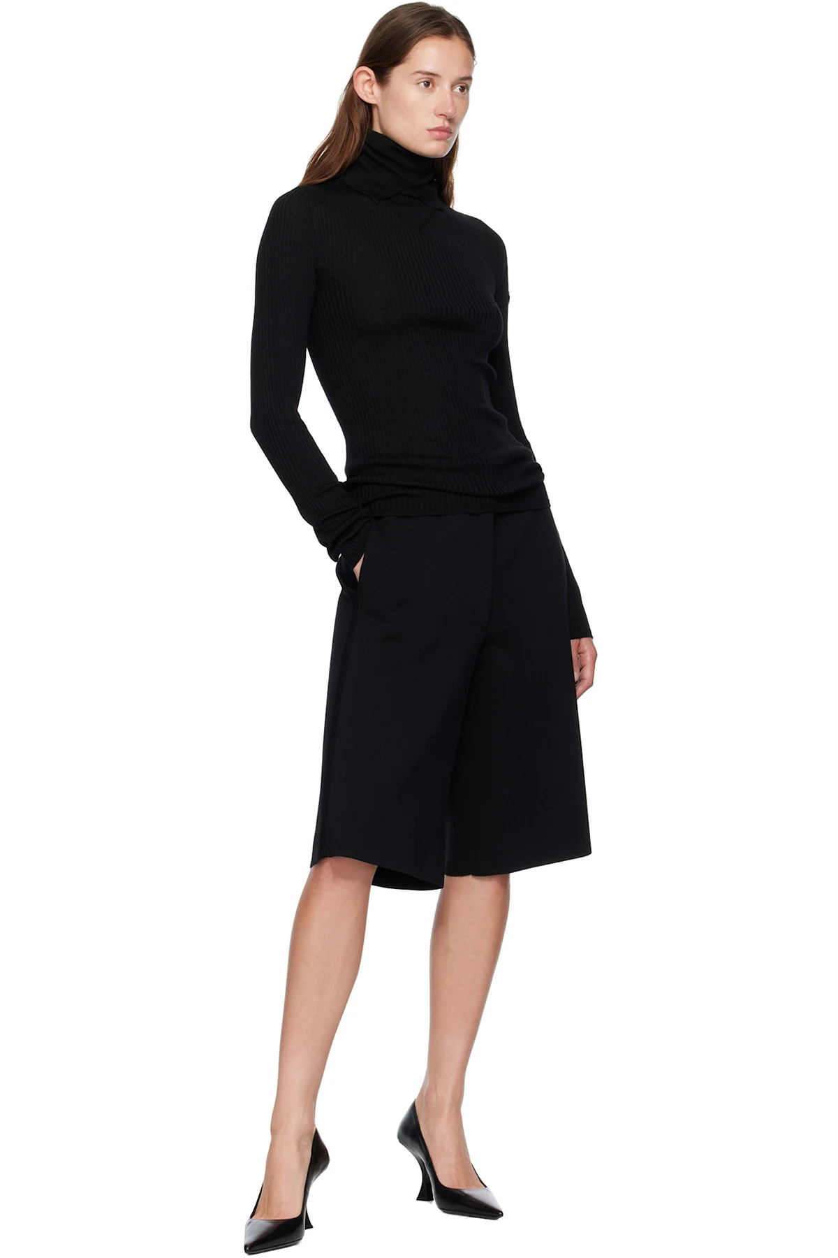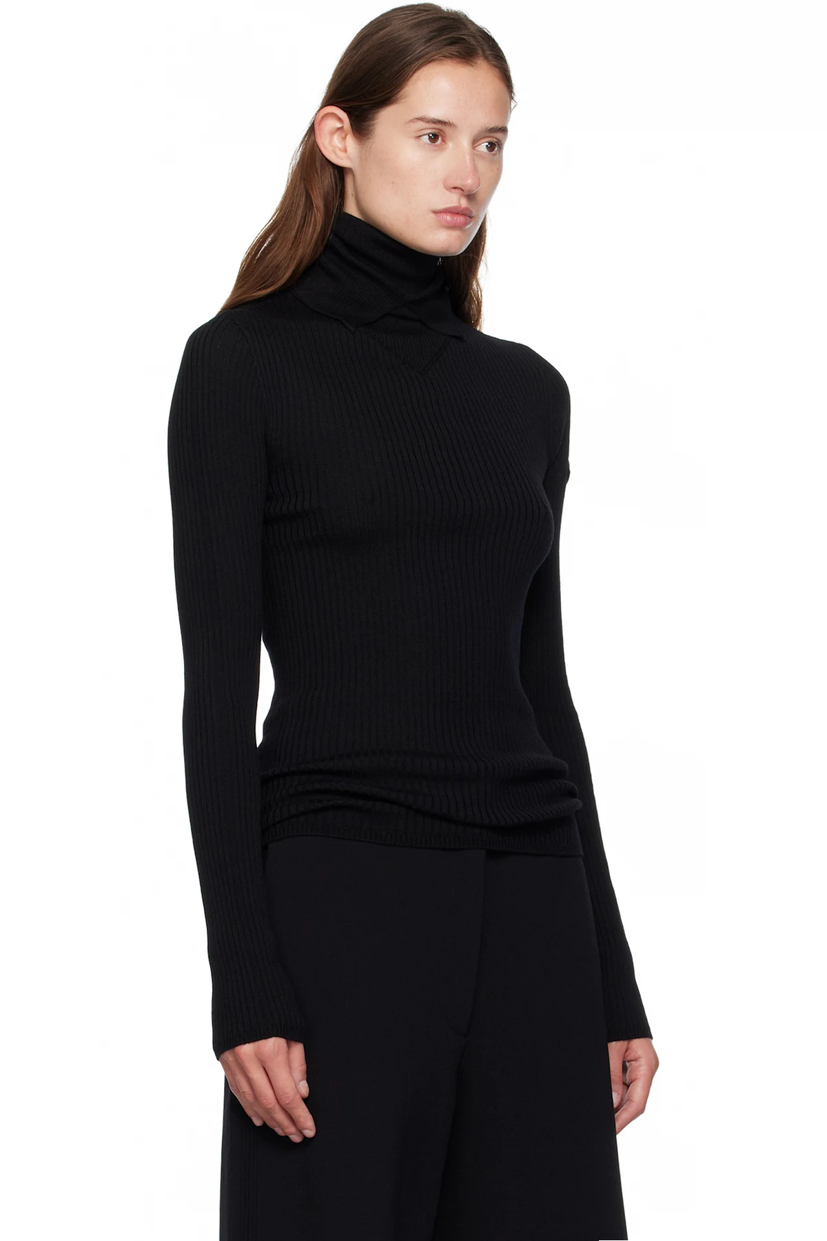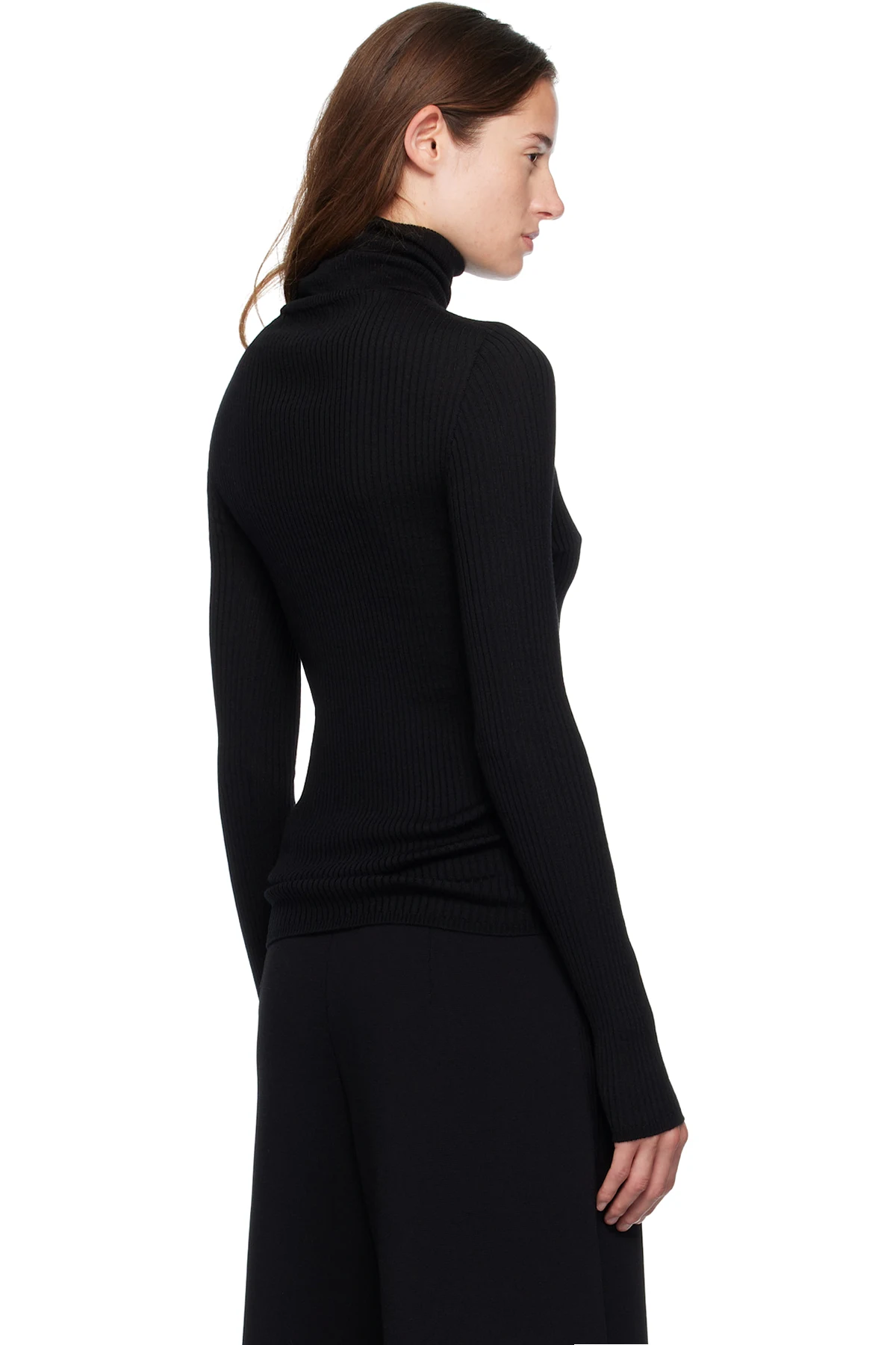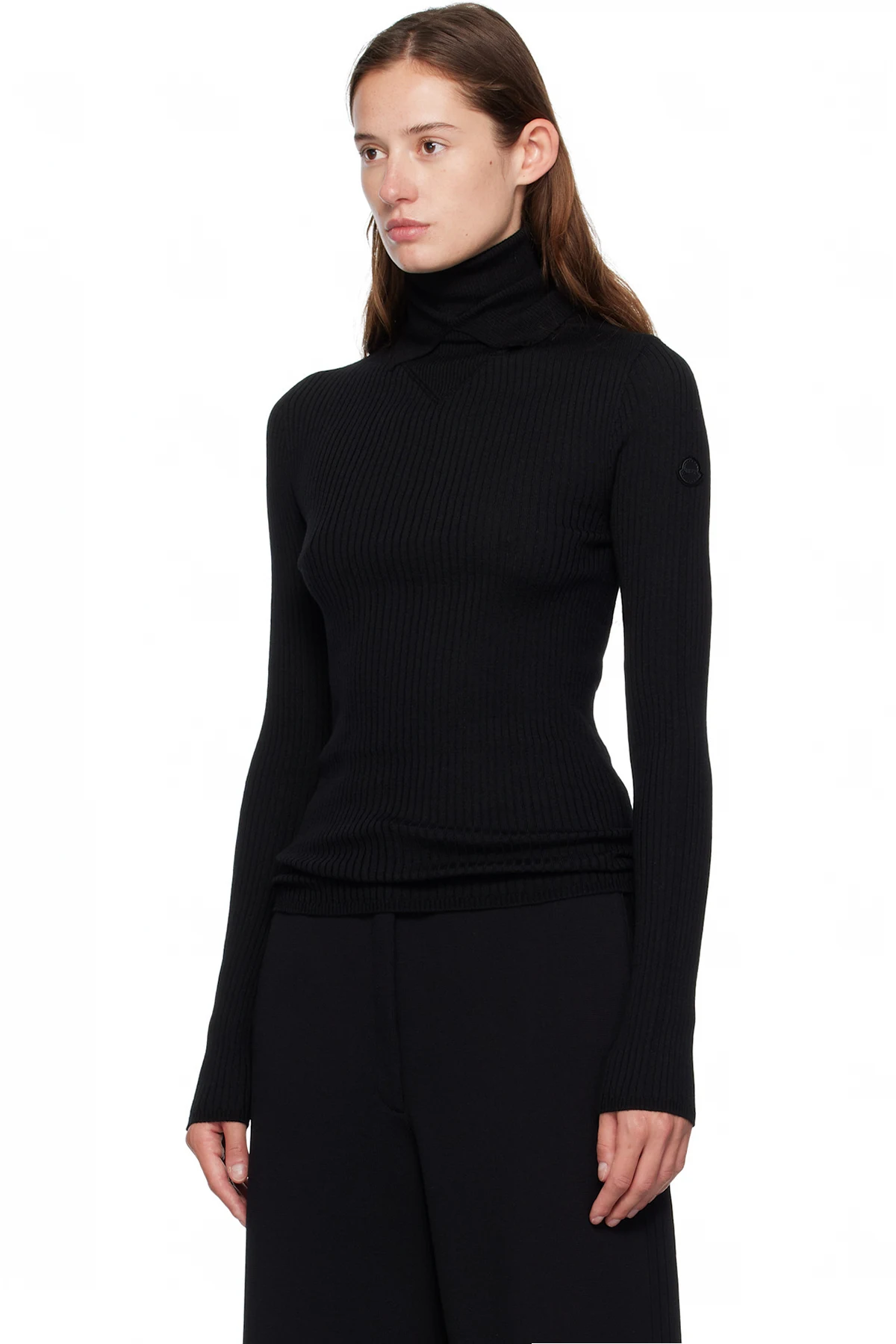 18-gauge rib-knit virgin wool turtleneck. Leather logo patch at sleeve.