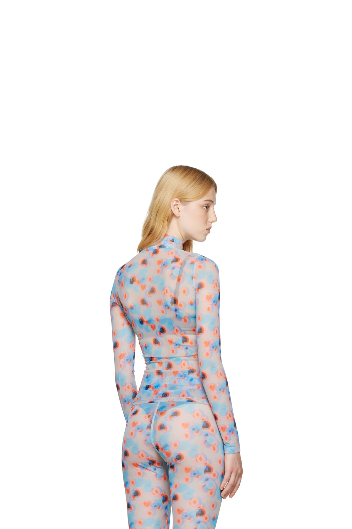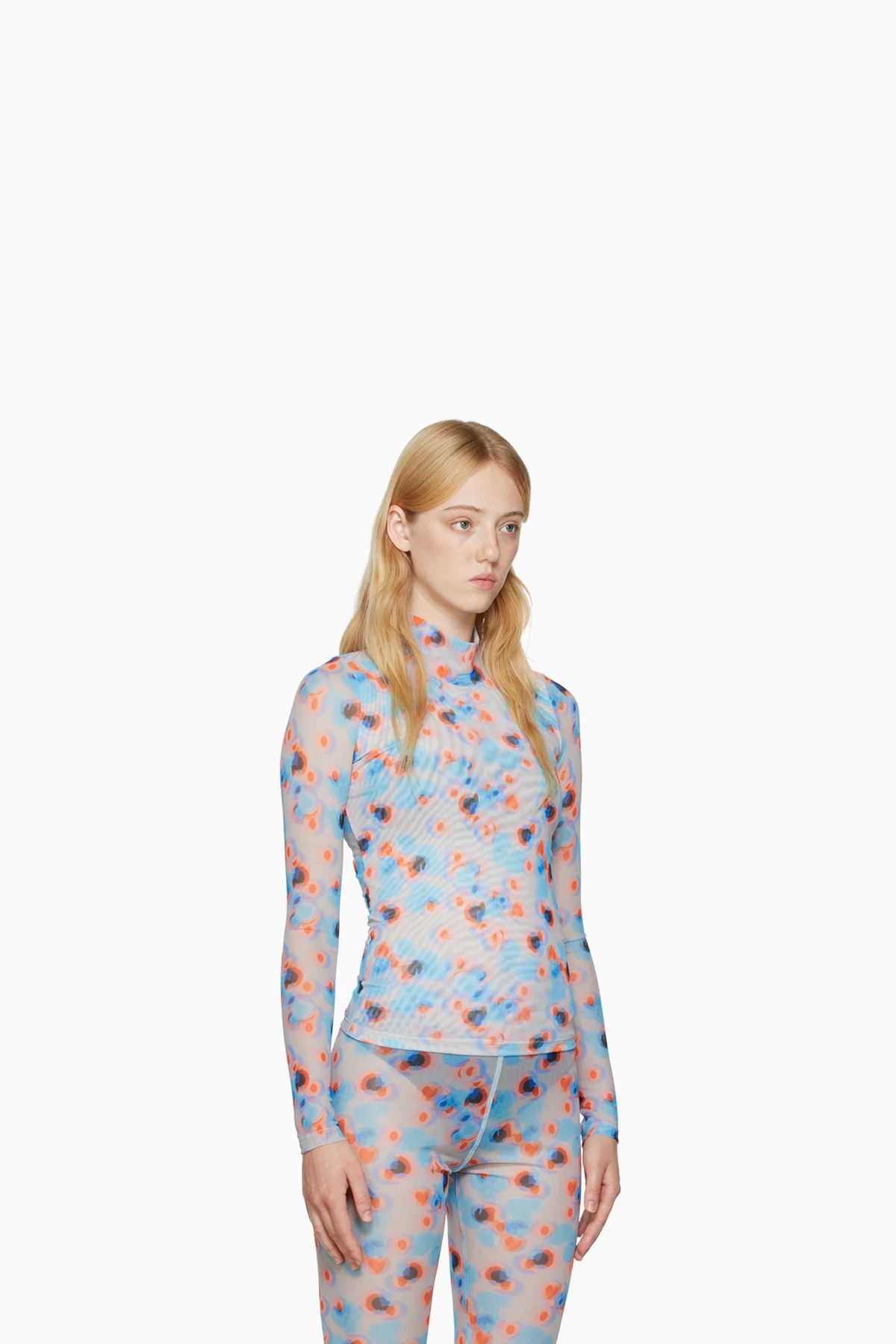 Semi-sheer stretch recycled polyester mesh turtleneck.