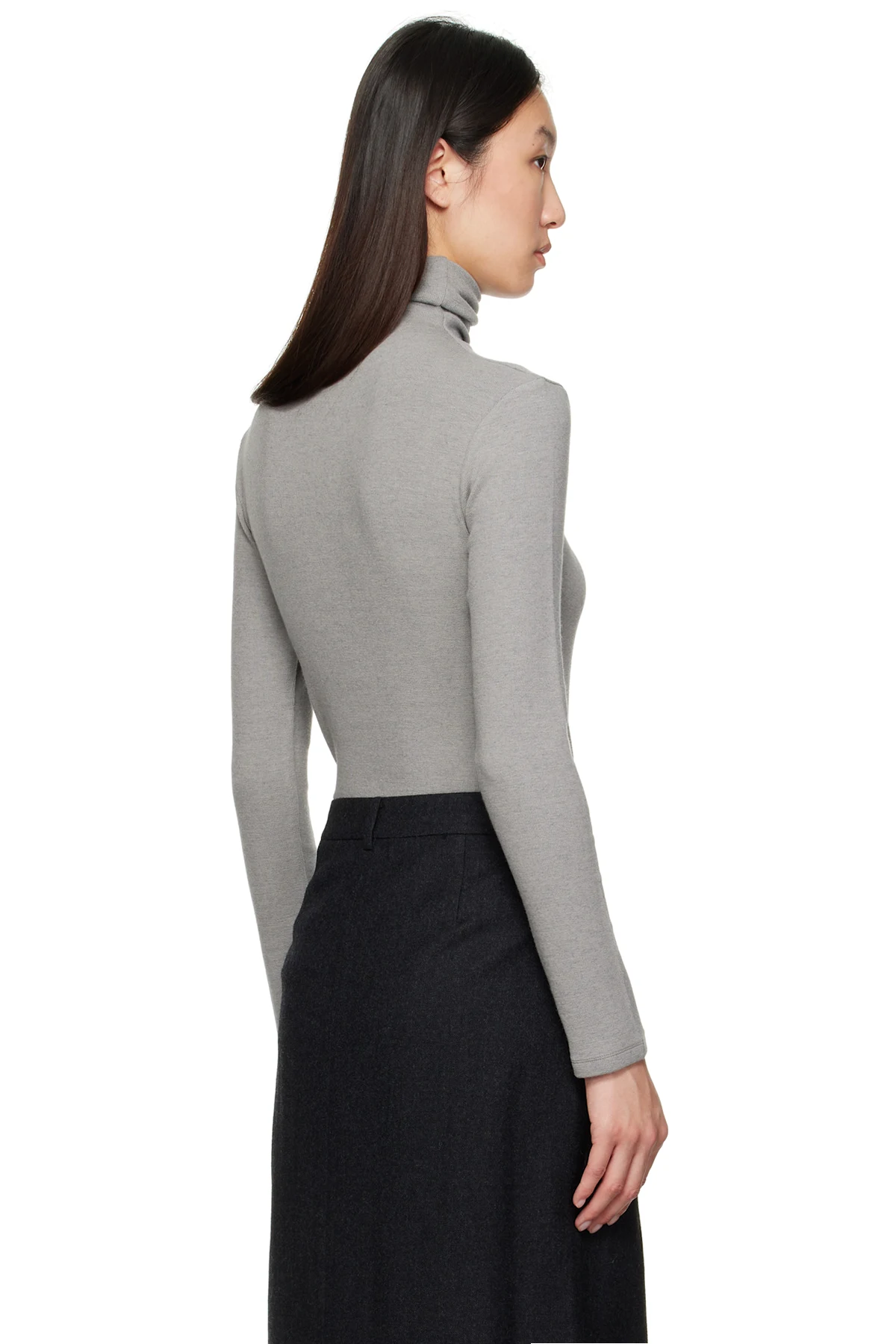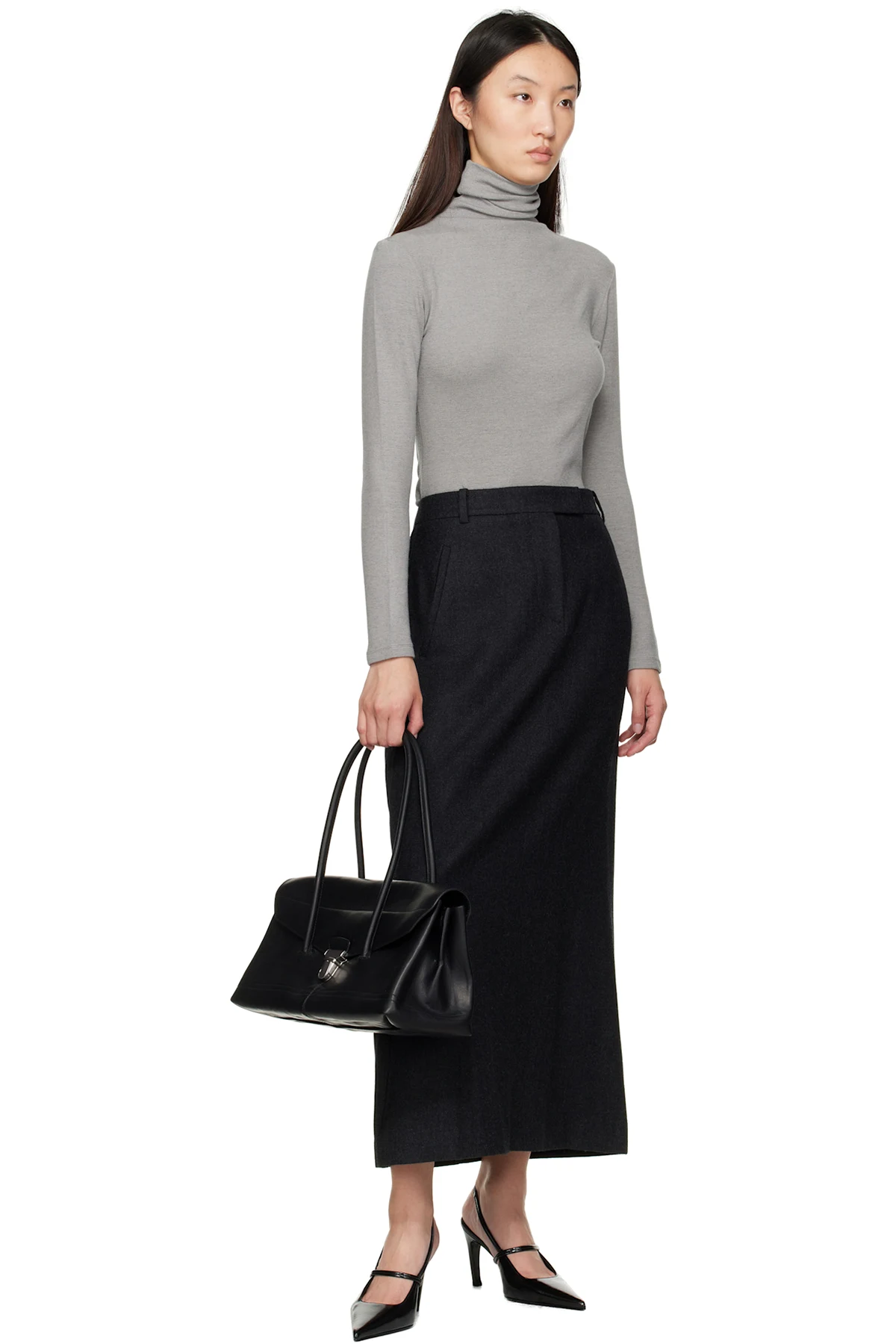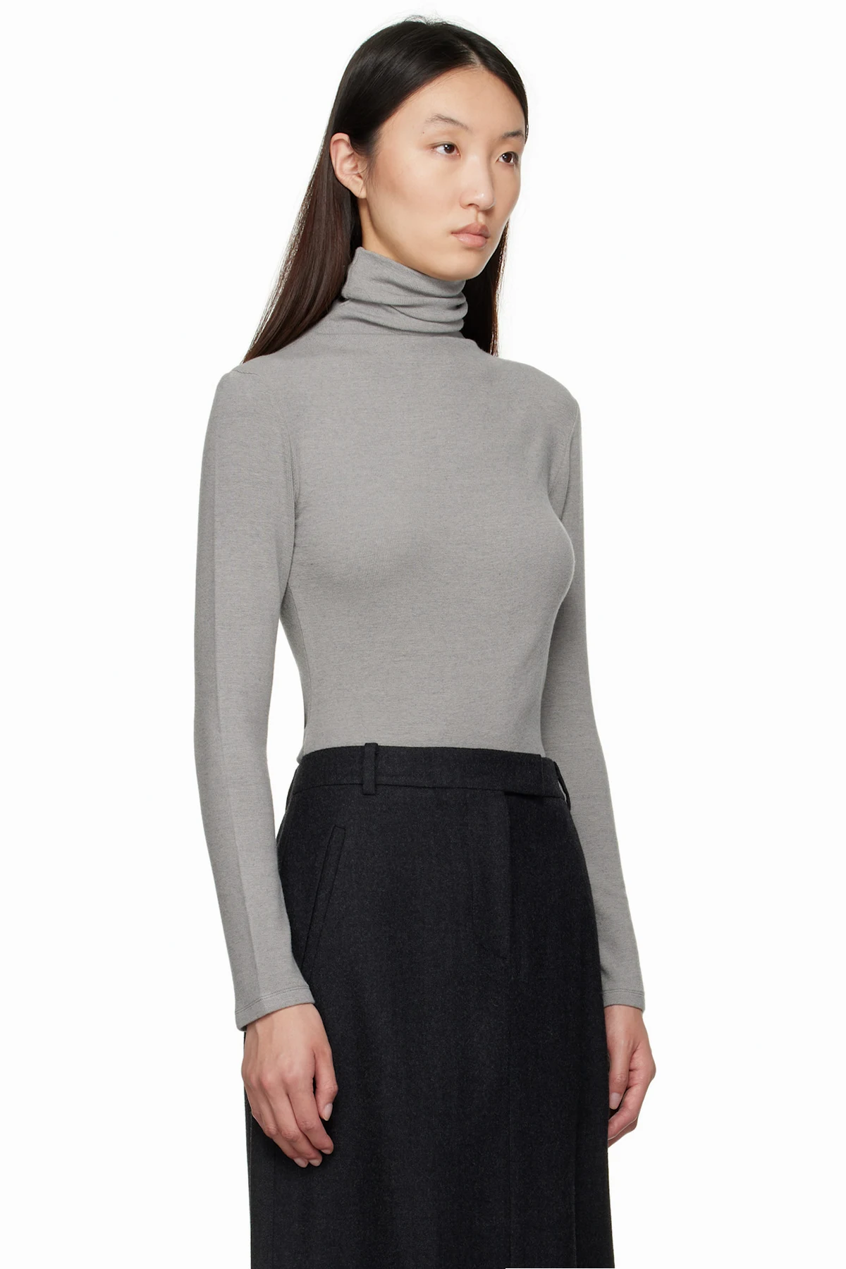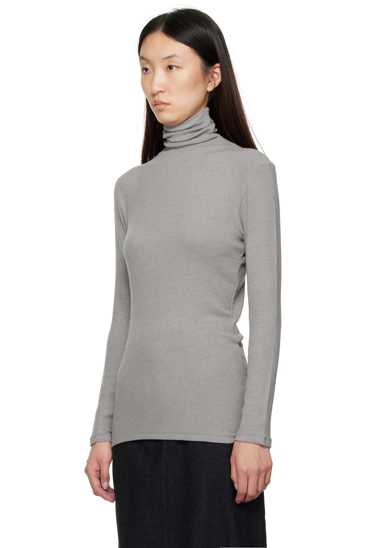 Stretch viscose- and wool-blend ribbed jersey turtleneck. Asymmetric hem.