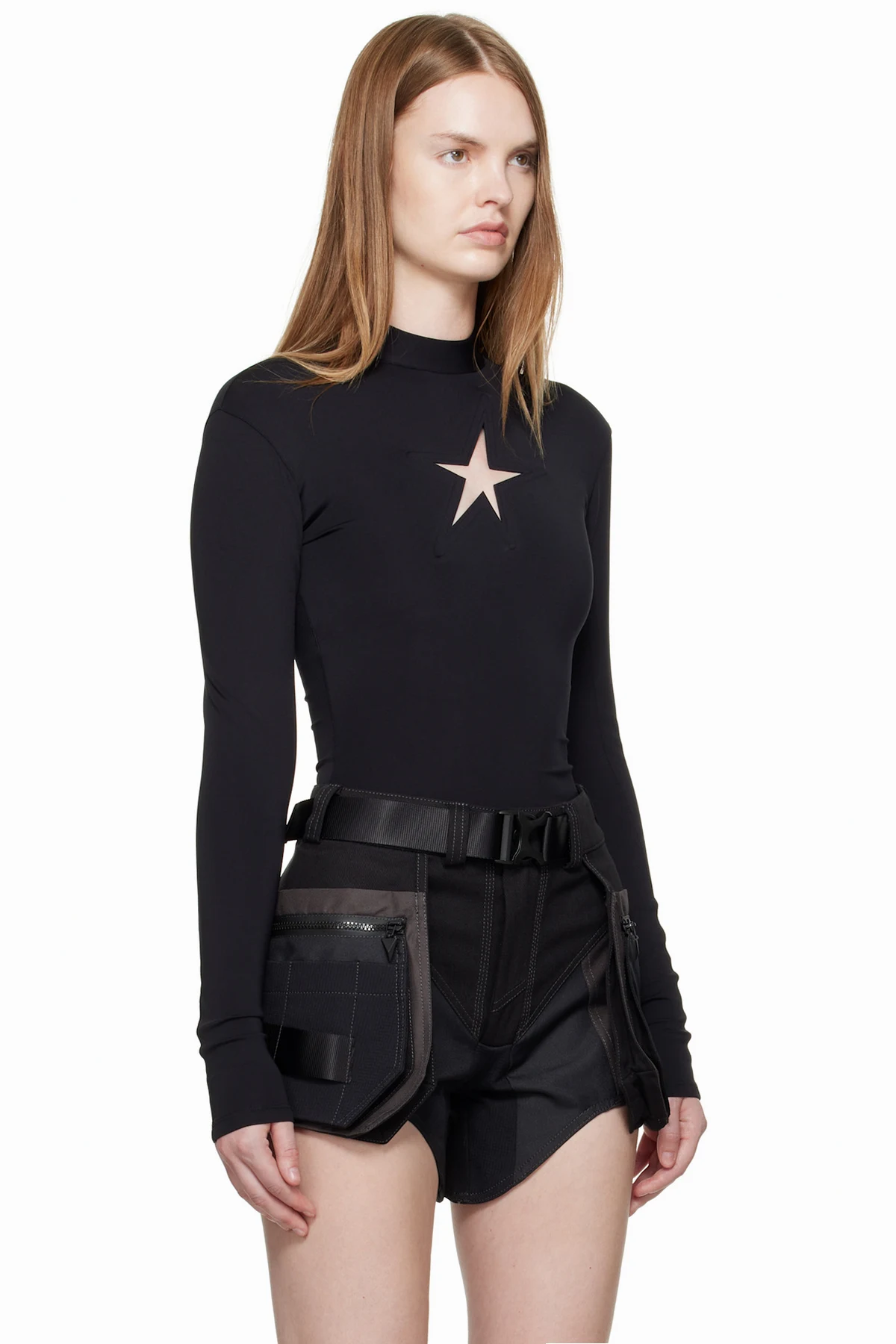 · Graphic cutout at chest