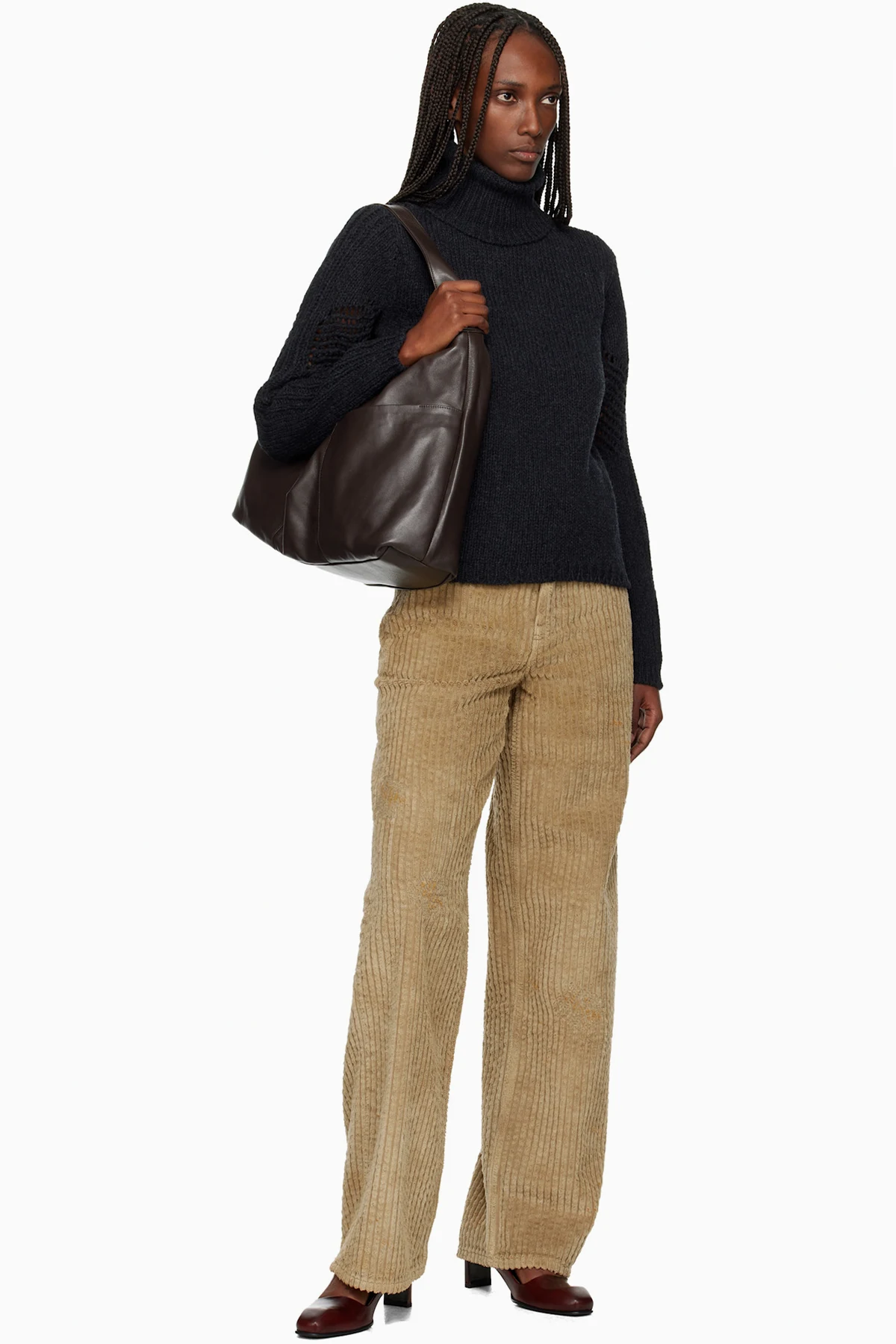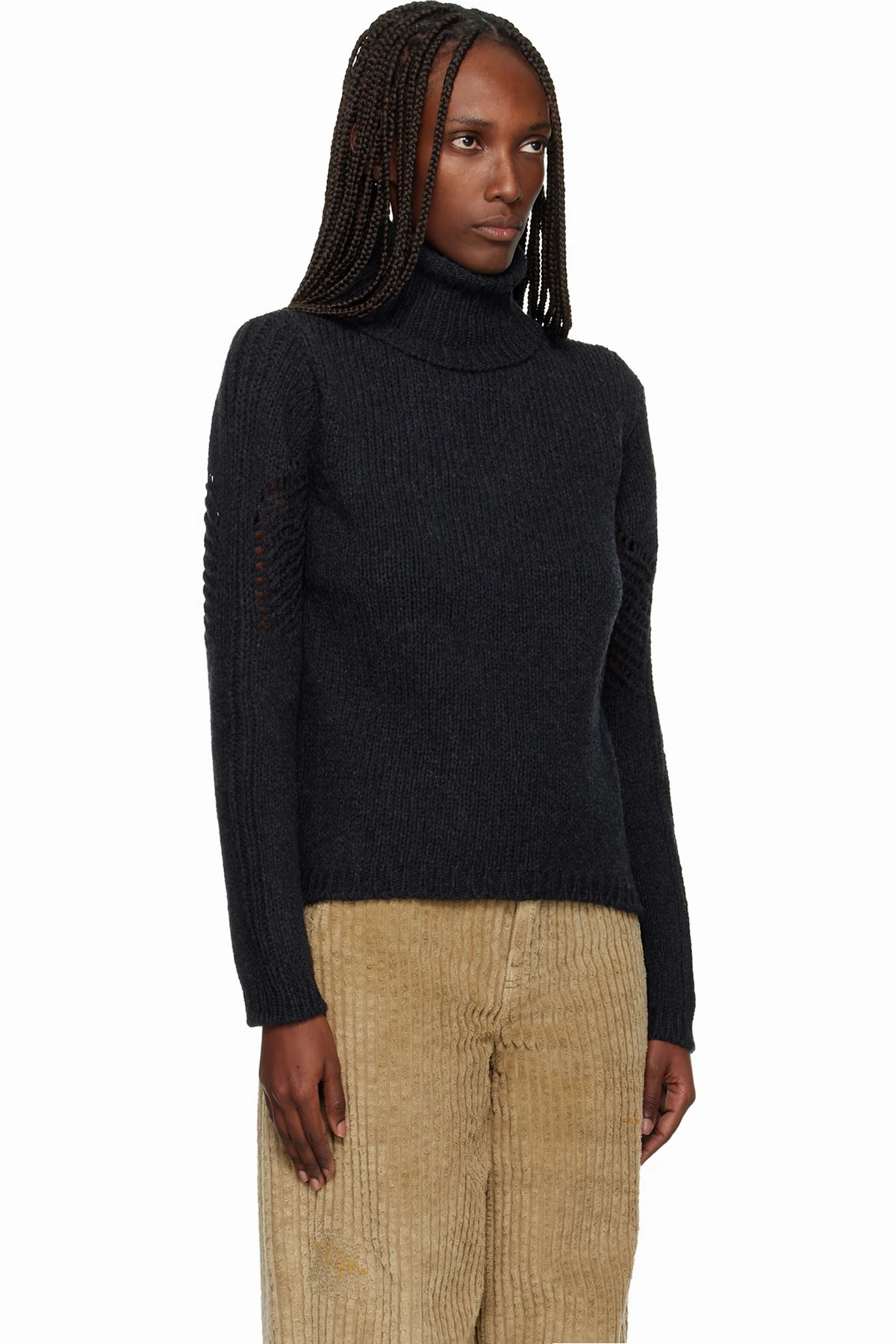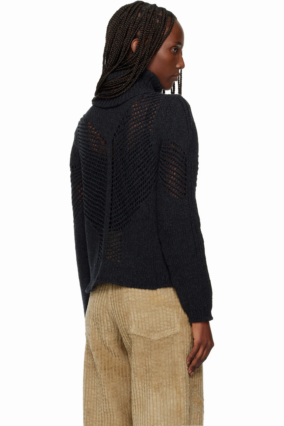 Knit and open-knit merino wool turtleneck.